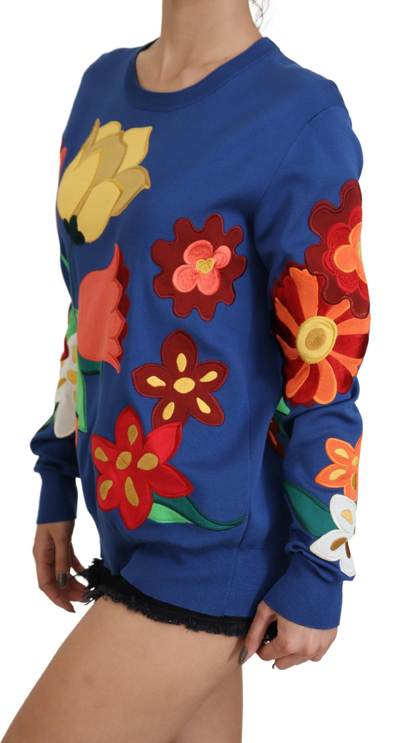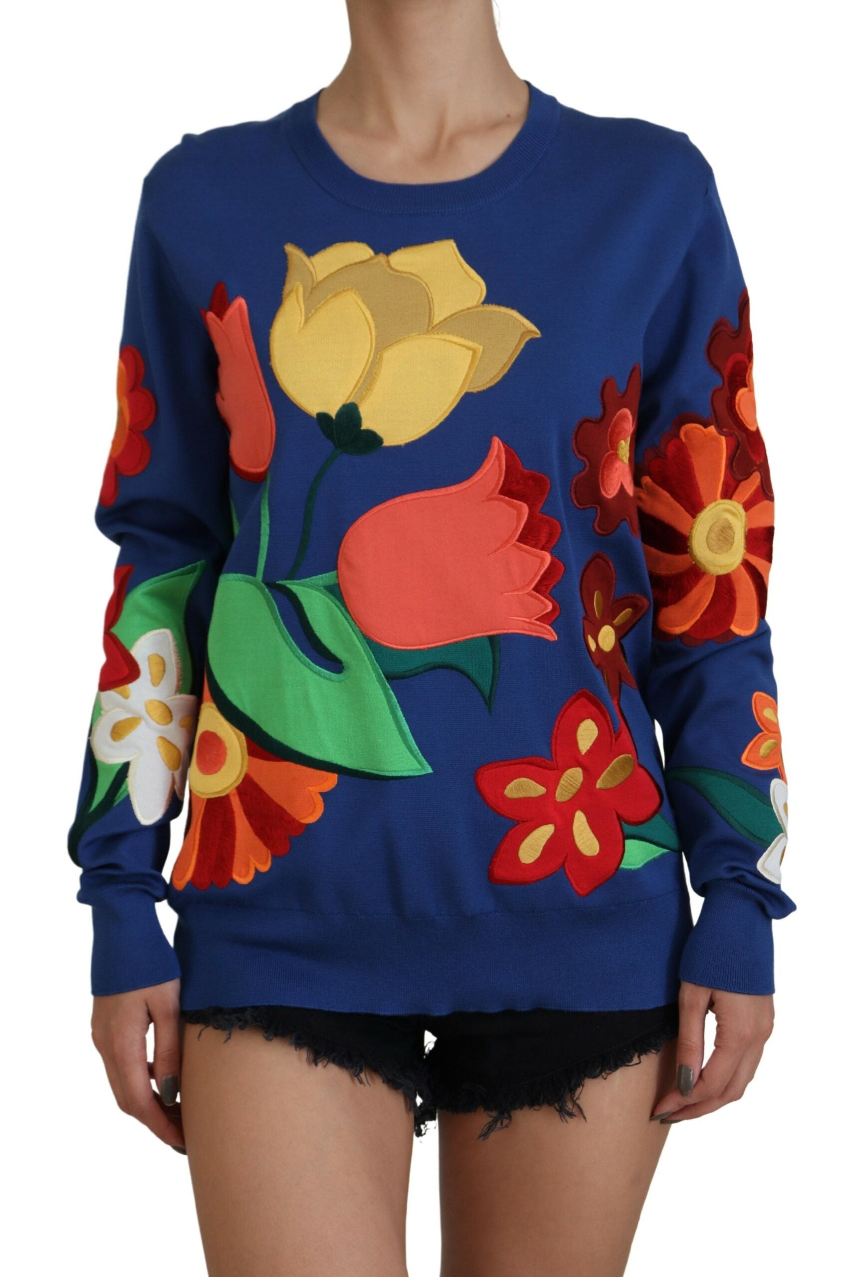 Immerse yourself in luxury with this exquisite Dolce & Gabbana silk-cotton blend sweater, featuring a vibrant floral print. Not just a piece of clothing, but a canvas of artistry, this pullover is a true representation of high-end fashion and Italian craftsmanship. Ideal for those who appreciate the elegance of florals and the comfort of premium materials. Make a statement with this multi-colored masterpiece from Dolce & Gabbana.