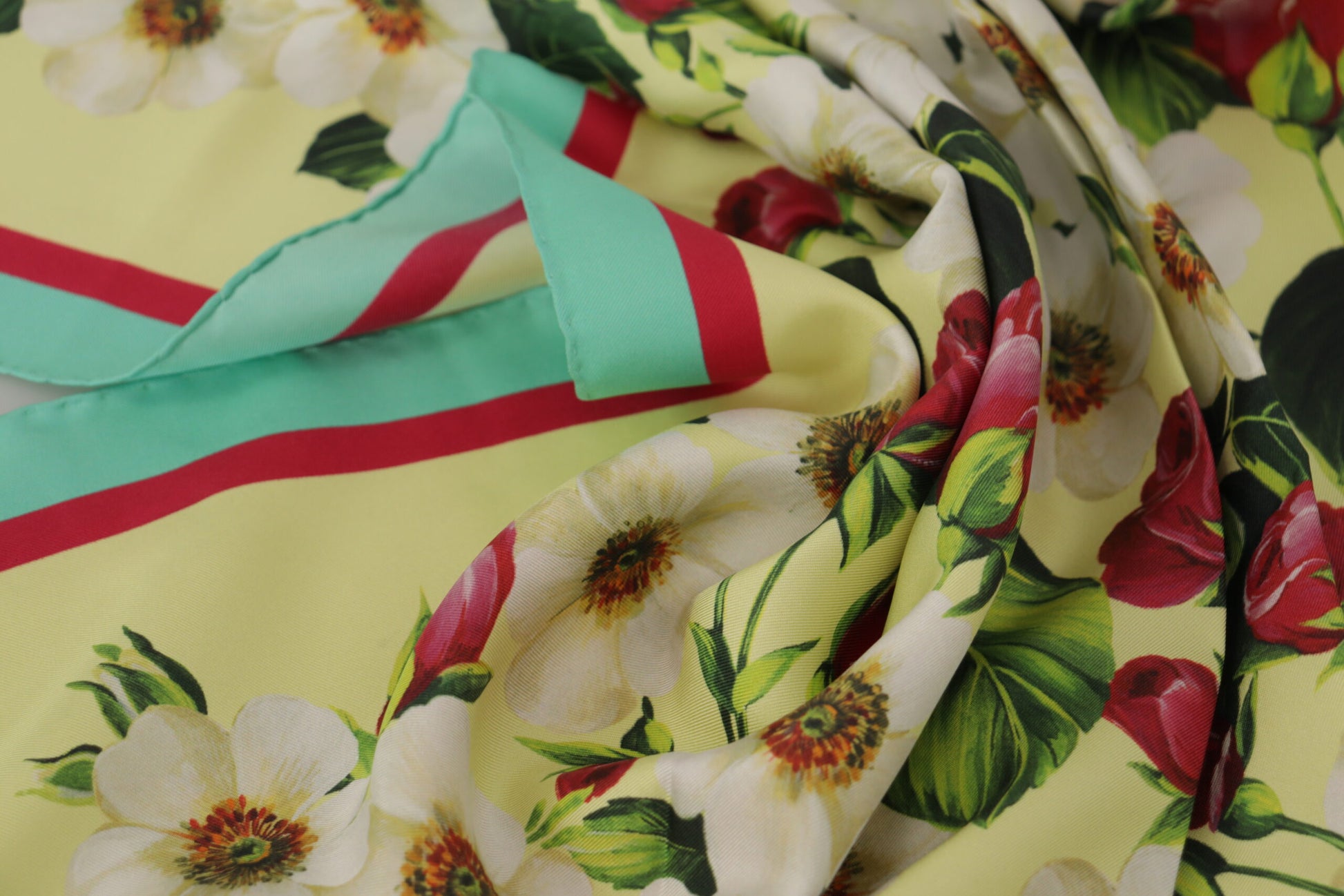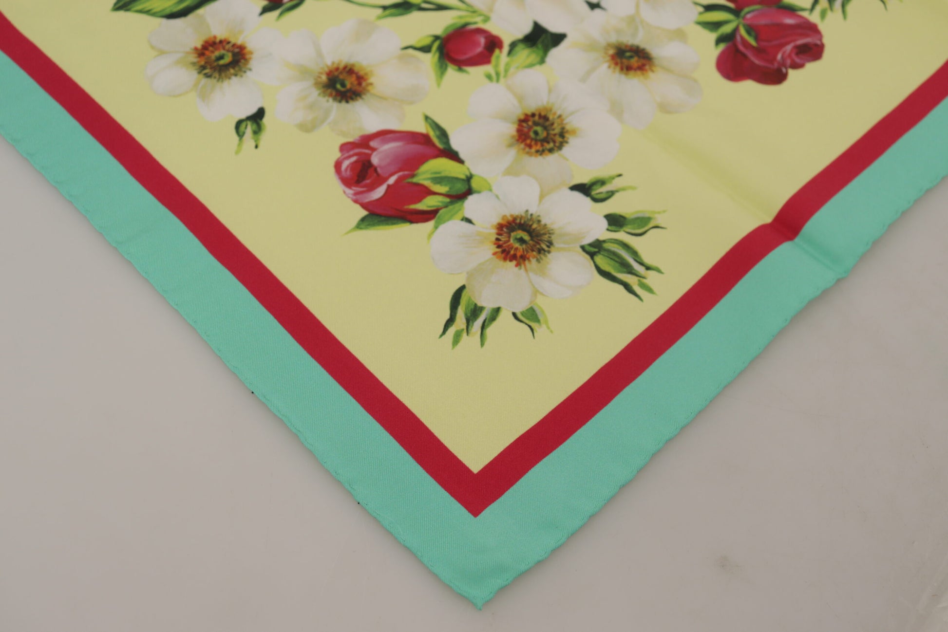 Indulge in the epitome of luxury with this exquisite square scarf by Dolce & Gabbana. Designed for the fashion-savvy woman, this 100% authentic accessory is adorned with a vibrant, multicolored floral print that will add a touch of sophistication to any outfit. Crafted from sumptuous 100% silk, it feels as gorgeous as it looks. Made in Italy, this scarf is a testament to impeccable craftsmanship and timeless style. Its 70cm x 70cm size is versatile for various styling options, whether draped over the shoulders or tied elegantly around the neck.