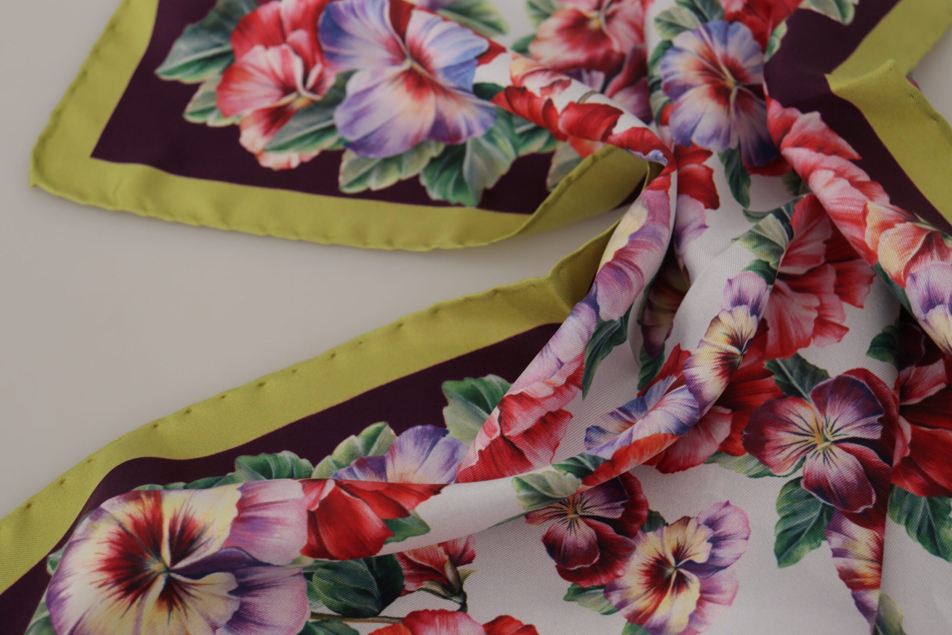 Dive into the essence of spring with this stunning, 100% authentic silk square scarf from Dolce & Gabbana. A versatile accessory for any fashion-forward woman, this multicolored scarf blooms with a vibrant floral print, making it an elegant addition to any outfit, day or night. Skillfully crafted in Italy, it radiates luxury and refined taste with subtle logo details.