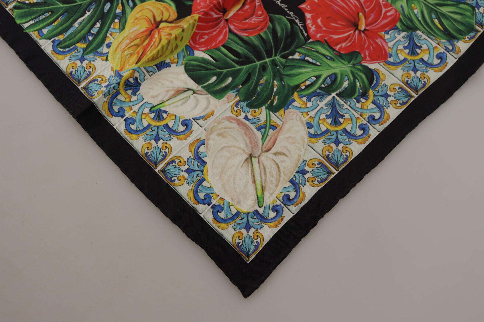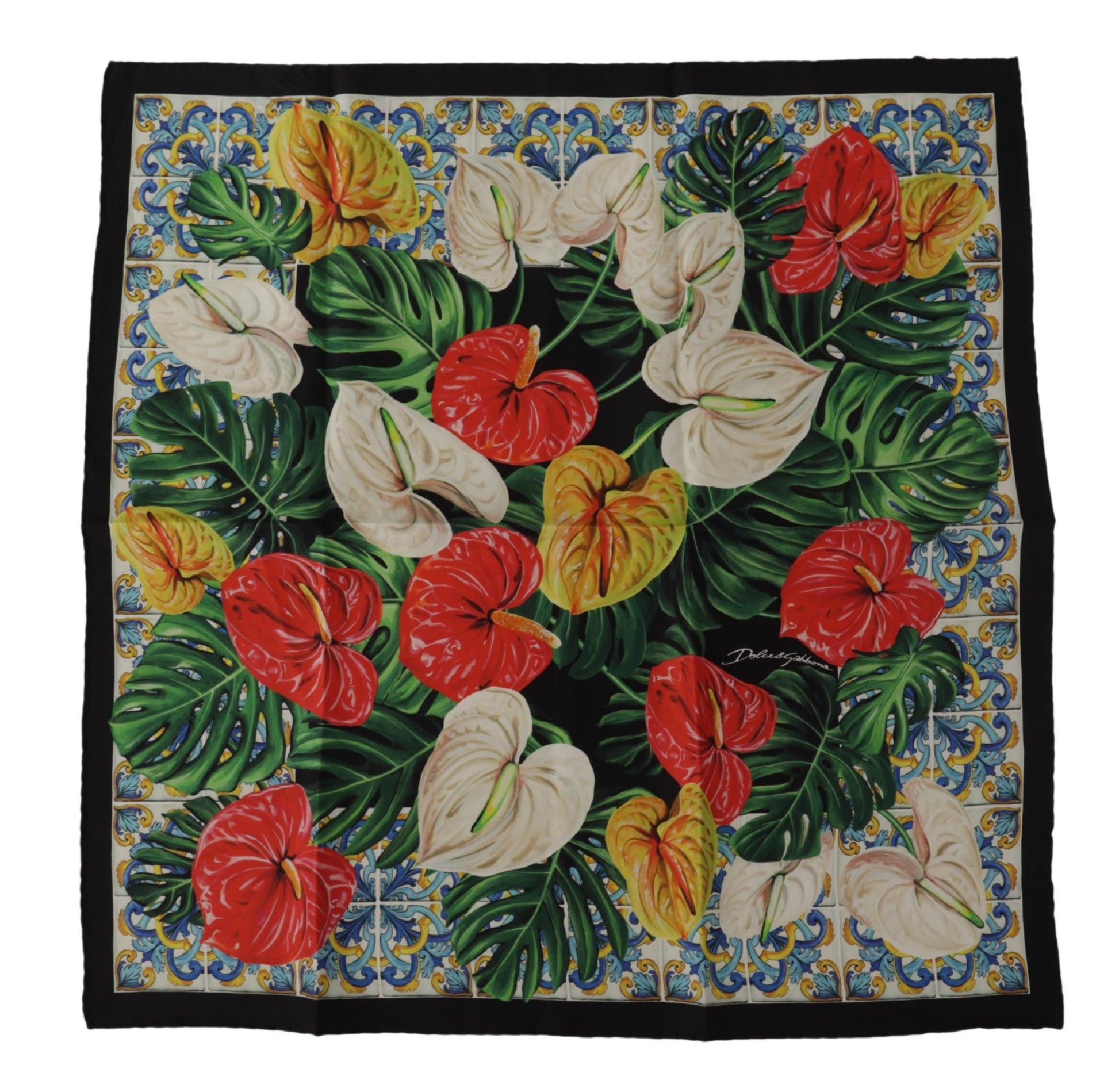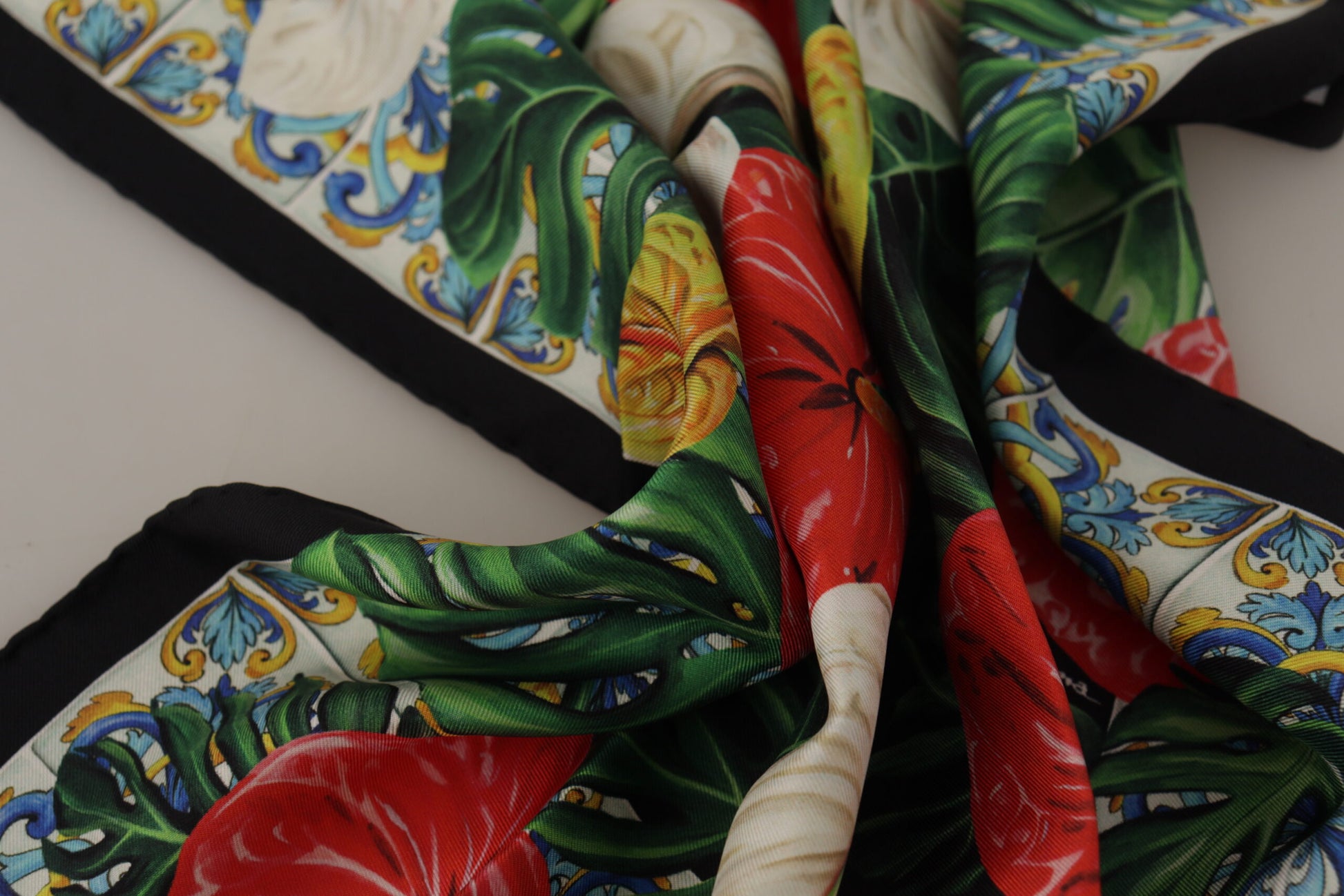 Accentuate your ensemble with this gorgeous, 100% Authentic Dolce & Gabbana square scarf for women. This luxurious accessory boasts a vibrant multicolor palette with an elegant floral print, perfect for adding a touch of sophistication to any outfit. Crafted from the finest silk and featuring the iconic brand logo, it exudes Italian craftsmanship and style.