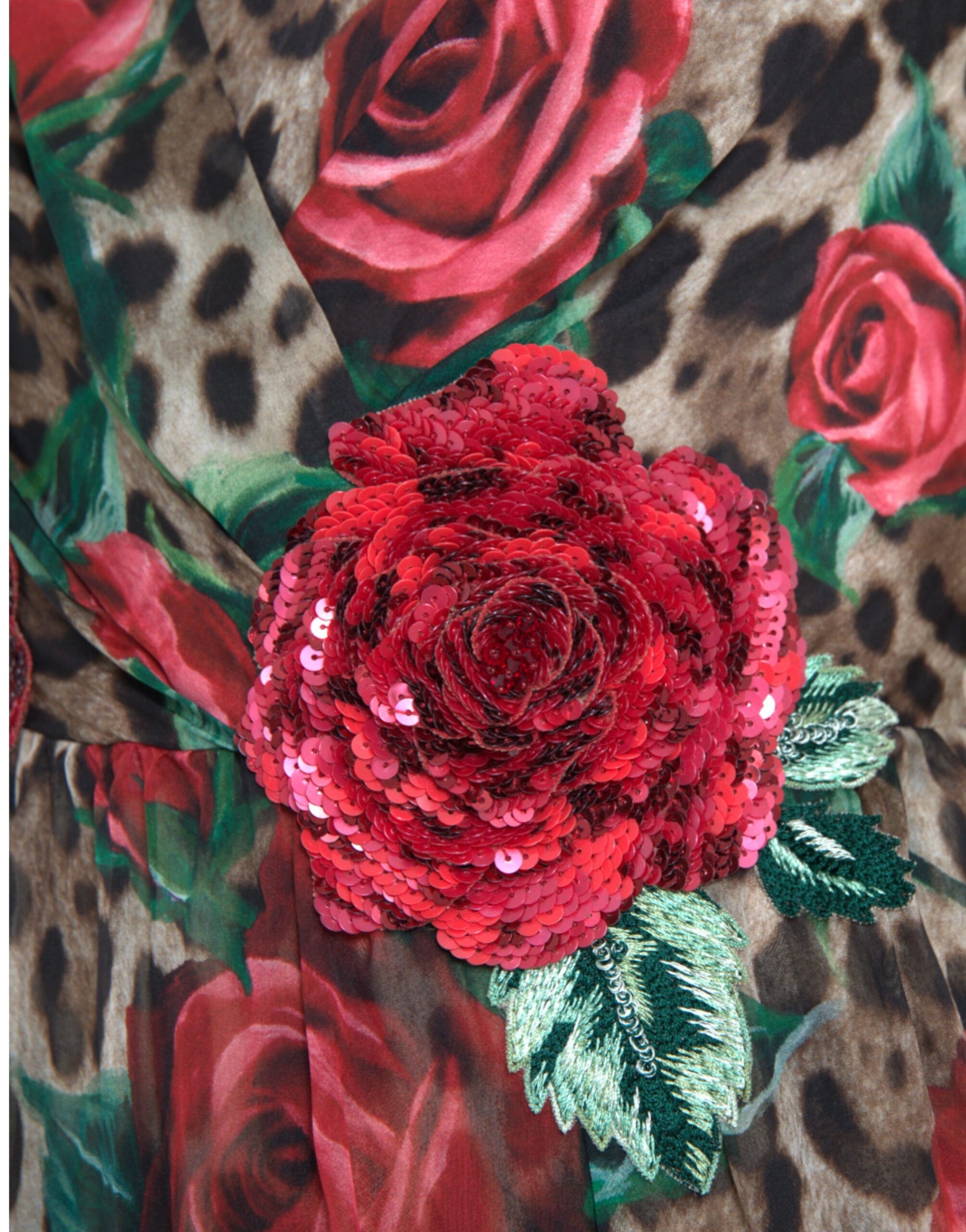 Indulge in the epitome of elegance with this striking Multicolor Maxi Dress from the prestigious house of Dolce & Gabbana. Meticulously crafted in Italy, this gorgeous new piece with tags boasts an elaborate symphony of chiffon, stunning embroidery, and shimmering sequins. The dress’s exquisite floral pattern merges harmoniously with a chic leopard print, presenting a stunning deep neckline and a sleek, sleeveless design. A luxuriously lined garment, it ensures comfort matched only by its style, with a practical hook-and-eye and zipper closure facilitating a flawless fit.