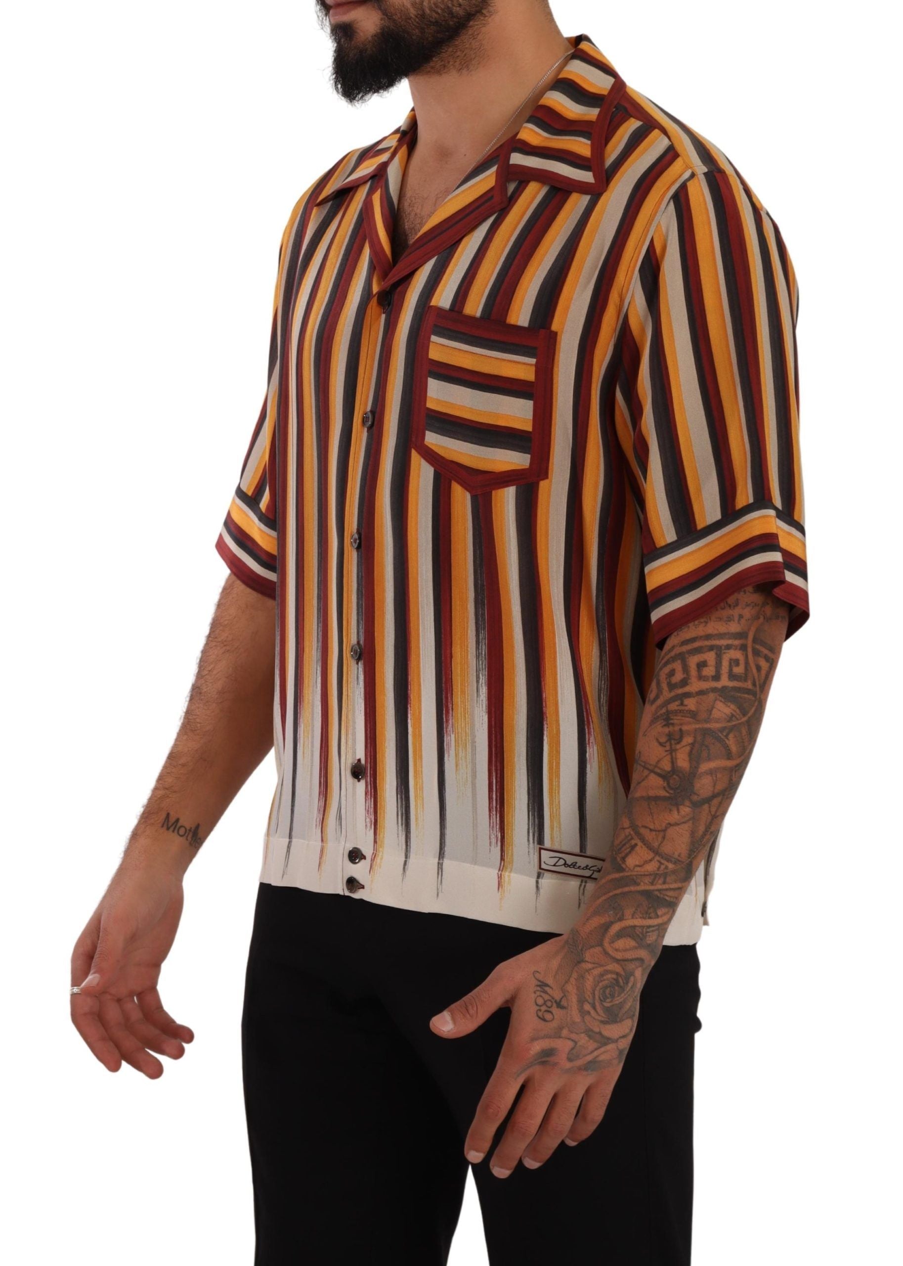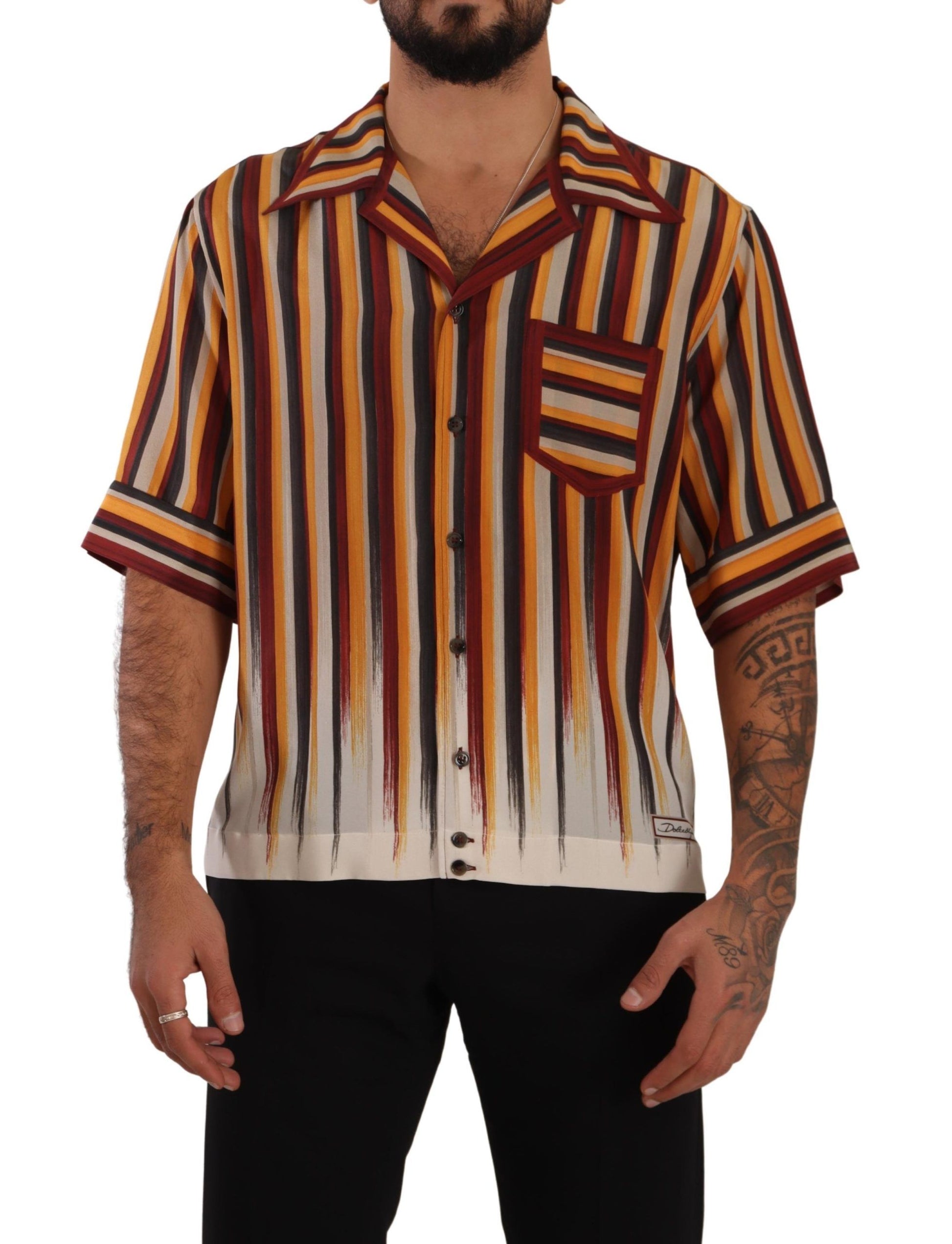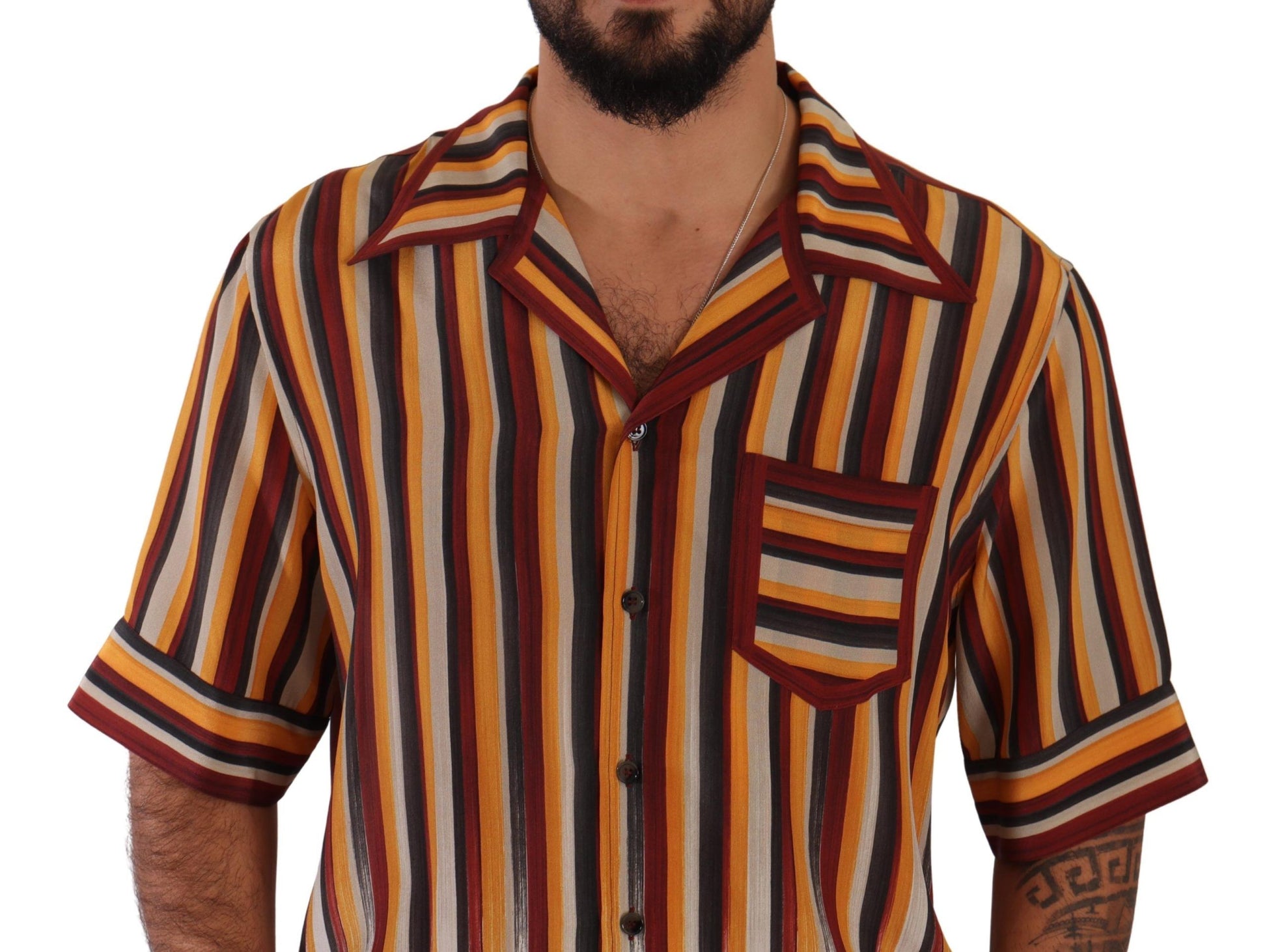 Step into the world of luxury with this exquisite Dolce & Gabbana shirt. Crafted from the finest 100% Silk, this shirt epitomizes elegant casual wear with its regular fit and multicolored stripes. It features full front button closure adorned with subtle logo details, a testament to its authentic Italian craftsmanship. Perfect for a sophisticated wardrobe update.