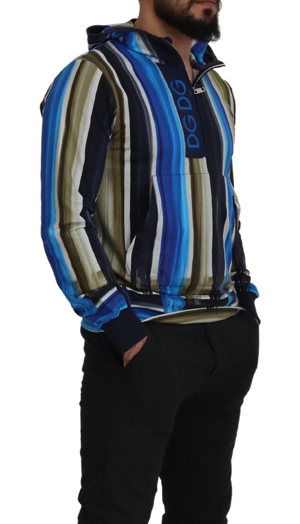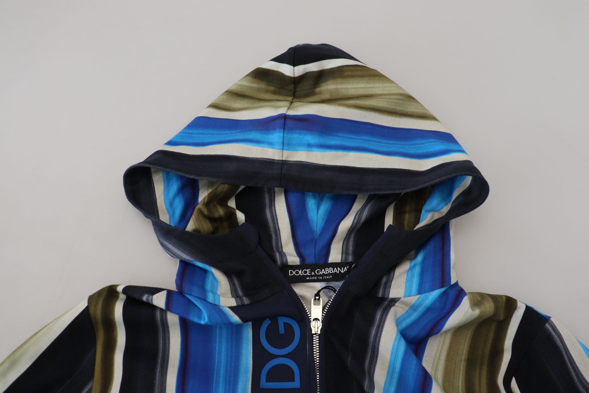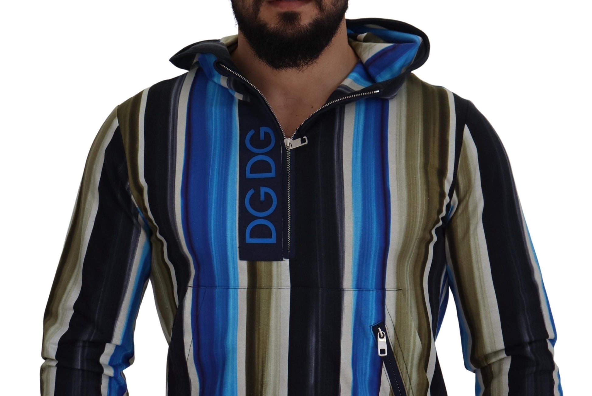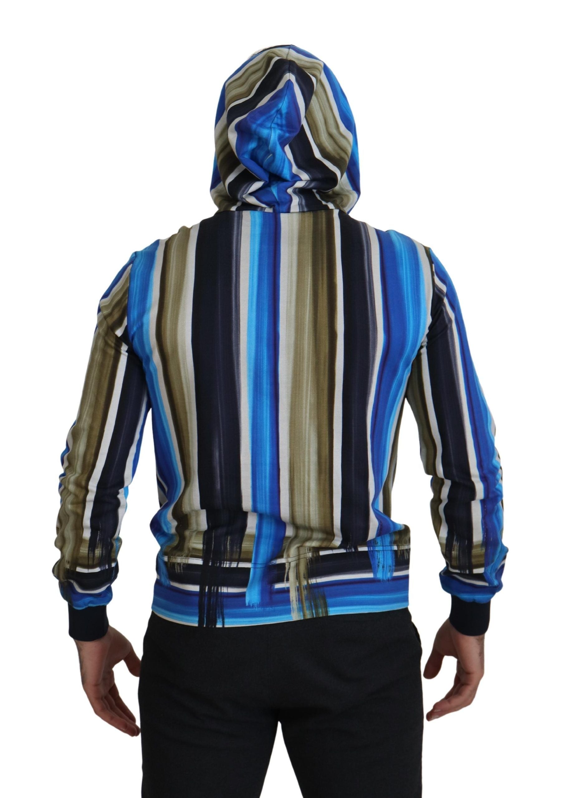 Discover the epitome of Italian luxury and style with this Dolce & Gabbana striped hooded sweater. A perfect addition to your wardrobe, the sweater comes brand new with tags showcasing the brand’s commitment to quality and craftsmanship. The chic multicolor stripes add a pop of color, while the 100% cotton material ensures utmost comfort. Complete with a full zipper closure and distinct logo details, this piece is a true emblem of fashion and functionality combined. Made in Italy, it reflects the mastery of Dolce & Gabbana’s design.