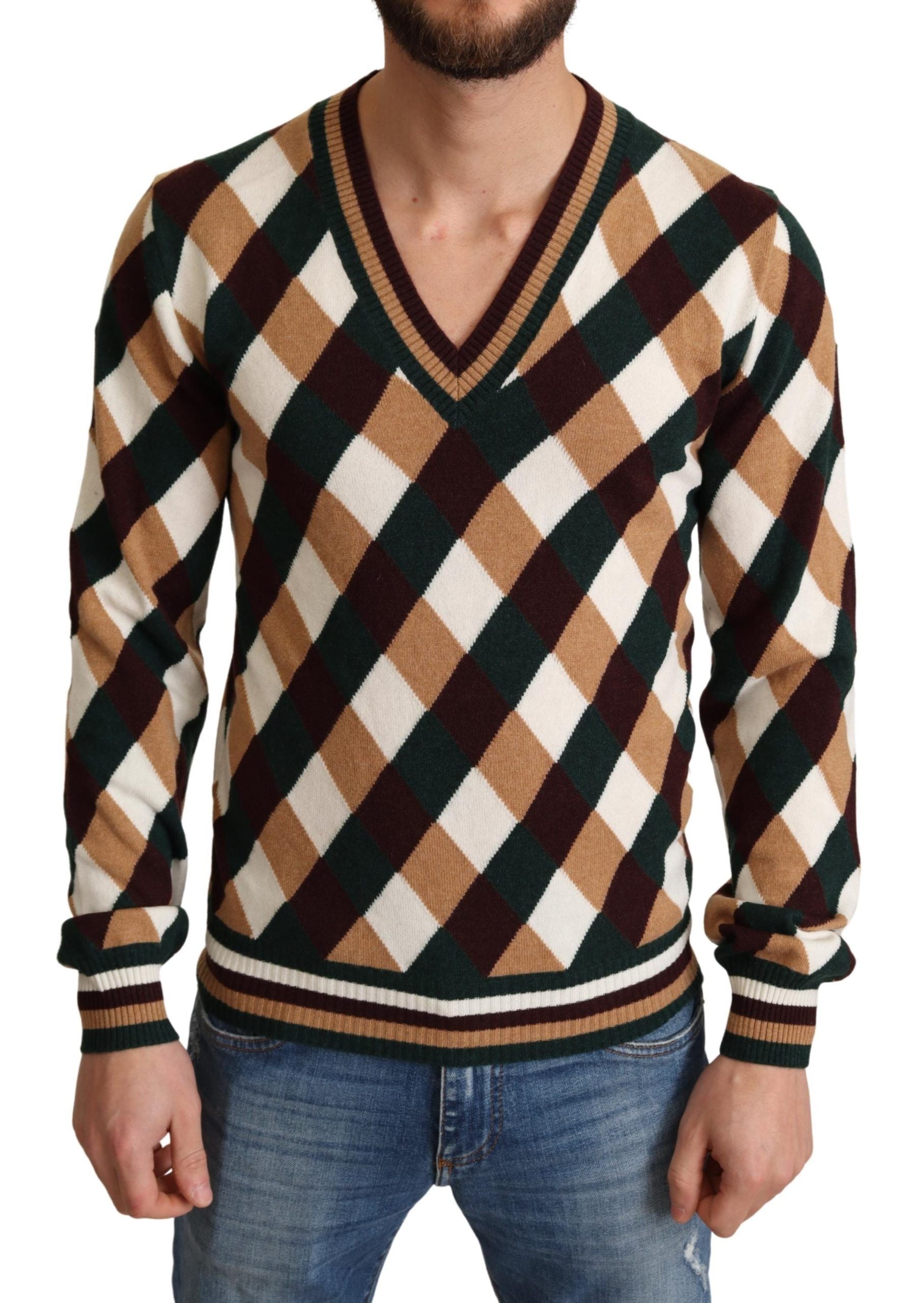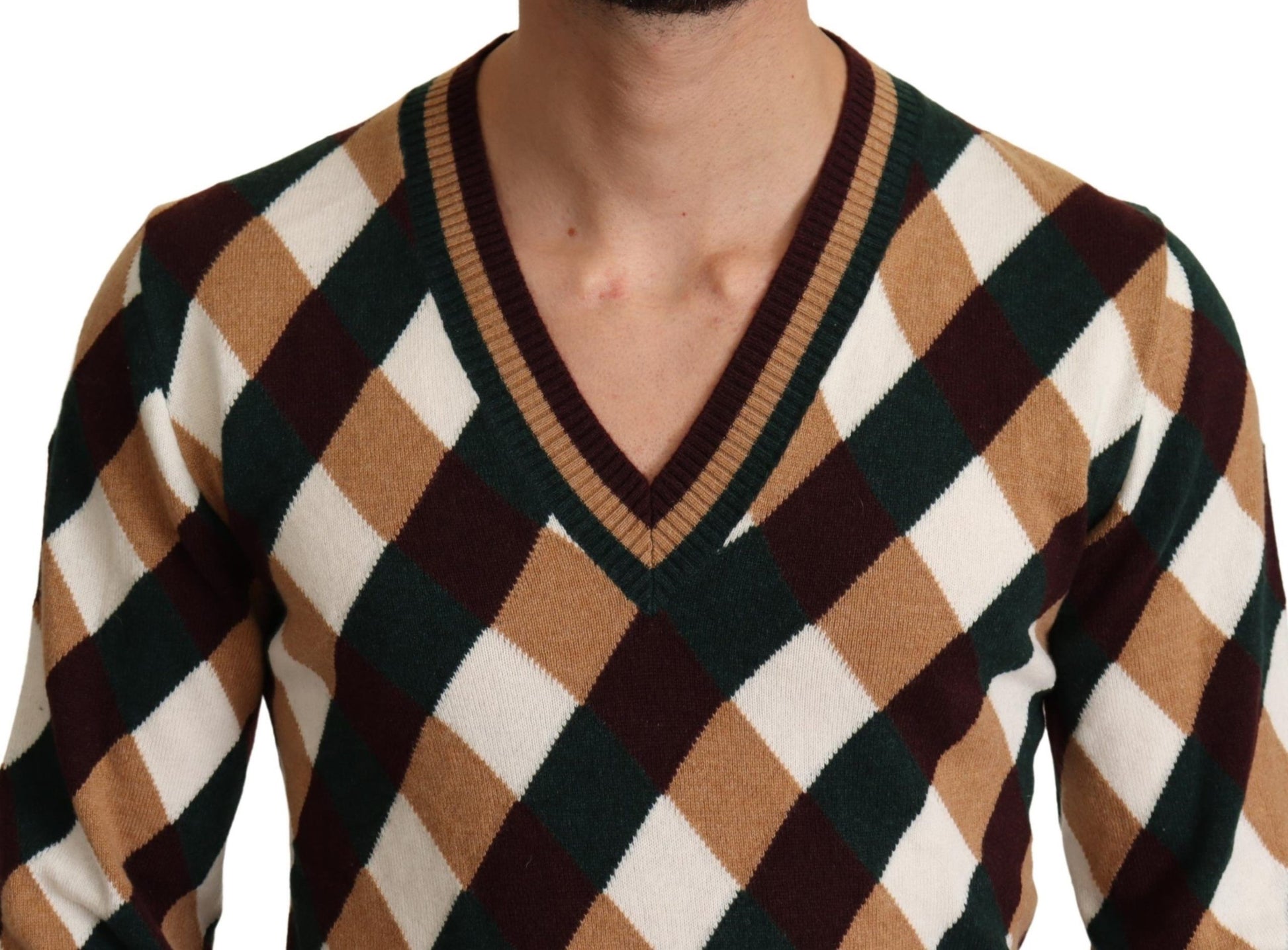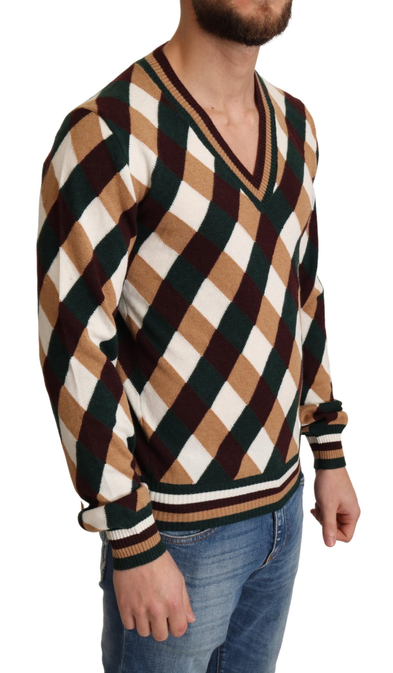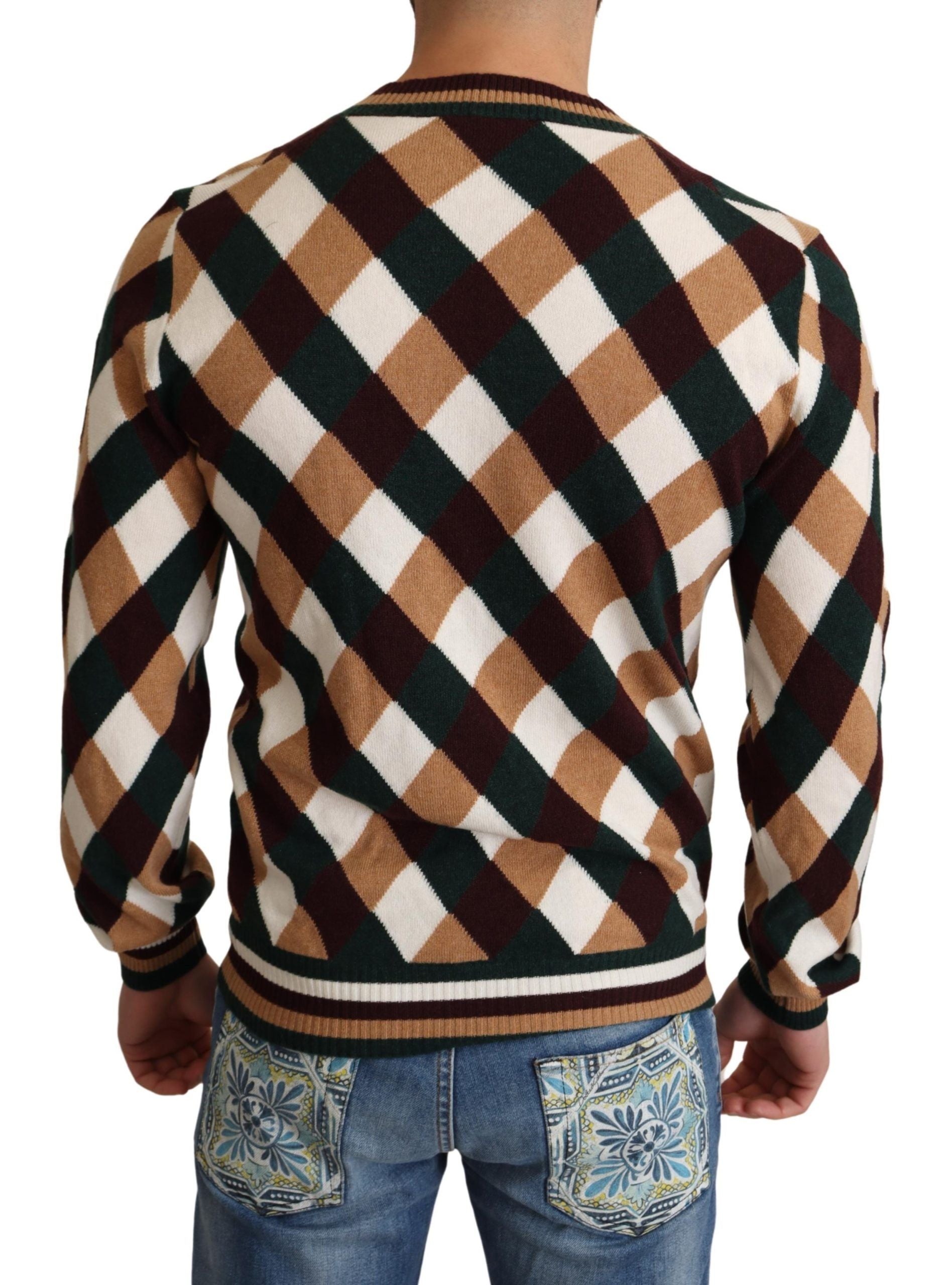 Indulge in the epitome of luxury with this exquisite V-neck sweater from Dolce & Gabbana, crafted from the softest 100% cashmere. Boasting a chic checkered pattern and meticulous Italian craftsmanship, this pullover is a must-have for those who appreciate timeless style combined with unparalleled comfort. Perfectly paired with any ensemble, it’s an outstanding addition to your curated wardrobe.