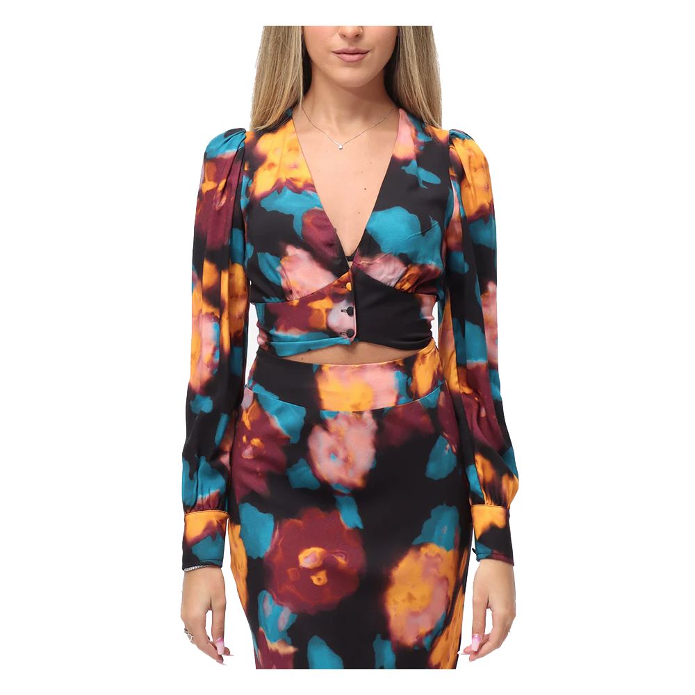 Mar de Margaritas long-sleeved viscose top with button closure and V-neck