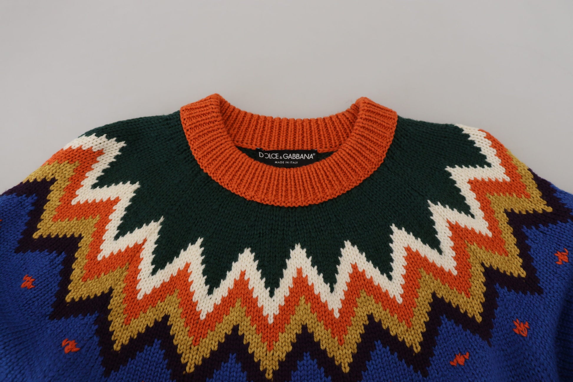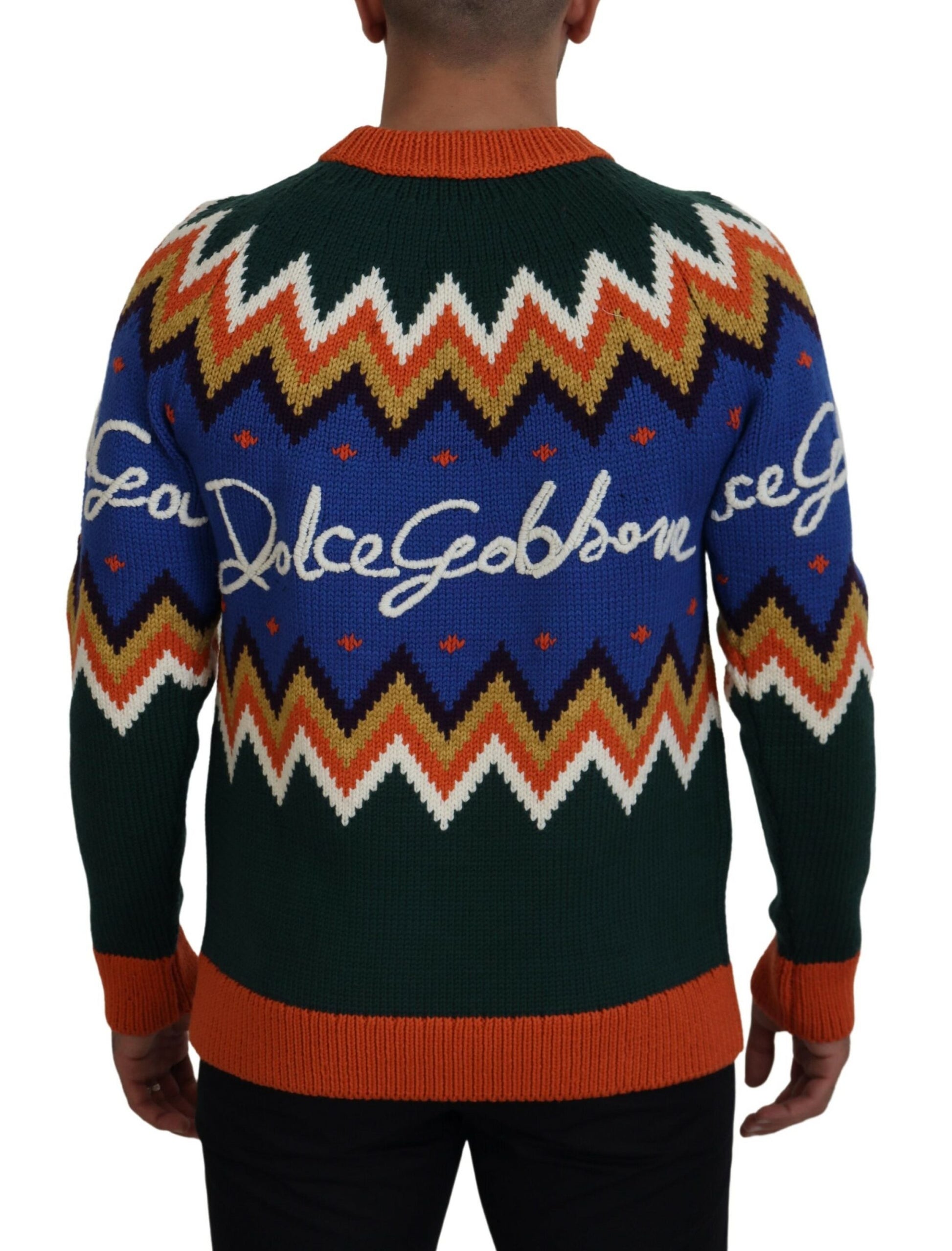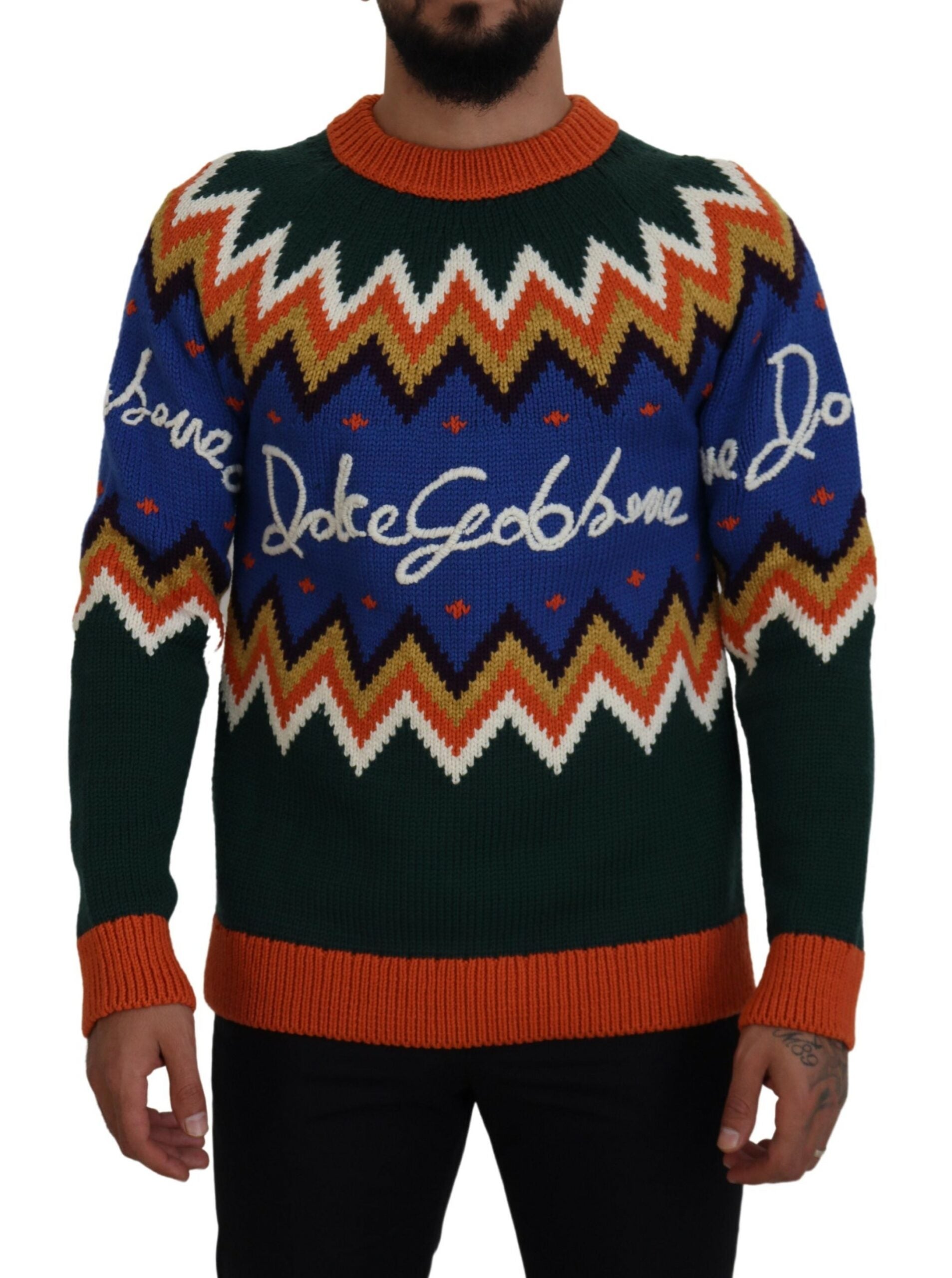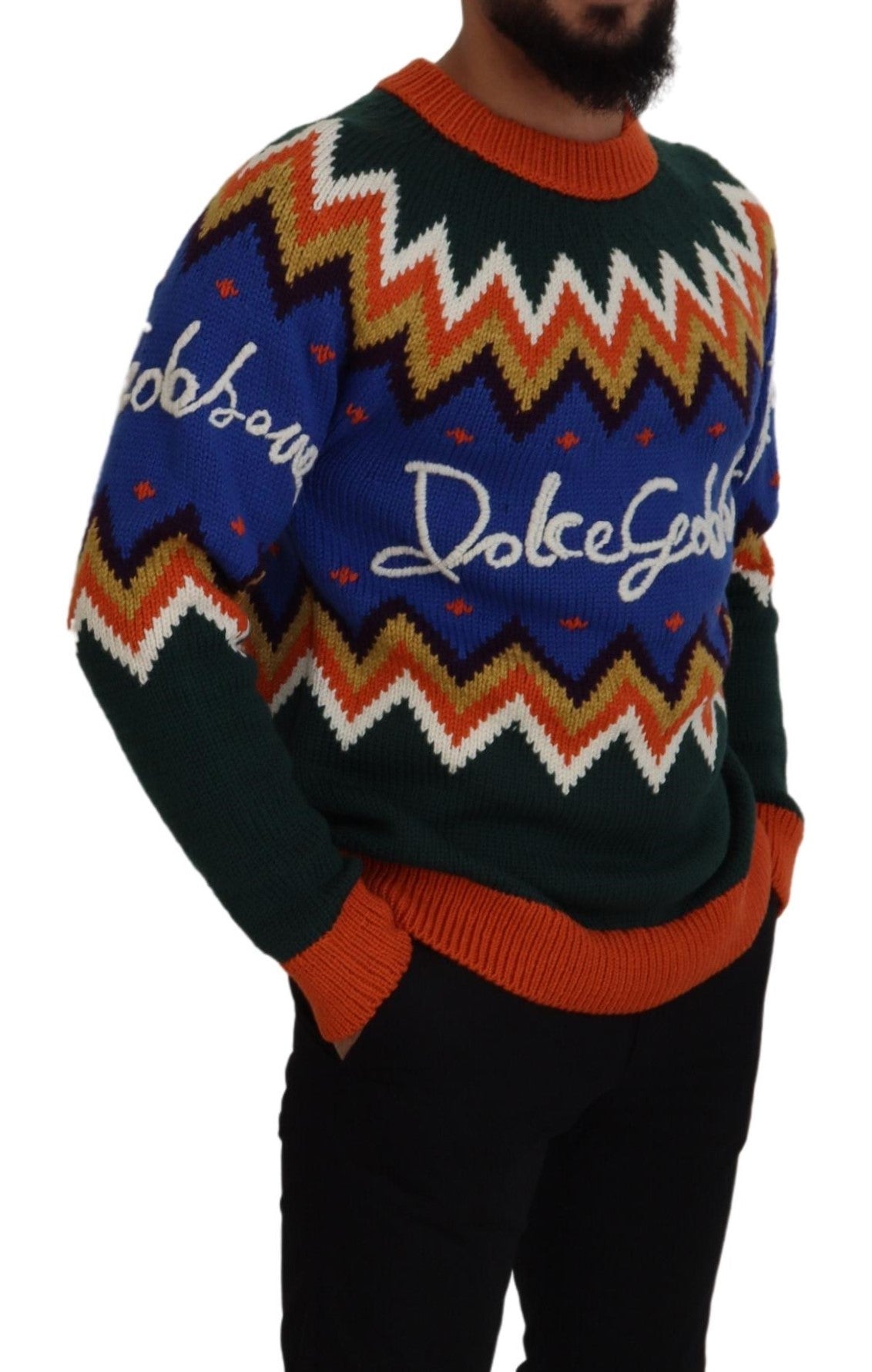 Embrace the luxury and artisanal quality of Dolce & Gabbana with this eye-catching multicolor pullover sweater. Expertly crafted in Italy, this piece perfectly embodies the elegance and sophistication that the brand is renowned for. Adorned with the iconic logo, this sweater is an exemplary fusion of fashion and comfort, made from a rich blend of 80% virgin wool and 20% wool to keep you warm in the utmost style.