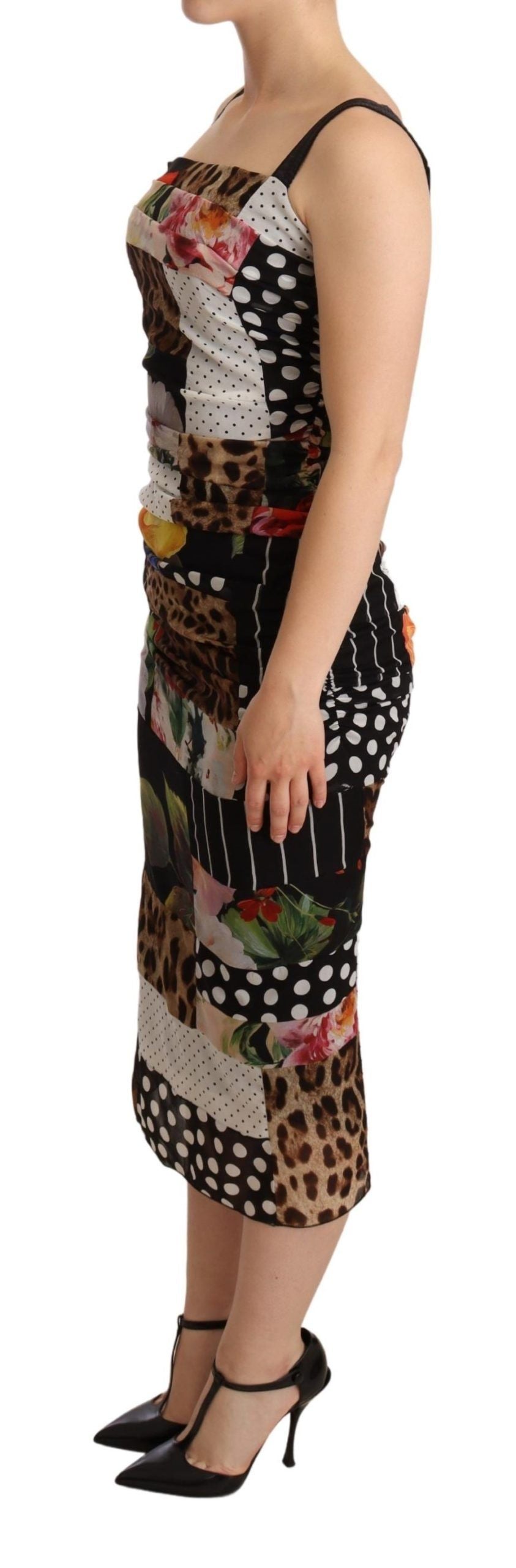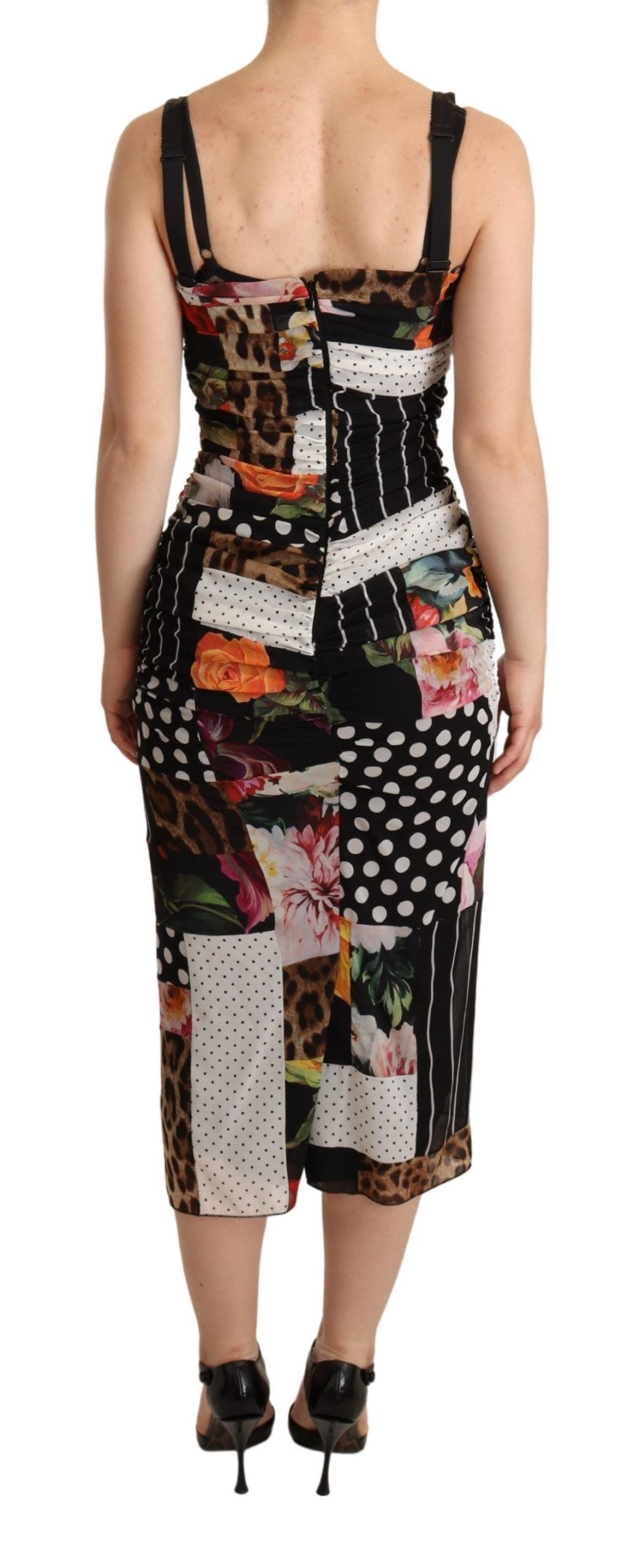 Indulge in the epitome of Italian luxury with this exquisite sleeveless sheath dress by Dolce & Gabbana. Tailored to perfection, this dress boasts a stunning mixed print design. The square neckline and thick shoulder straps offer a classic silhouette, while the straight hem and sleek back zip closure provide a flawless finish. It’s a piece that stunningly encapsulates Dolce & Gabbana’s renowned attention to detail and craftsmanship.