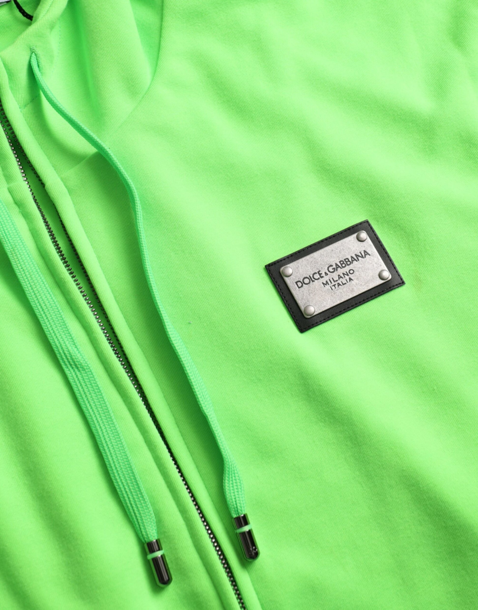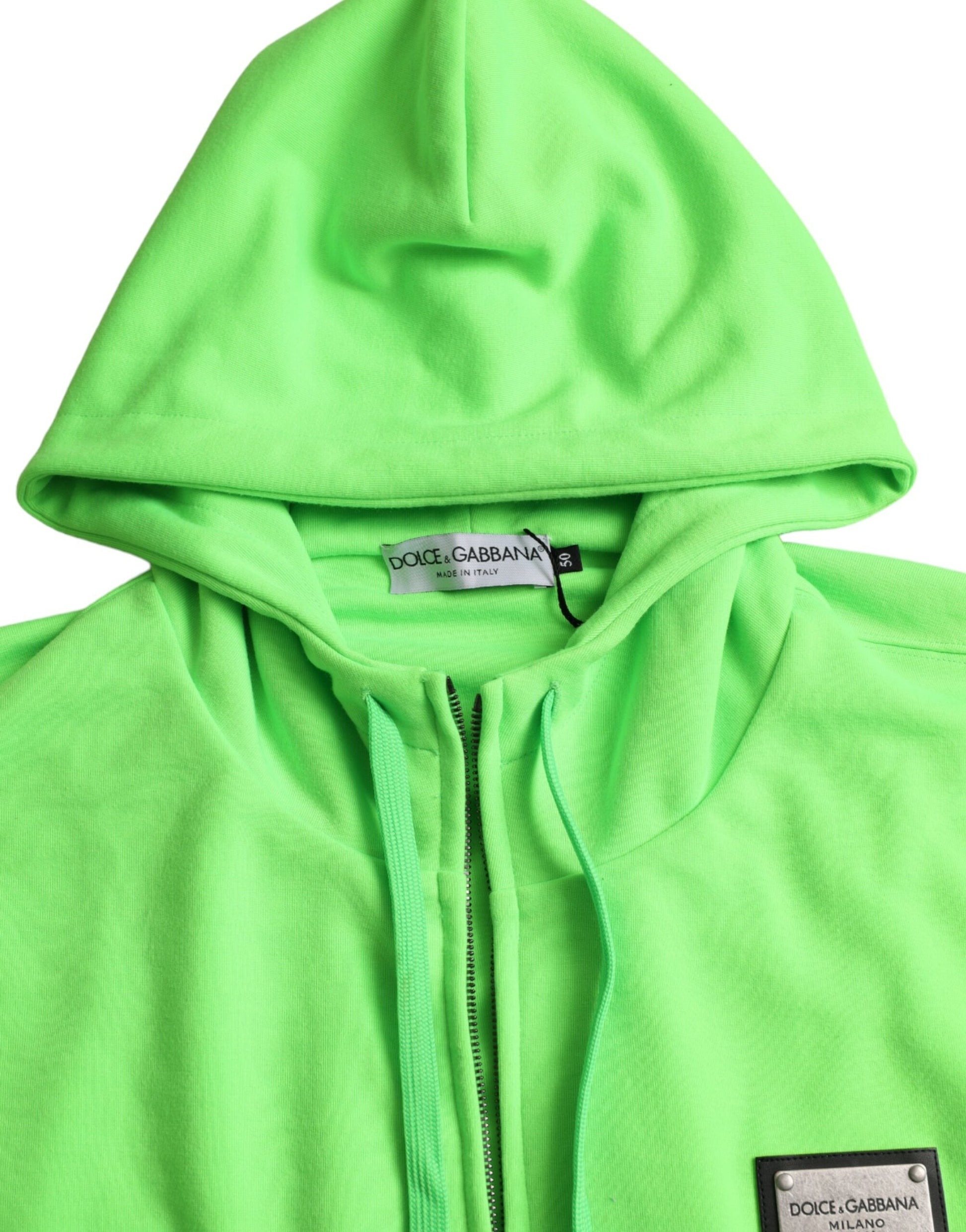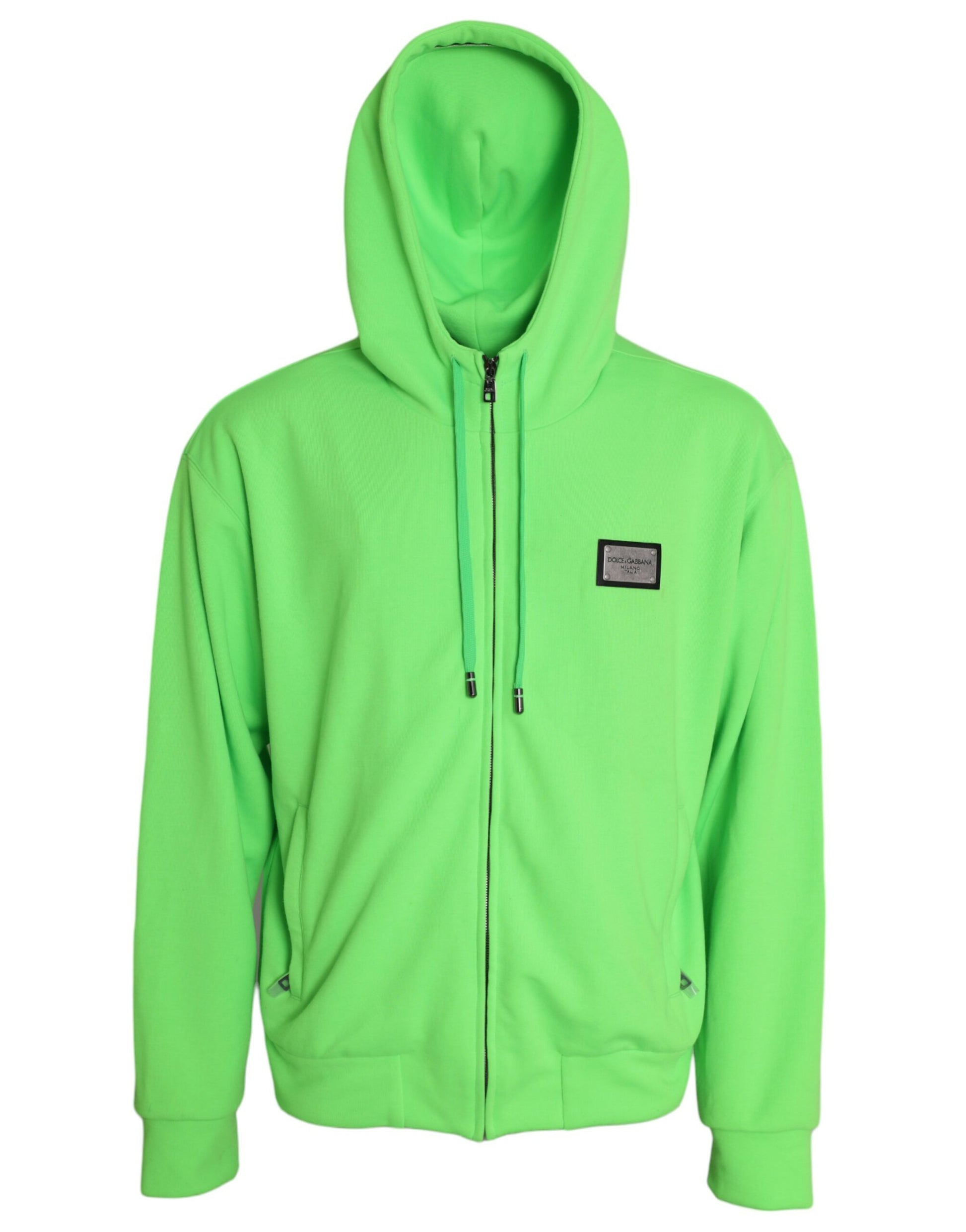 Neon Green Logo Full Zip Hooded Sweatshirt Sweater