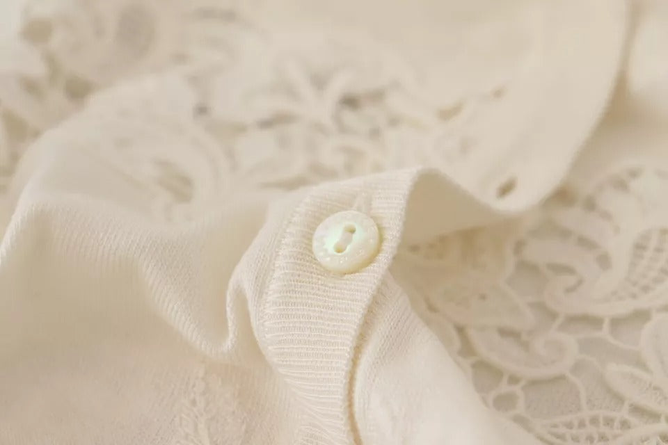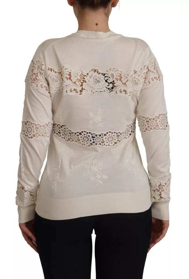 Off White Lace Button Down Cardigan Sweater