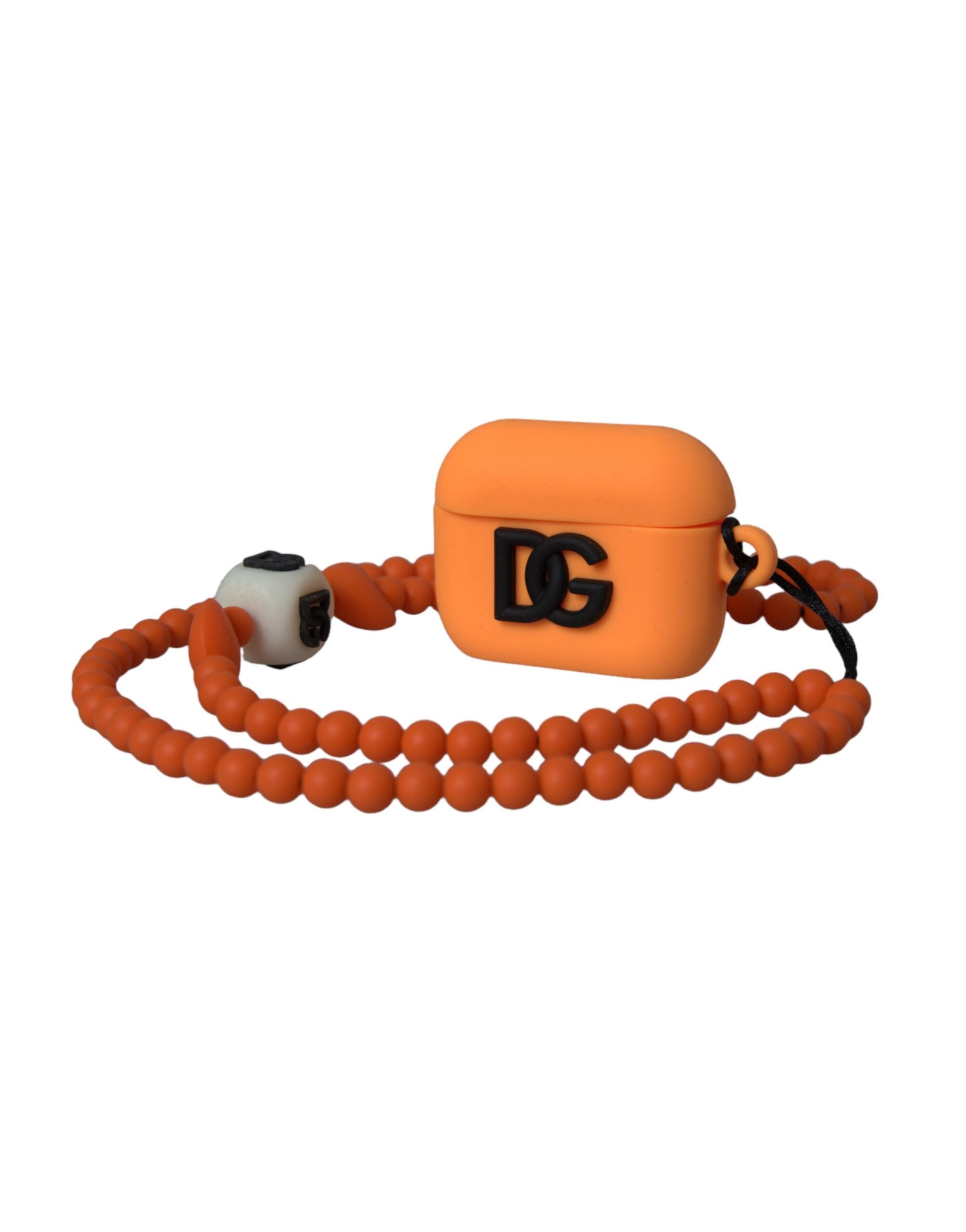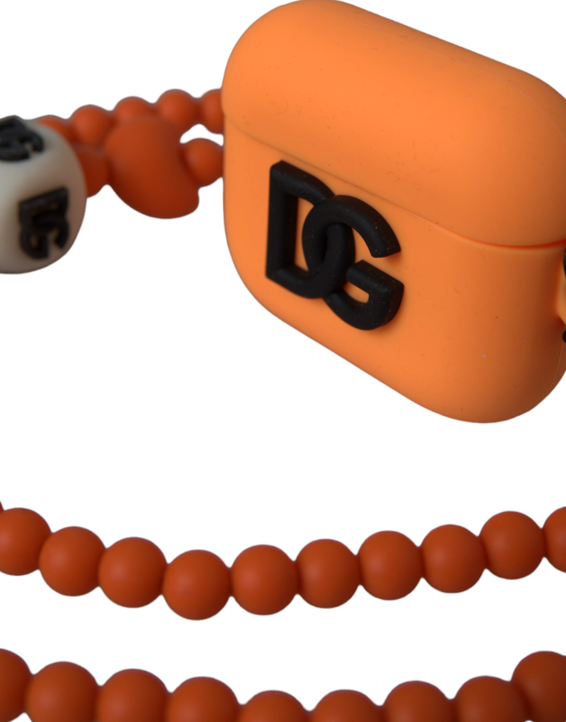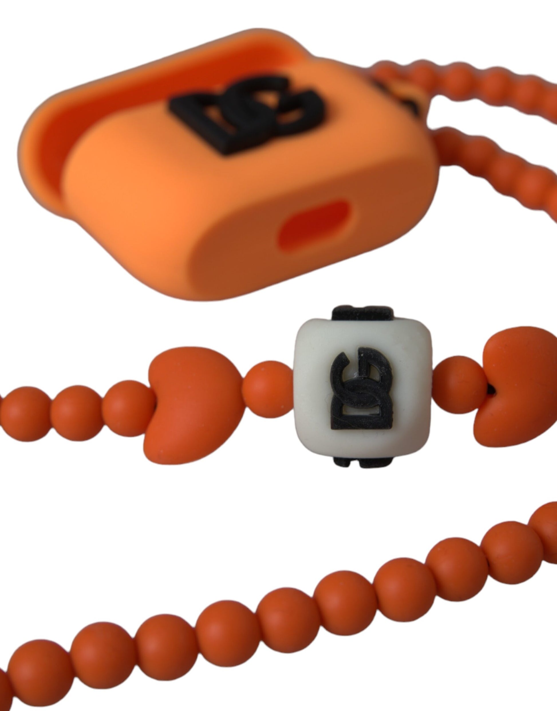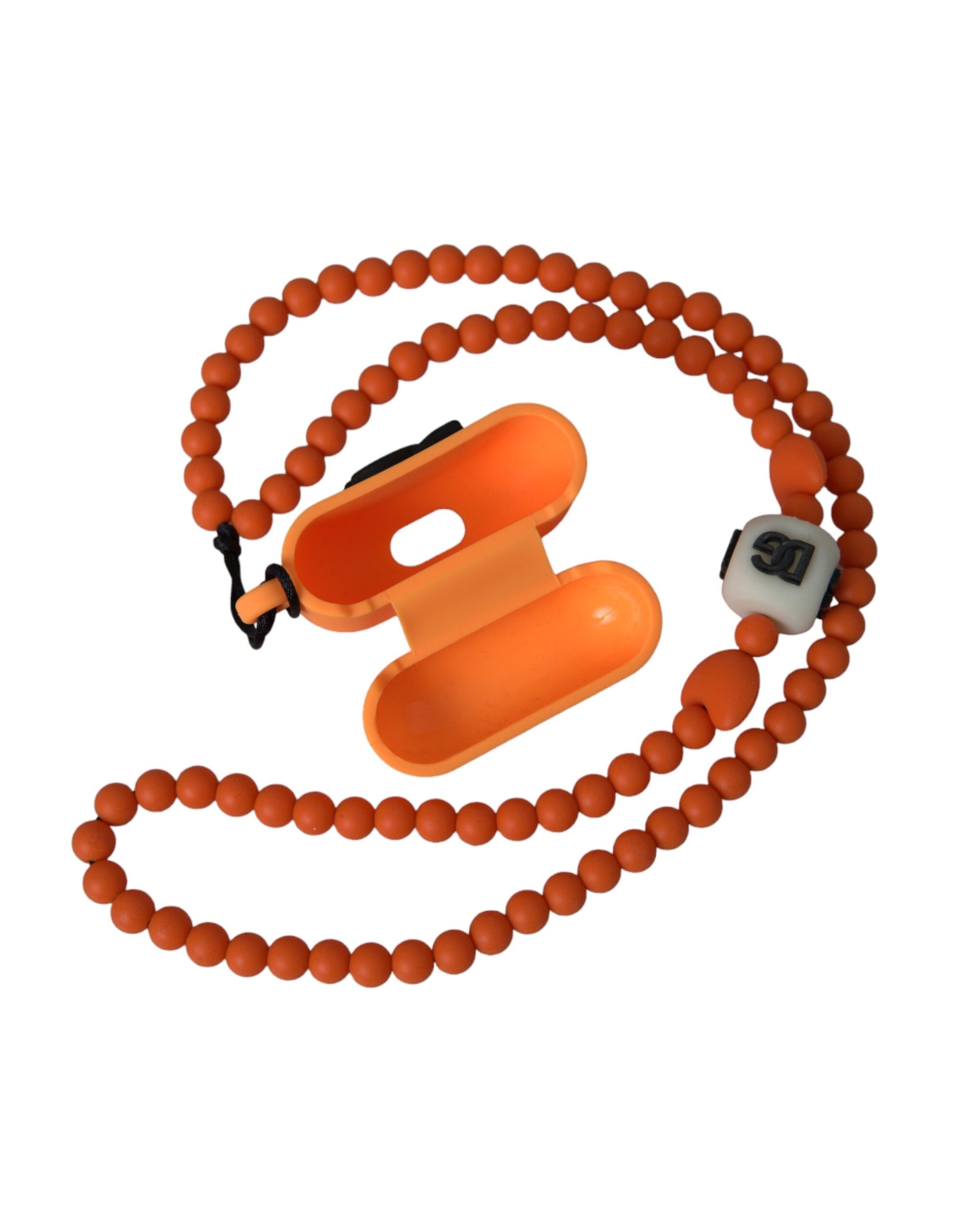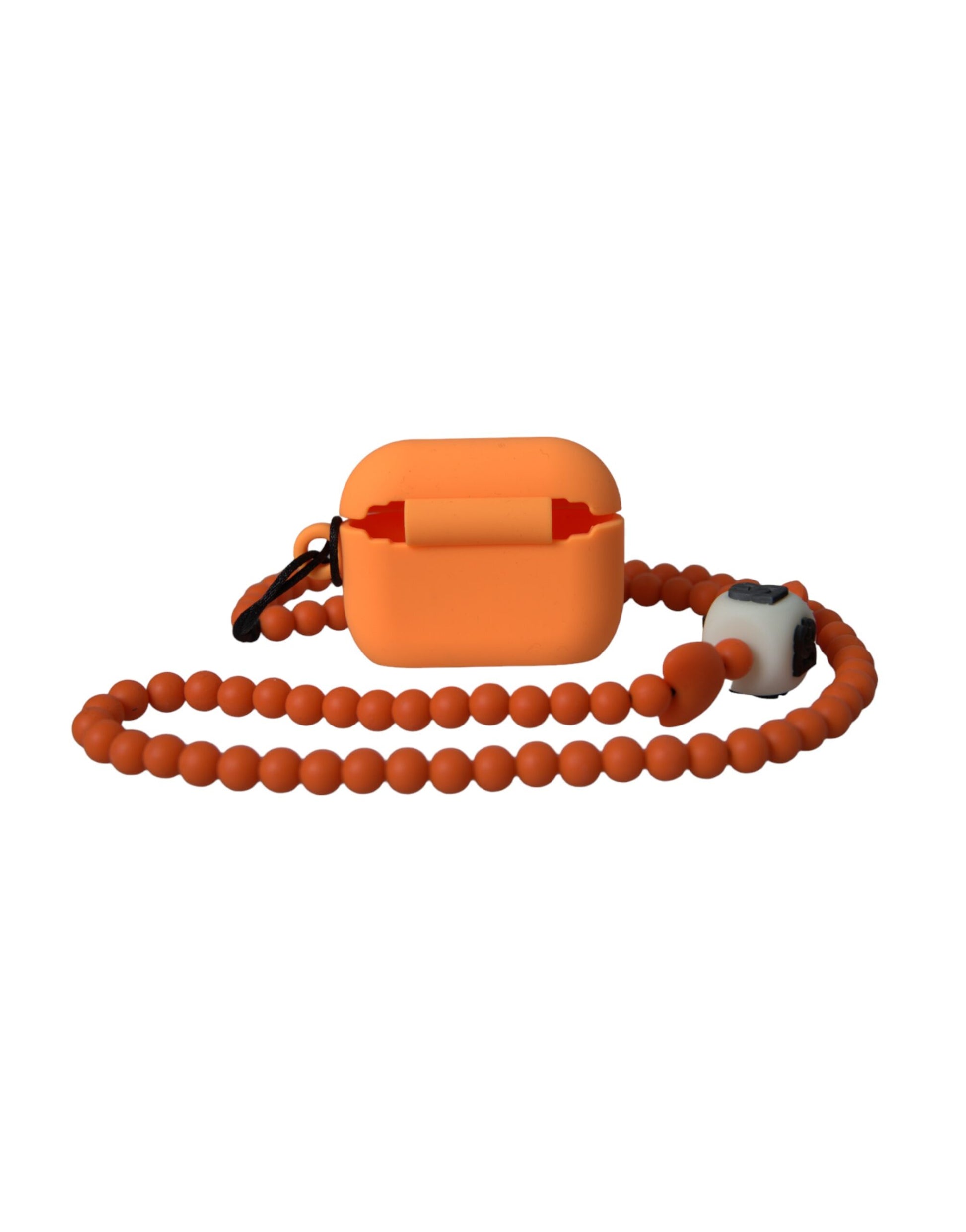 Orange Silicone Rubber Logo Beaded Strap Airpods Case