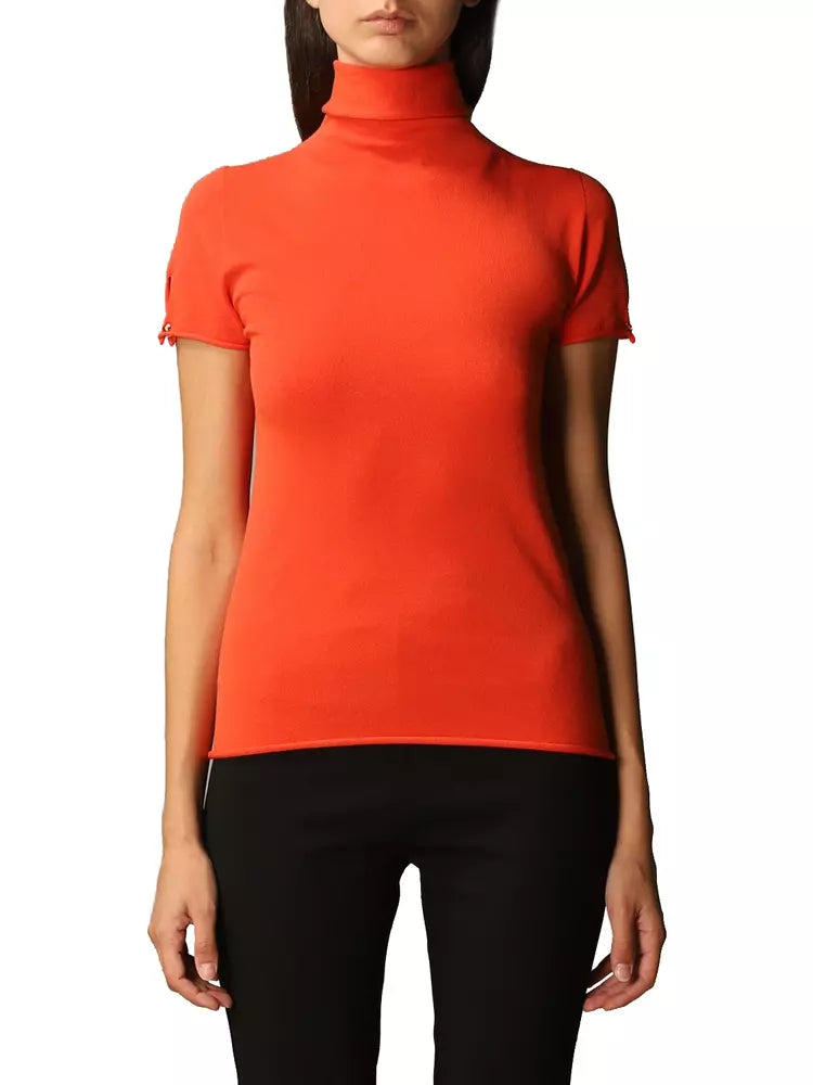 Sophistication meets comfort in this exquisite turtleneck sweater, crafted from a sumptuous viscose blend. Featuring short gathered sleeves that add a touch of elegance, and a dazzling jewel button on the sleeve that captures the light with every movement, this piece is a true testament to Italian craftsmanship and style. Perfect for those who appreciate a luxury touch in their everyday wardrobe.