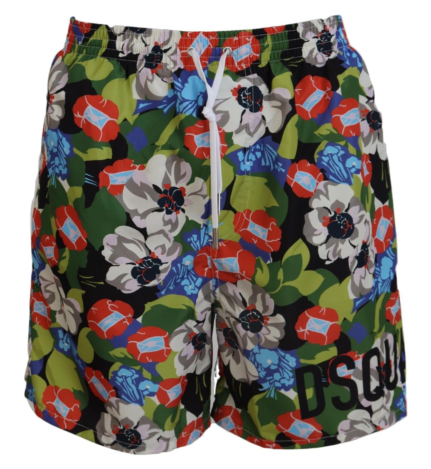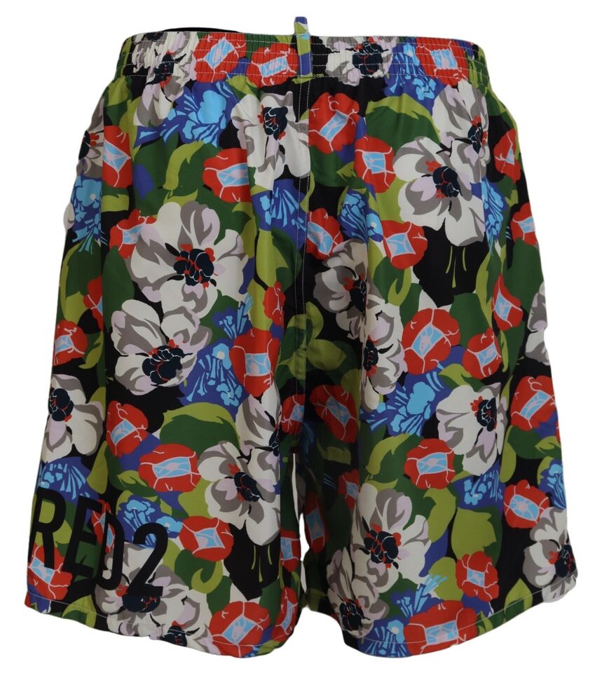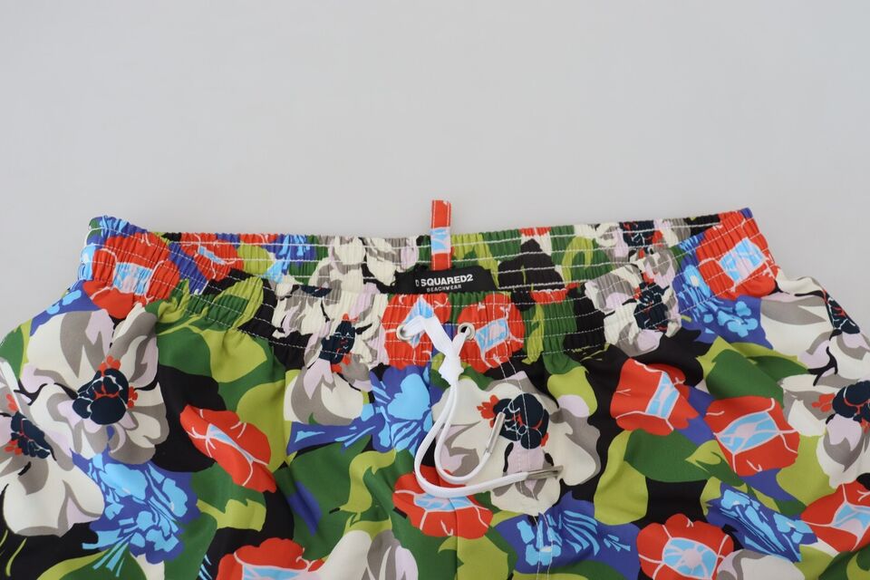 Step into summer with panache in these vibrant Dsquared² Swim Shorts . These exclusive swim trunks boast an eye-catching multicolor floral print, designed to make a splash at the pool or beach. Crafted from high-quality 100% polyester, these shorts offer both comfort and durability. The elastic waist strap ensures a snug fit, while the two front pockets provide functionality without sacrificing style. Complete with the iconic Dsquared² logo details, these swim shorts are an embodiment of luxury swimwear fashion.