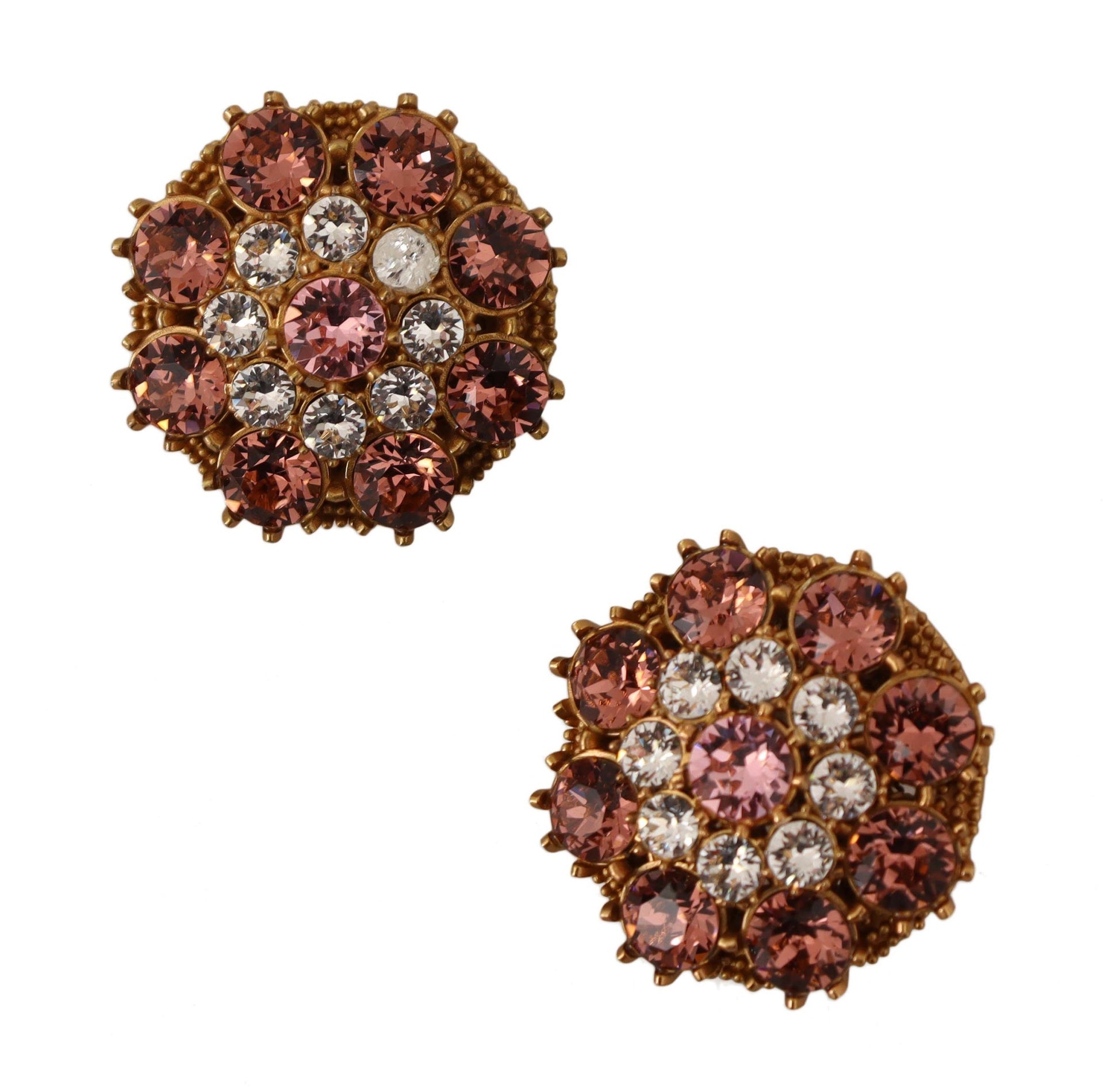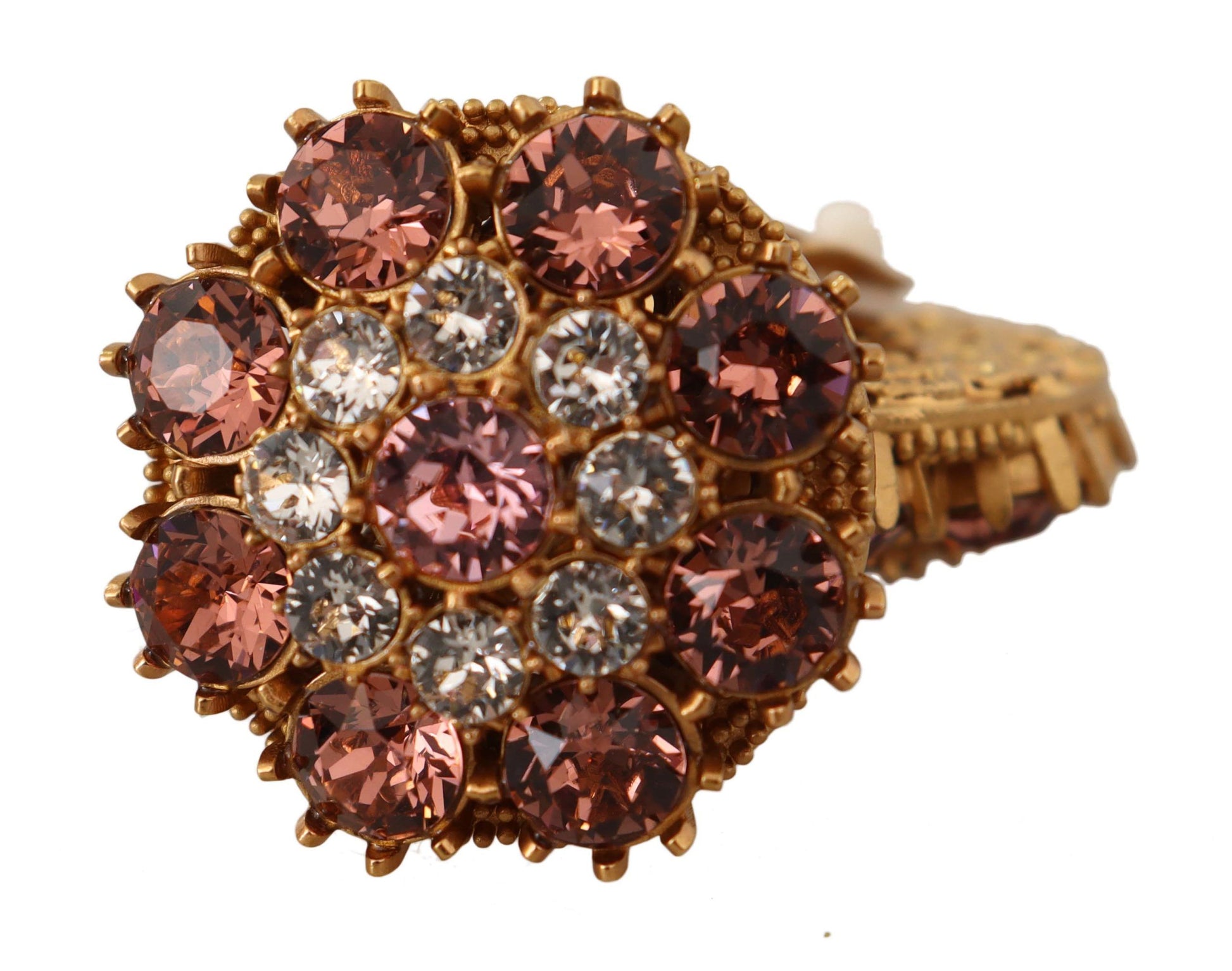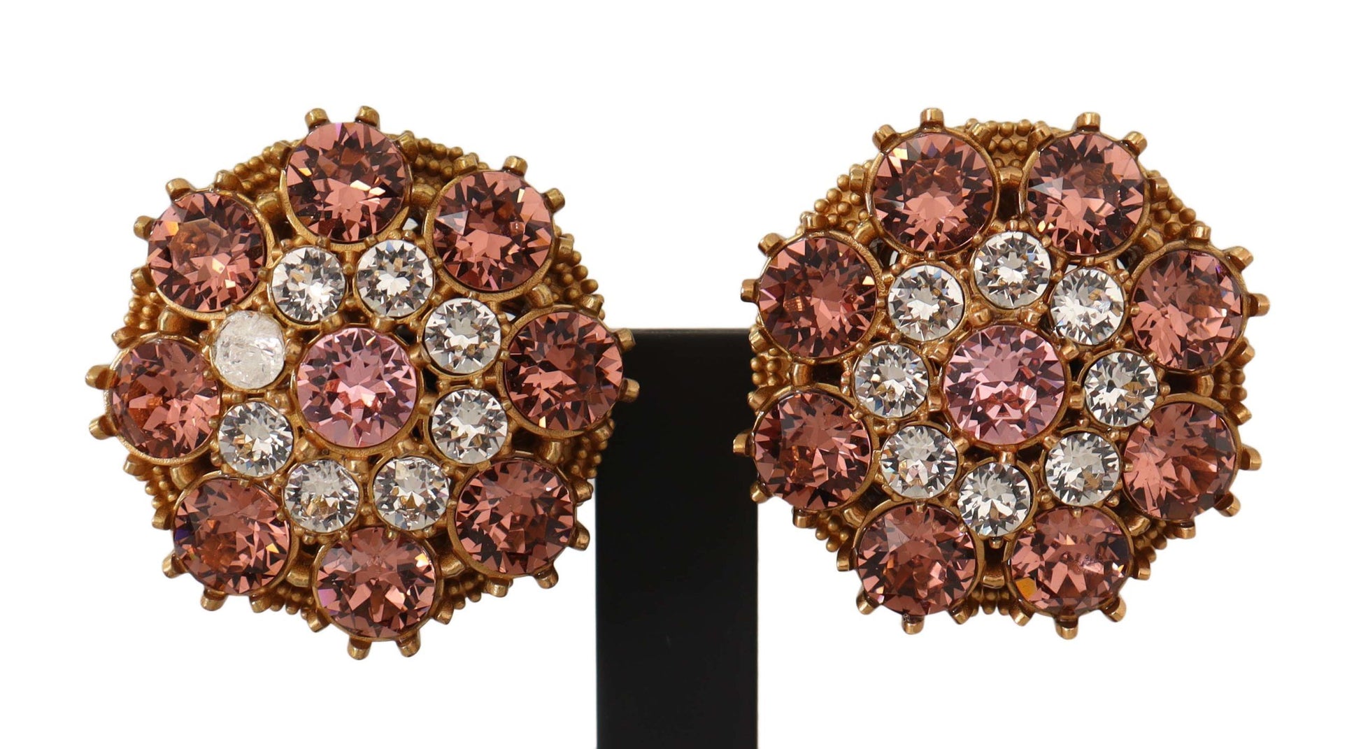 Adorn your evening attire with an opulent touch from these exquisite clip-on earrings. These stunning accessories are a true testament to the masterful craftsmanship of Dolce & Gabbana . Accentuated with a mesmerizing array of clear and pink crystals, and impeccably crafted from a foundation of light brass with a luscious galvanized golden coating, these earrings evoke pure luxury and elegance, perfect for those special, glamorous occasions.