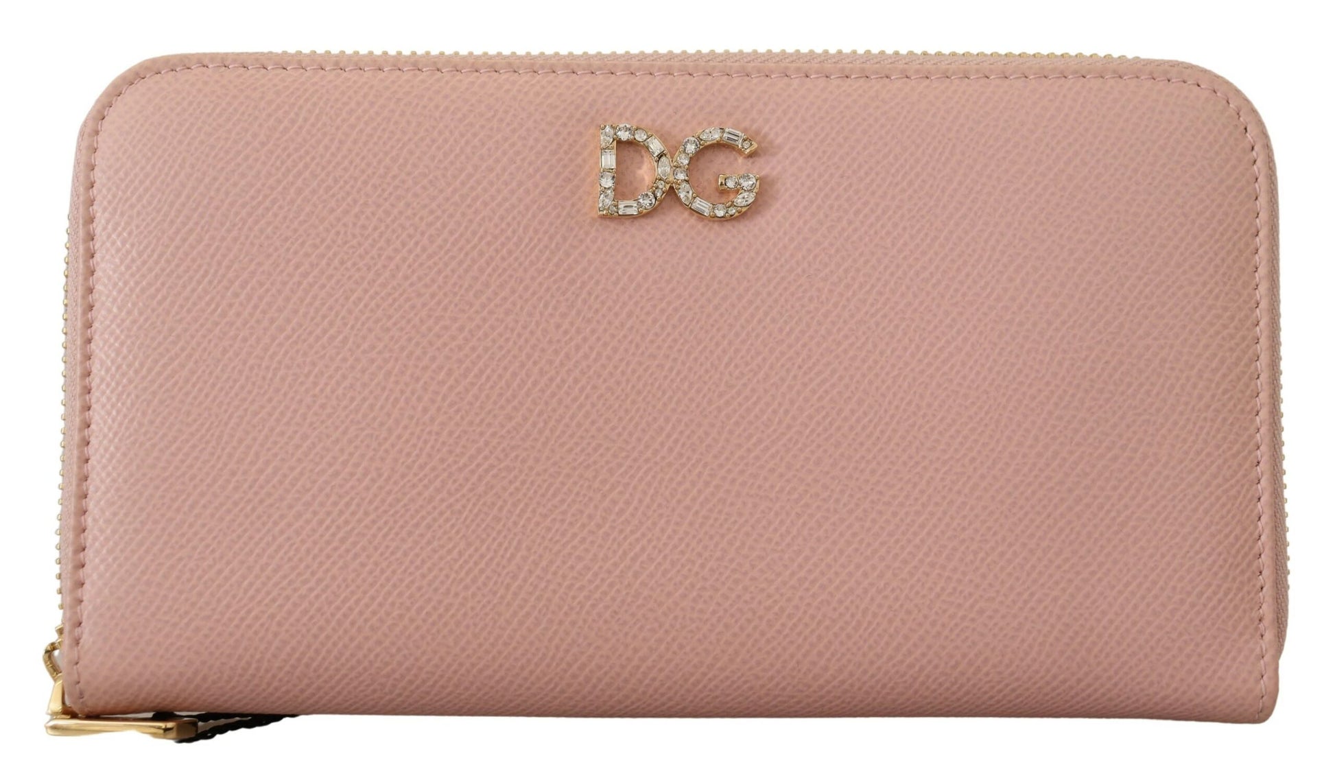 Indulge in the sophistication of an authentic Dolce & Gabbana leather wallet, brand new with tags and box. This elegant zip-around continental wallet is designed for the fashion-forward individual, featuring a luxurious pink hue complemented by gold metal detailing. Adorned with a clear crystal DG logo, this wallet melds practicality with opulence. Expertly crafted in Italy, its quality and style are unmatched, making it the perfect accessory to elevate your ensemble.