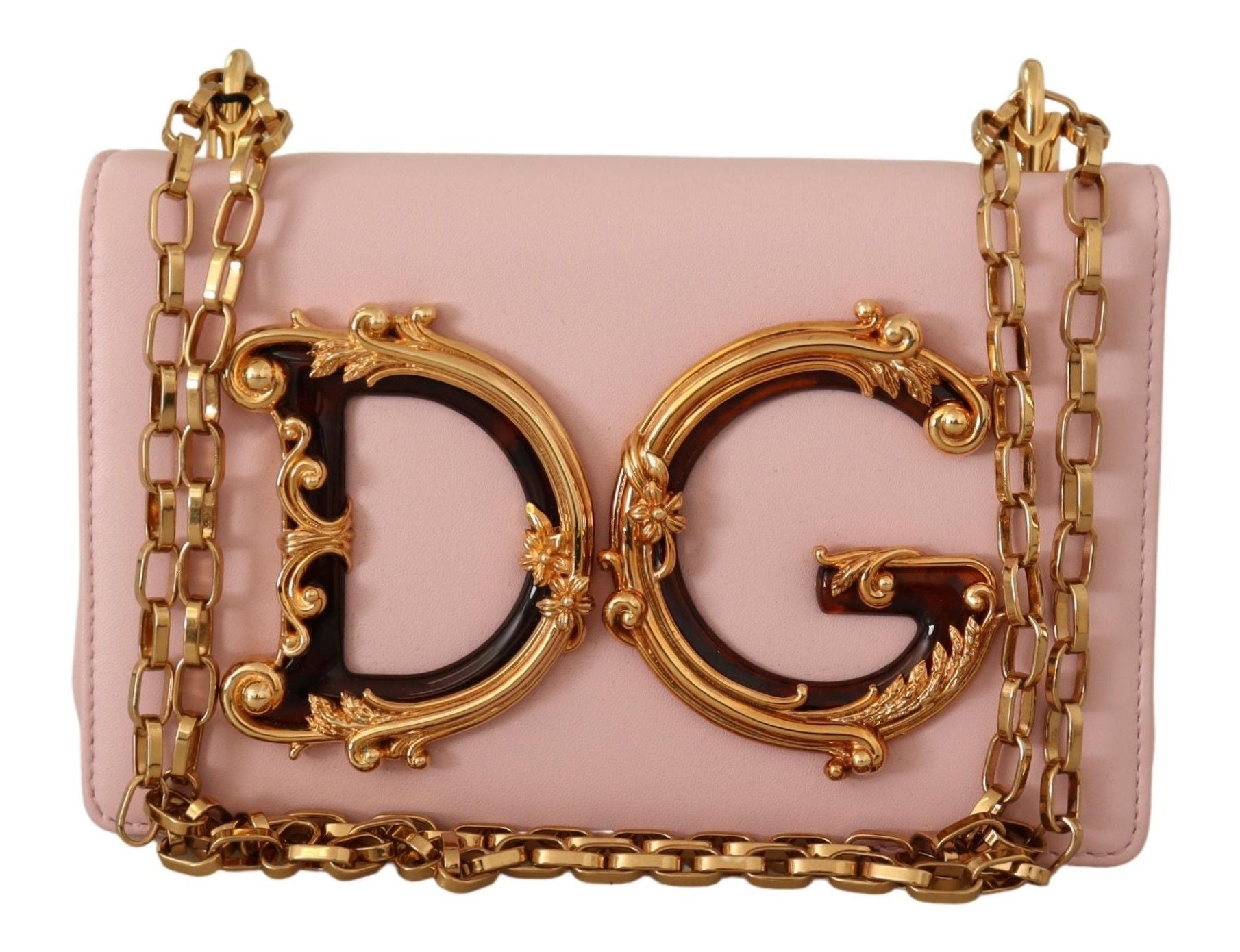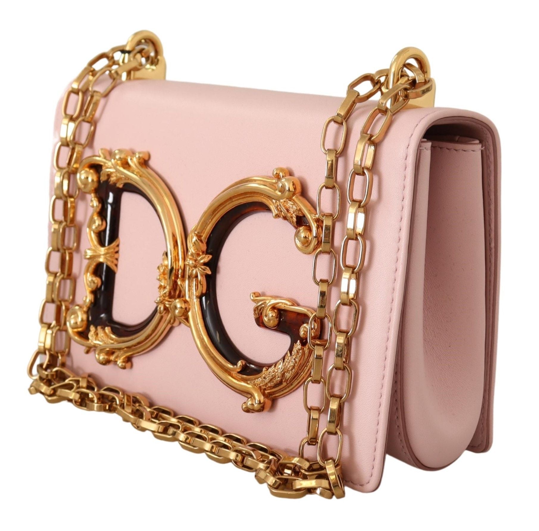 Discover the epitome of elegance with this stunning Dolce & Gabbana shoulder bag, perfect for the fashion-savvy individual. Impeccably crafted from luxurious pink leather and adorned with gold metal detailing, this bag brings a touch of sophistication to any ensemble. It features a practical magnet flap closure and a versatile chain shoulder strap that allows for over-the-shoulder or crossbody wear. Its leather-lined interior is just the right size to carry your essentials in style. Proudly made in Italy, this bag not only promises style but also unmatched quality and design.