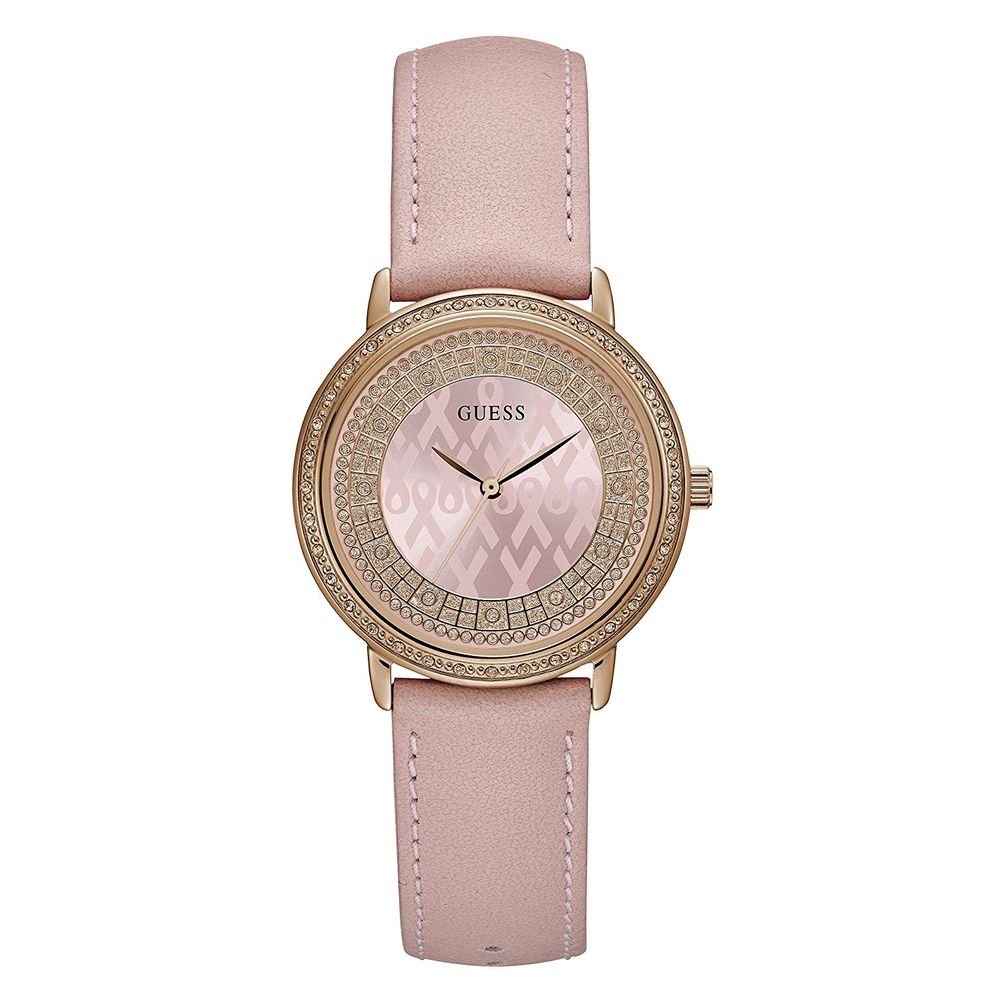 Type of mechanism: QUARTZ. Display: ANALOGICAL. Material Of Case: STAINLESS STEEL. Colour Of Case: PINK. Material Of Bracelet: LEATHER. Colour Of Bracelet: PINK. Dial Colour:PINK. Glass type: MINERAL. Clousure: BUCKLE. Water resistence: NO. Diameter dial: 36MM. Special Functions:Guess Watches Ladies Sparkling Pink