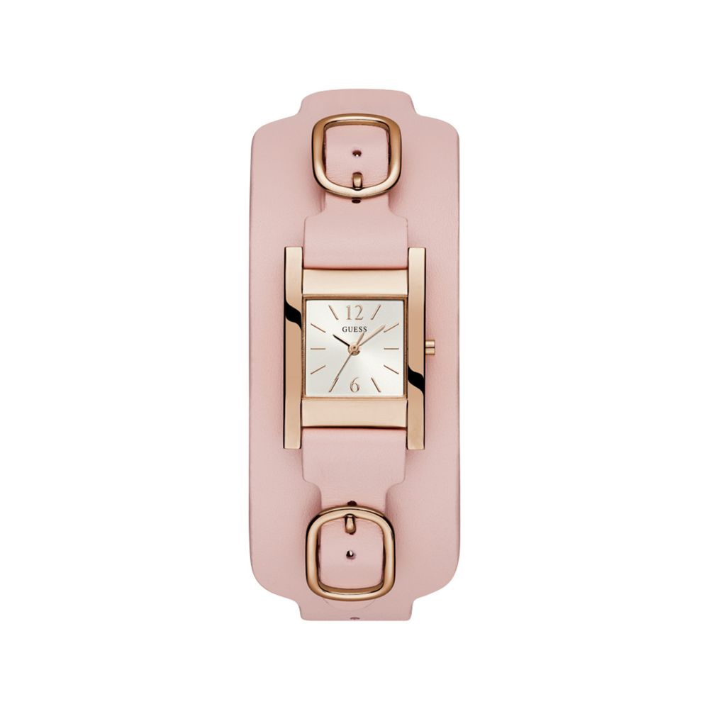 Type of mechanism: QUARTZ. Display: ANALOGICAL. Material Of Case: STAINLESS STEEL. Colour Of Case: PINK. Material Of Bracelet: LEATHER. Colour Of Bracelet: PINK. Dial Colour:WHITE. Glass type: MINERAL. Clousure: BUCKLE. Water resistence: NO. Diameter dial: 22MM. Special Functions:GUESS WATCHES LADIES BUCKLE UP