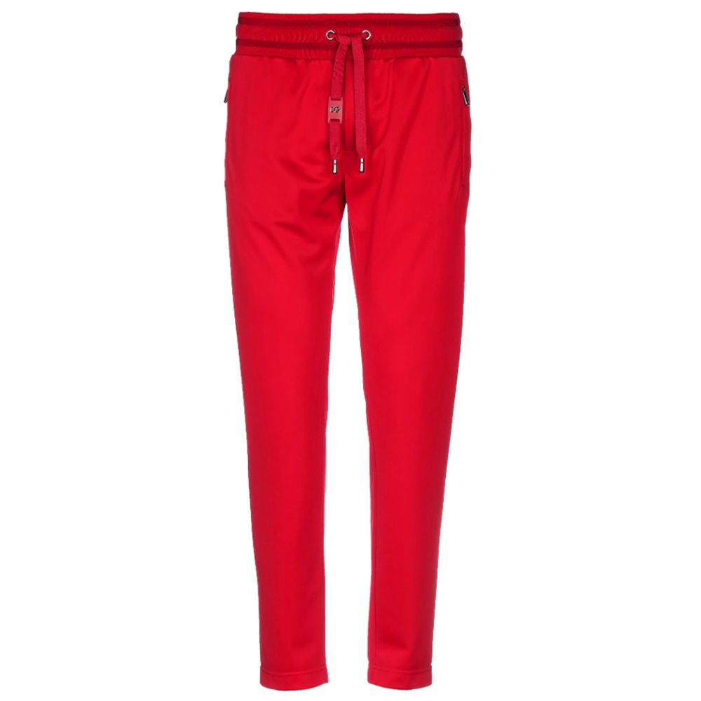 Step up your casualwear with these Dolce & Gabbana tracksuit trousers, masterfully crafted from high-quality 100% polyester. Perfect for the fashion-forward individual, these trousers feature an elasticated waist with a drawstring for a customizable fit. The practical multipockets add convenience while the distinct rubber logo on the back showcases your luxury taste. With measurements designed for comfort — external leg at 105 cm, internal leg at 77 cm, and a sleek 16 cm bottom width — they offer both style and comfort.