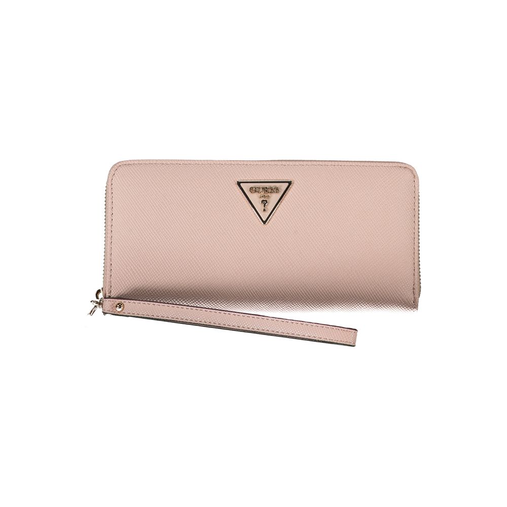 Exude elegance with this quintessential Guess Jeans wallet, accented by contrast details and boasting a removable long pull for versatile use. Designed to keep your essentials organized, this pink wallet features four spacious compartments, a dedicated coin purse, ample space for your cards, and an external pocket for quick access. Secure your belongings with the classic zip closure and flaunt the stylish logo detail with every use.