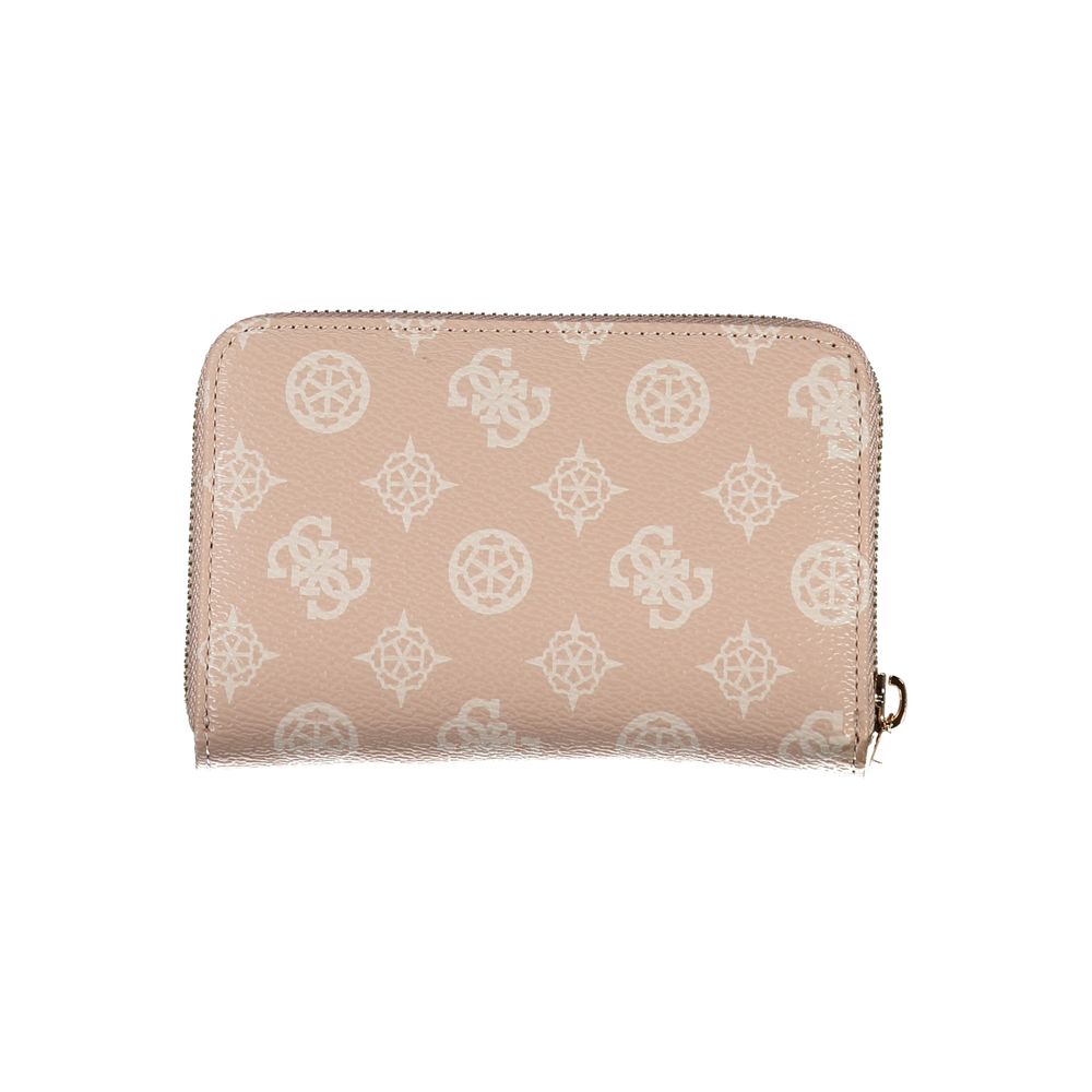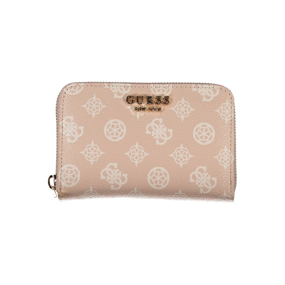 Discover sophistication with this stunning wallet designed for the modern woman. Crafted by the renowned Guess Jeans, it features a quintessential blend of style and functionality. Adorned with the iconic logo, this wallet has five compartments, a convenient coin purse, and ample card space secured by a sleek zip closure. The exquisite pink hue adds a touch of elegance to your everyday essentials.