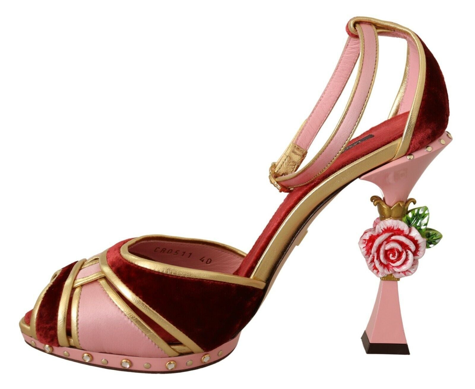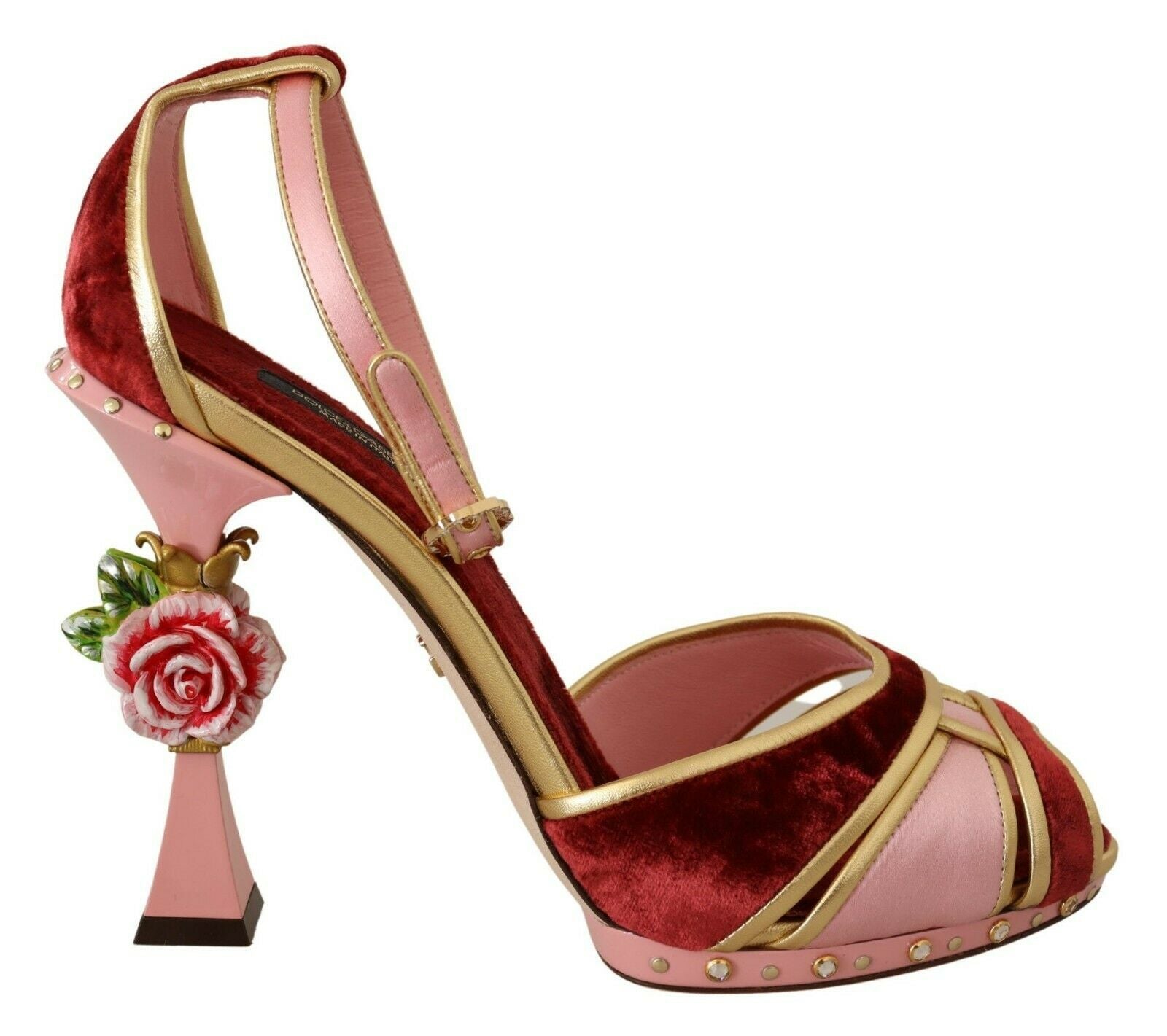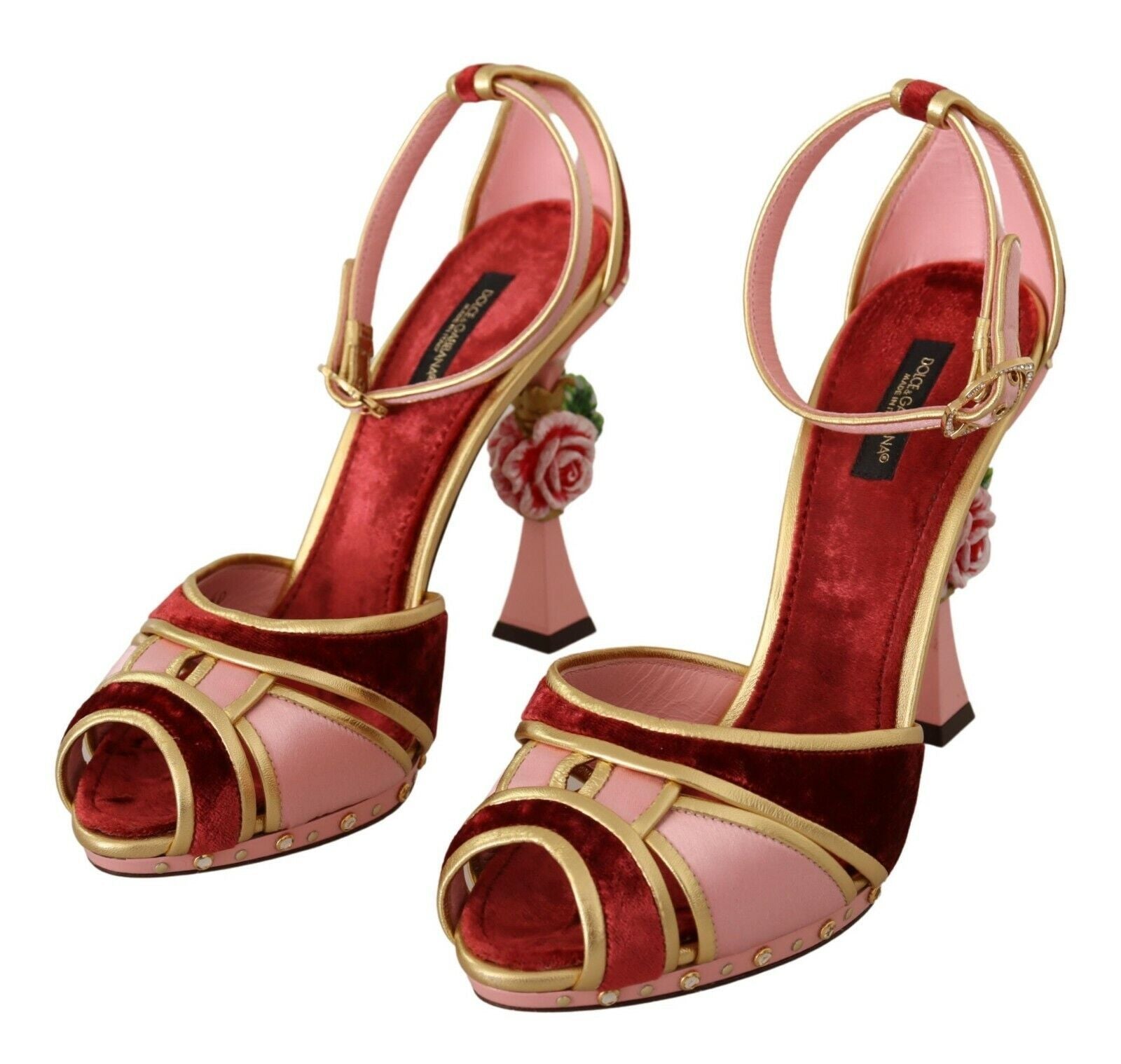 Step into luxury with these stunning satin and velvet sandals, crafted with precision and flair by Dolce & Gabbana. The exquisite sculpted heels add a touch of sophistication to any outfit, while the red and pink hues provide a bold fashion statement. Authentic, brand new, and accompanied by tags, these shoes are not only a testament to high craftsmanship but also a hallmark of style and elegance.