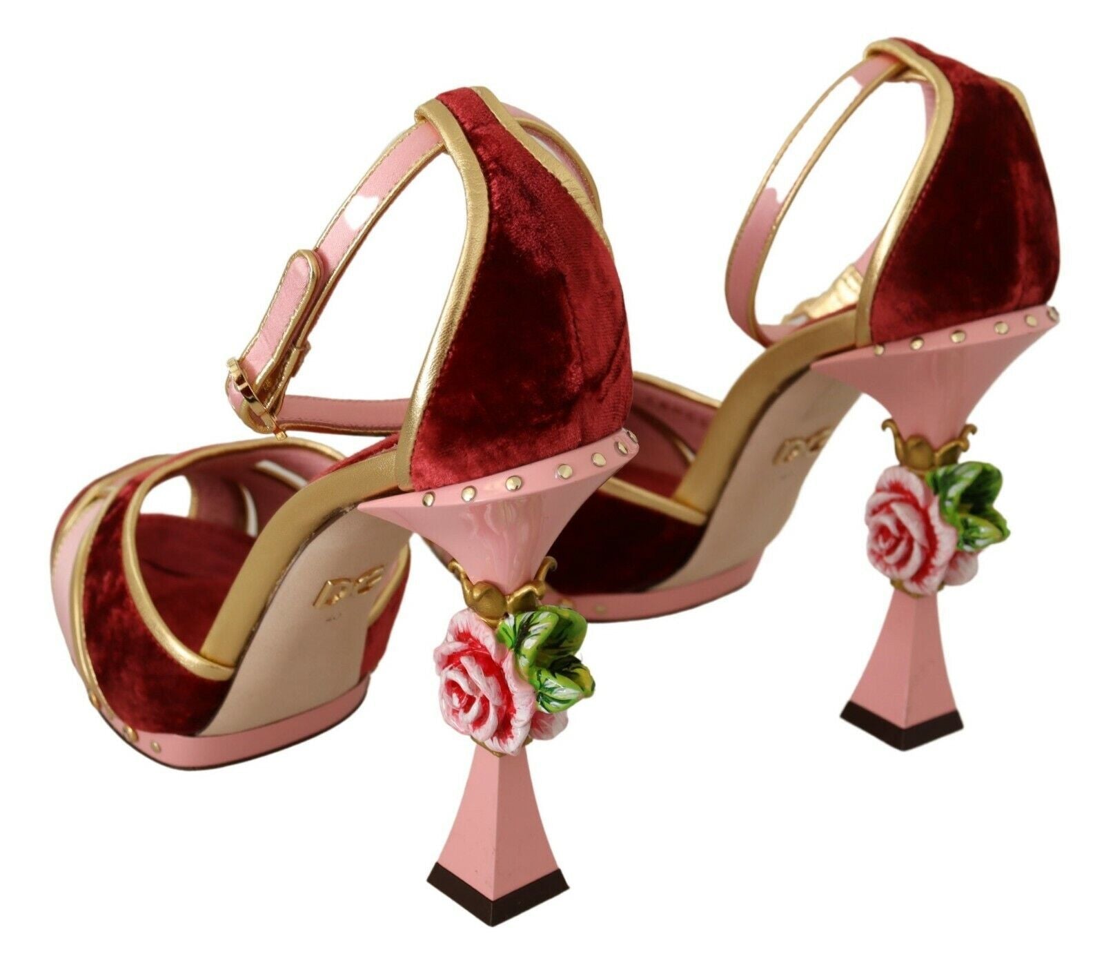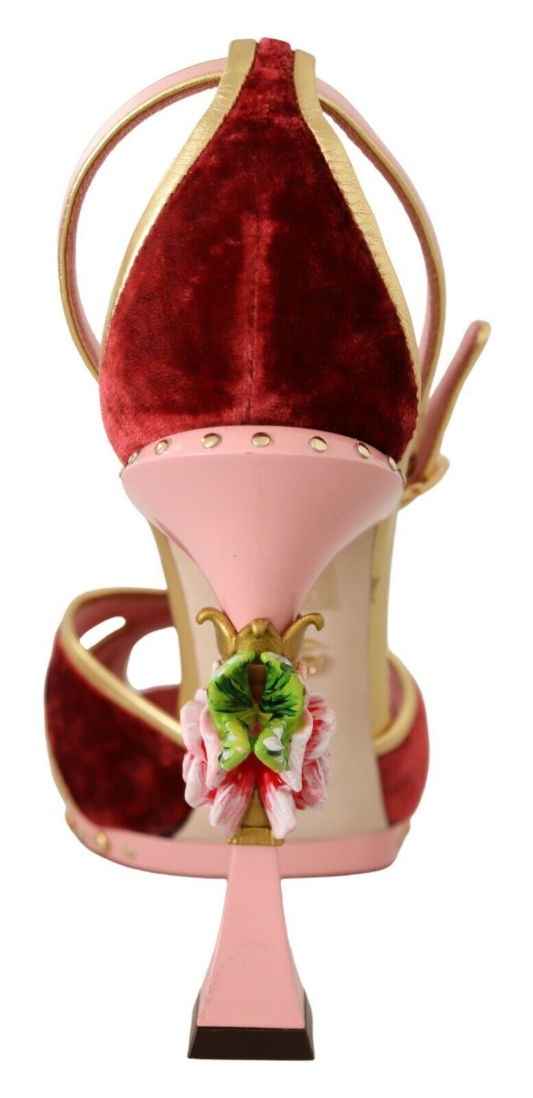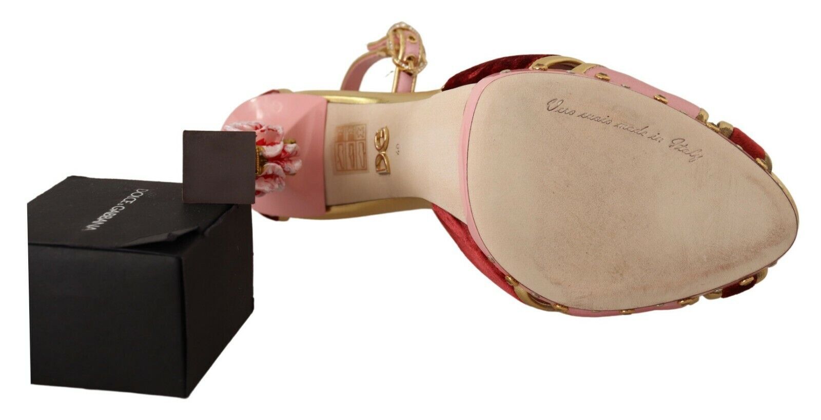 Step into luxury with these stunning satin and velvet sandals, crafted with precision and flair by Dolce & Gabbana. The exquisite sculpted heels add a touch of sophistication to any outfit, while the red and pink hues provide a bold fashion statement. Authentic, brand new, and accompanied by tags, these shoes are not only a testament to high craftsmanship but also a hallmark of style and elegance.