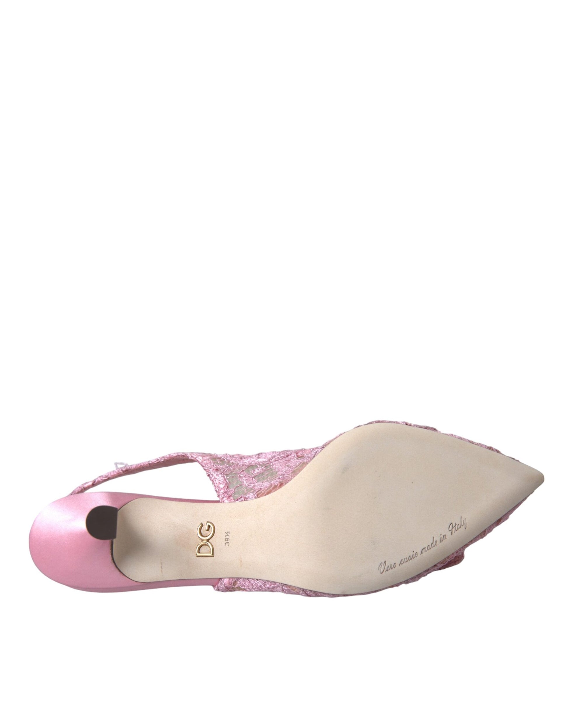 Pink Taormina Lace Crystal Heel Slingbacks Shoes