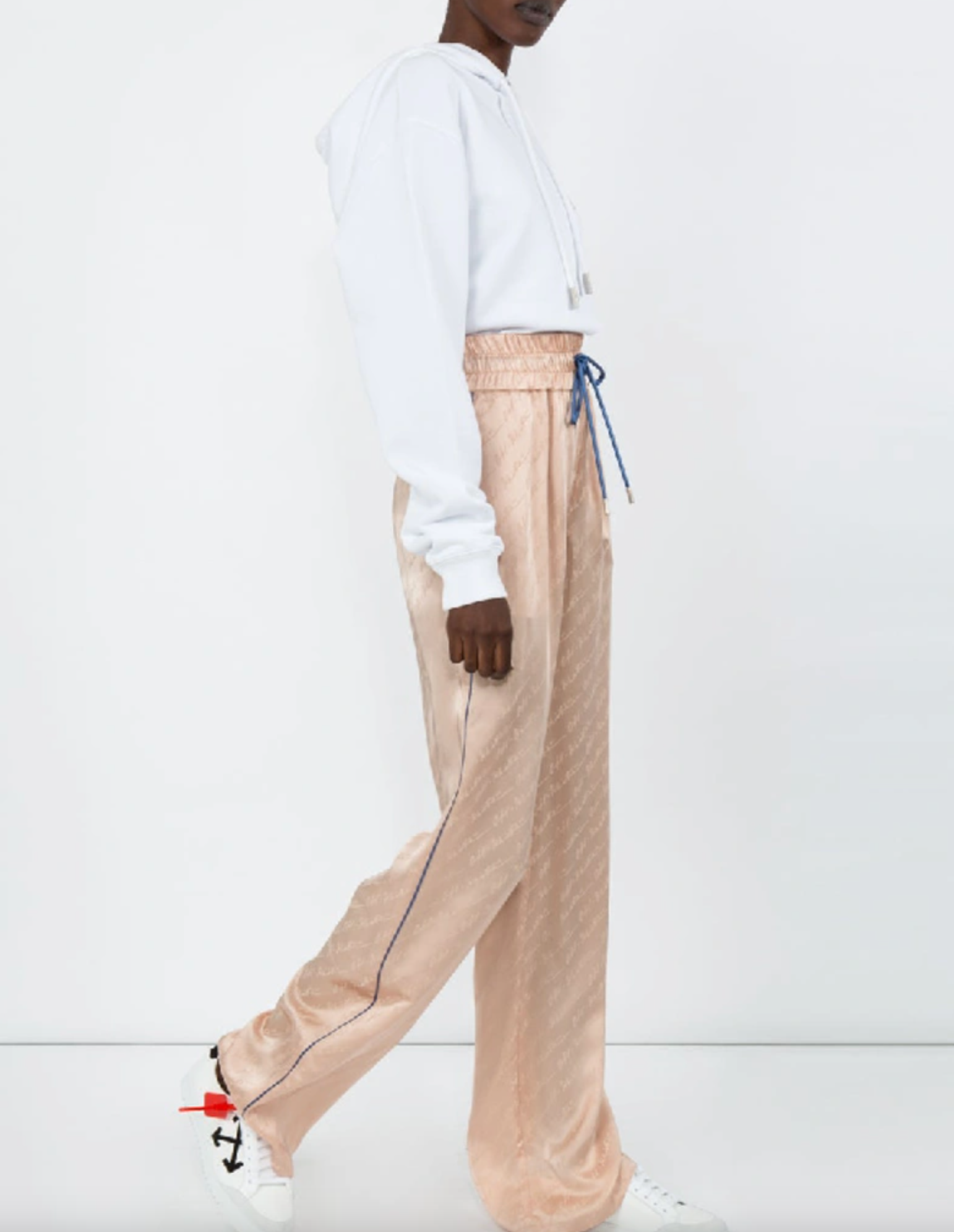 Make a powerful statement with these Off-White pants, where comfort meets high fashion in a symphony of bold design. Crafted in Italy, these pants boast an all-over logo that’s sure to turn heads and set trends. The perfect blend of 53% acetate and 47% viscose offers a luxurious feel and a flattering fit. Embrace the quintessence of contemporary style with a playful pink hue that exudes confidence and charm.