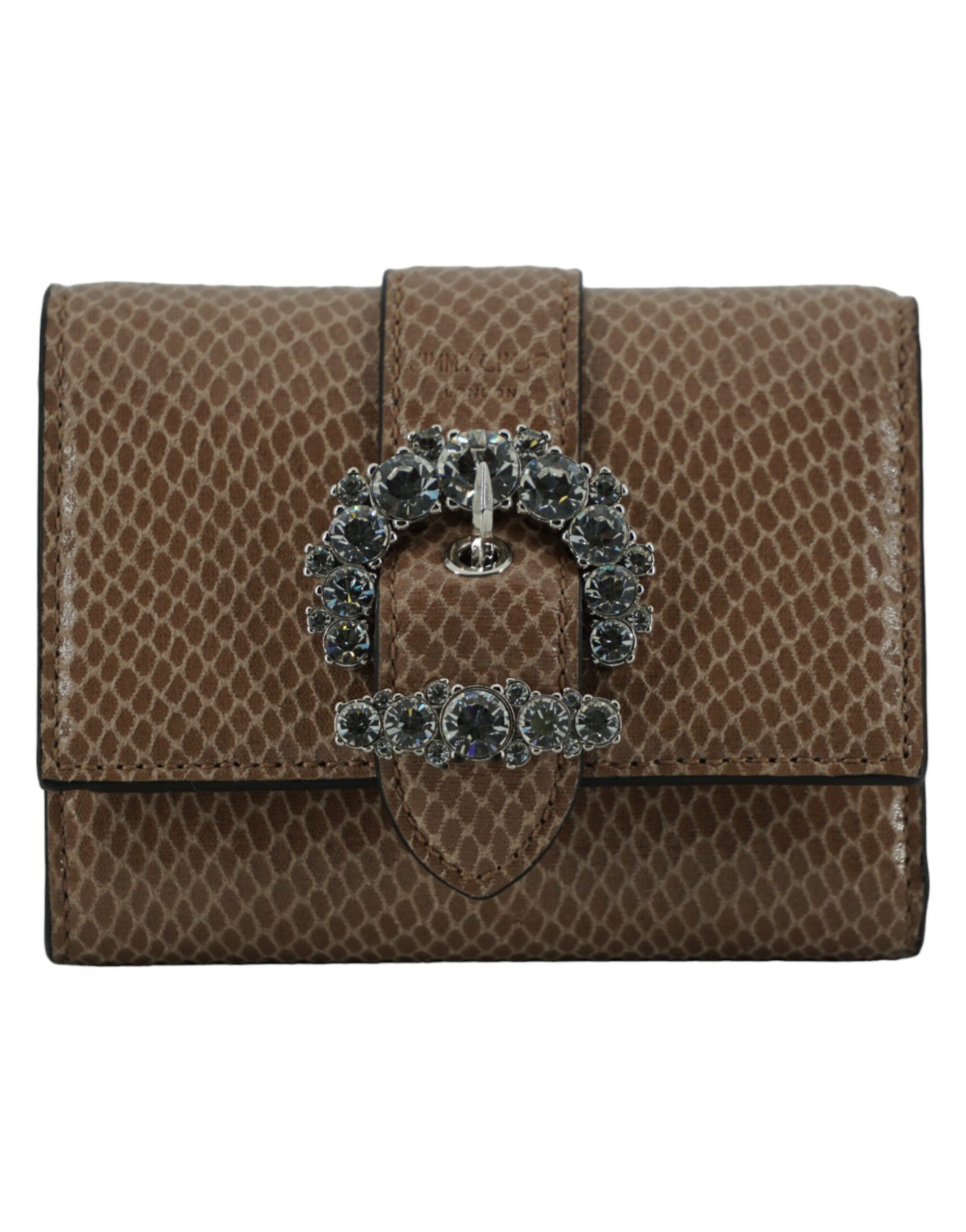Details: Card holder and wallet realised in lizard printed leather. Flap closure with snap button. With Crystals hardware and logo details. One main compartment and 6 card holders slots.
