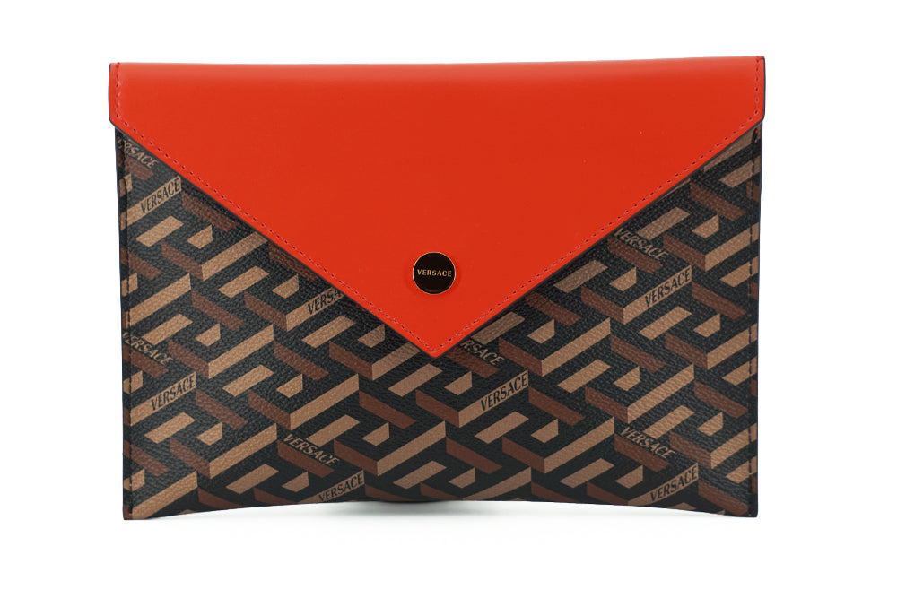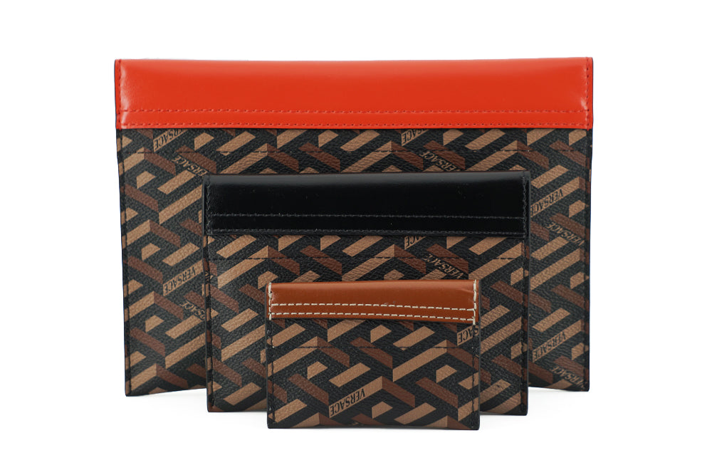 Elegant Versace Trio Pouch Set in Red & Brown