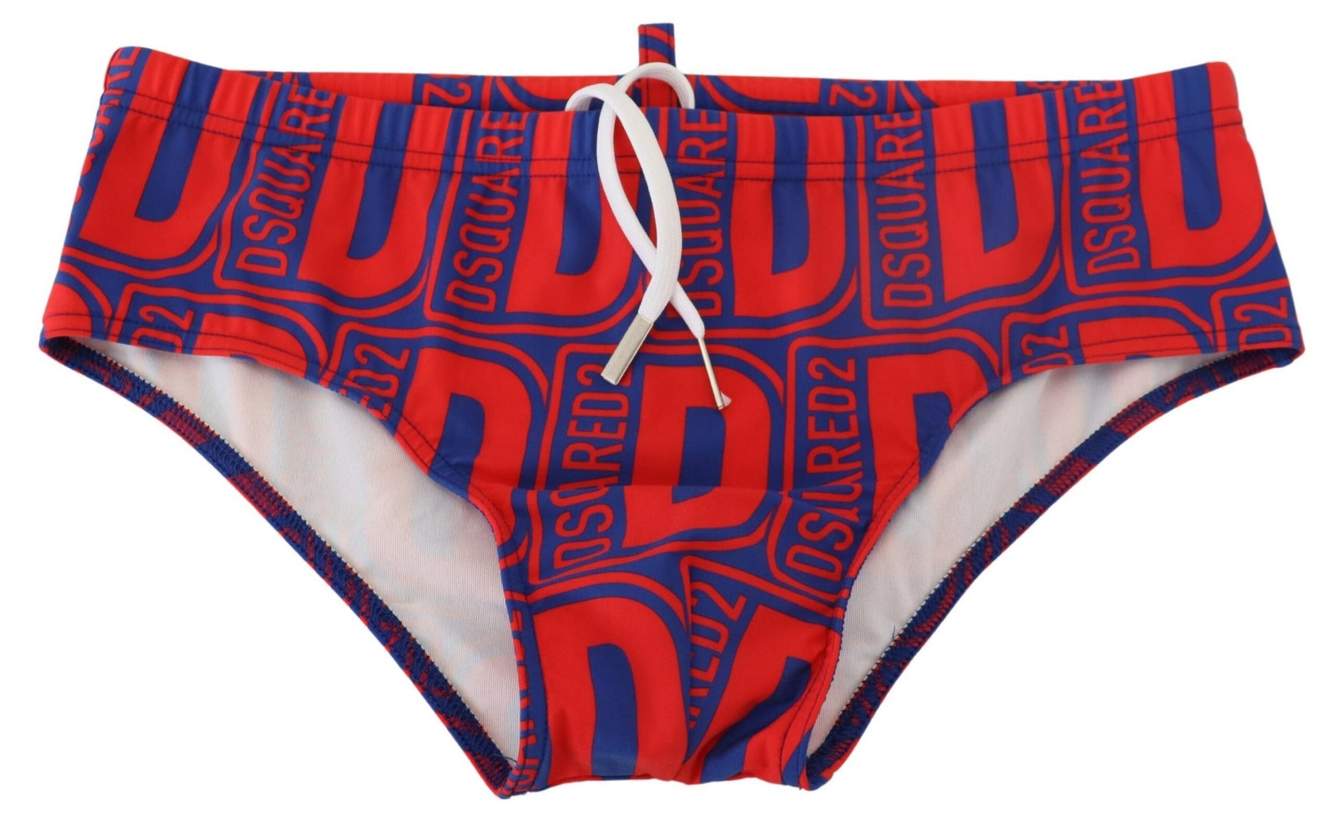 Make a splash in exclusive style with these chic Dsquared² swim briefs, perfect for the fashion-conscious gentleman. Crafted from a luxurious blend of materials for supreme comfort and a great fit, these red swim briefs feature a standout blue logo print, ensuring you turn heads at the beach or pool.