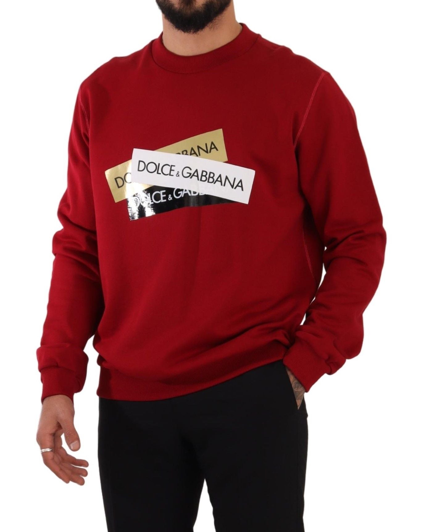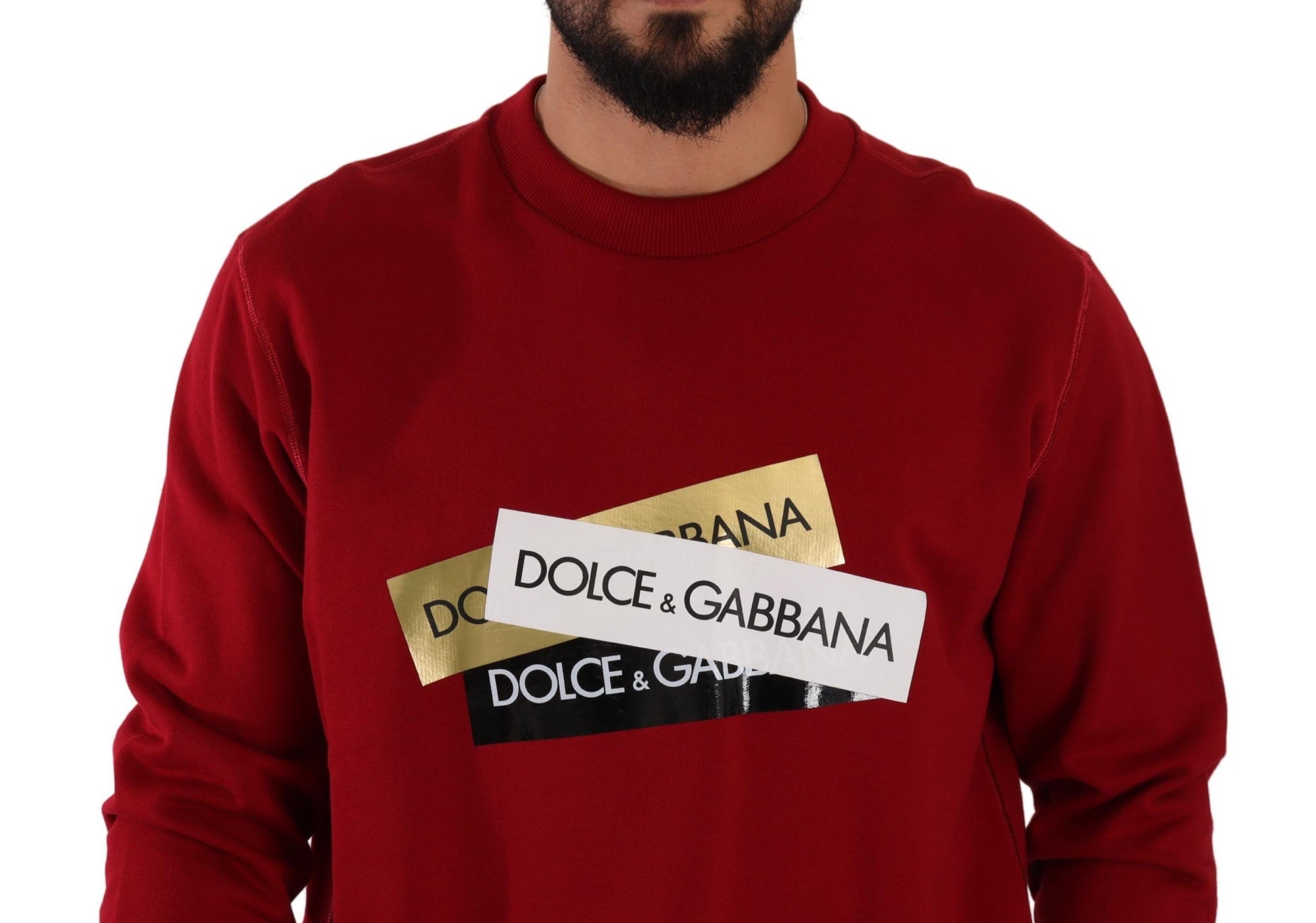 Exude elegance with this absolutely stunning red crewneck pullover sweater from the fashion powerhouse, Dolce & Gabbana. Perfect for any occasion that calls for a touch of sophistication and style. Crafted in Italy, its 100% cotton material promises uncompromised comfort alongside the luxurious feel. Featuring the distinct Dolce & Gabbana logo detail, this sweater is a statement of fashion excellence.