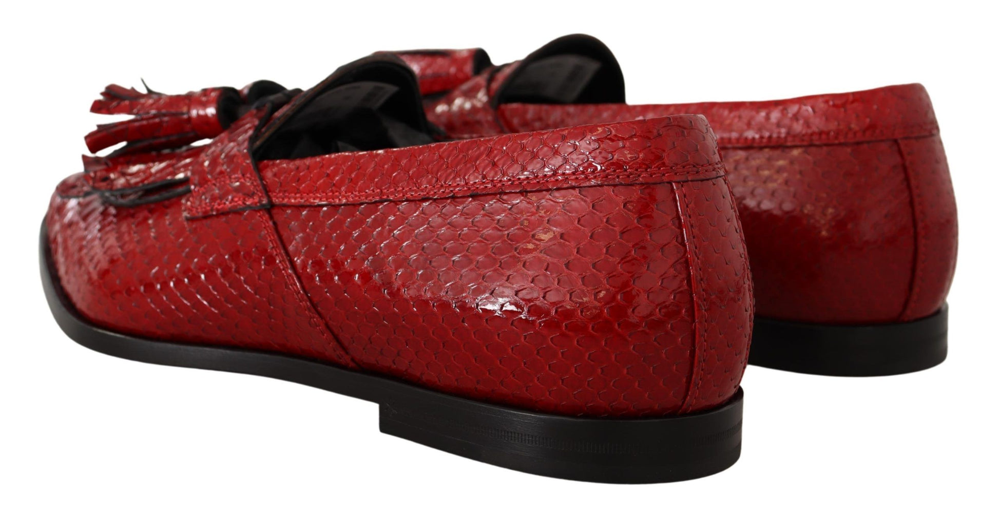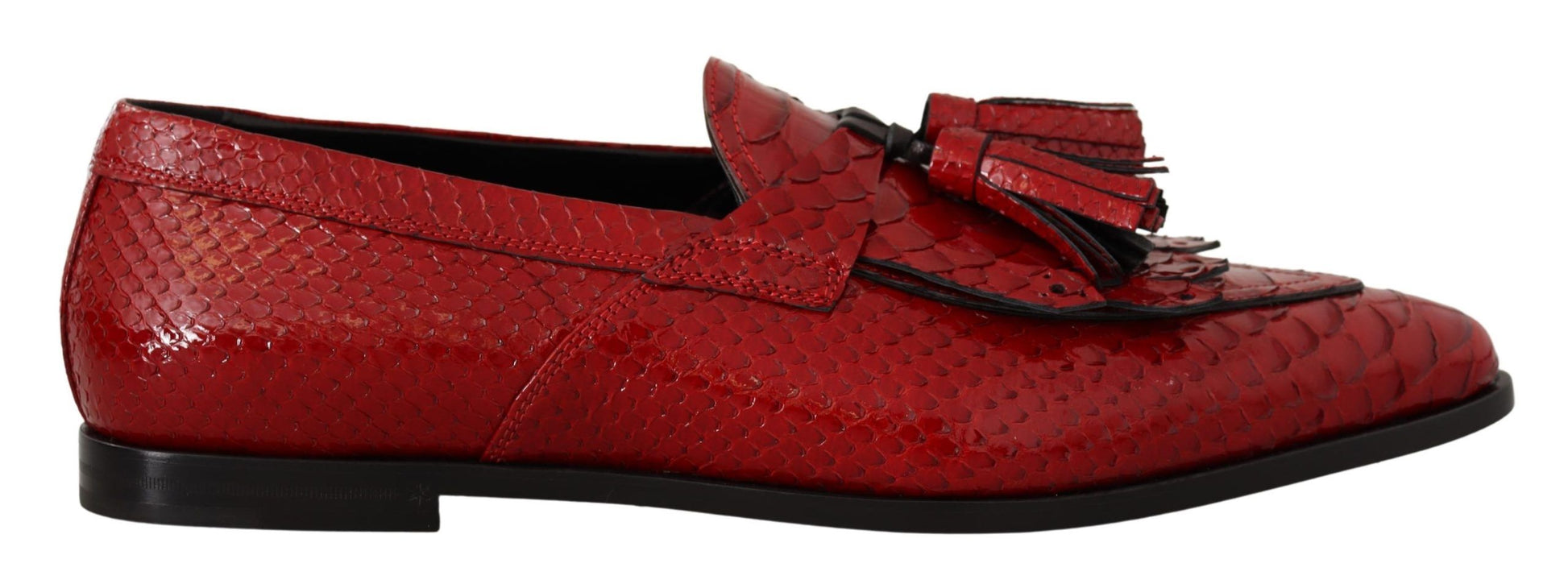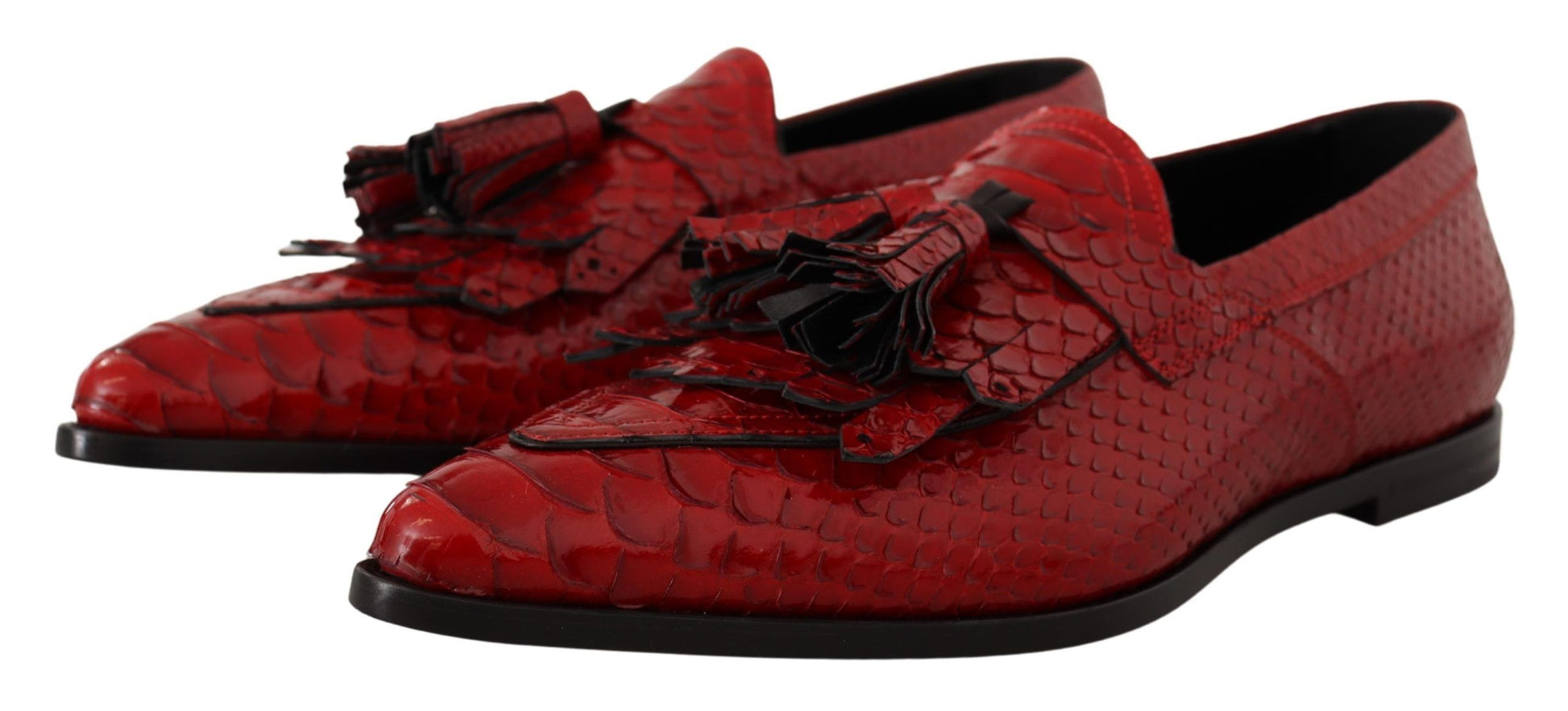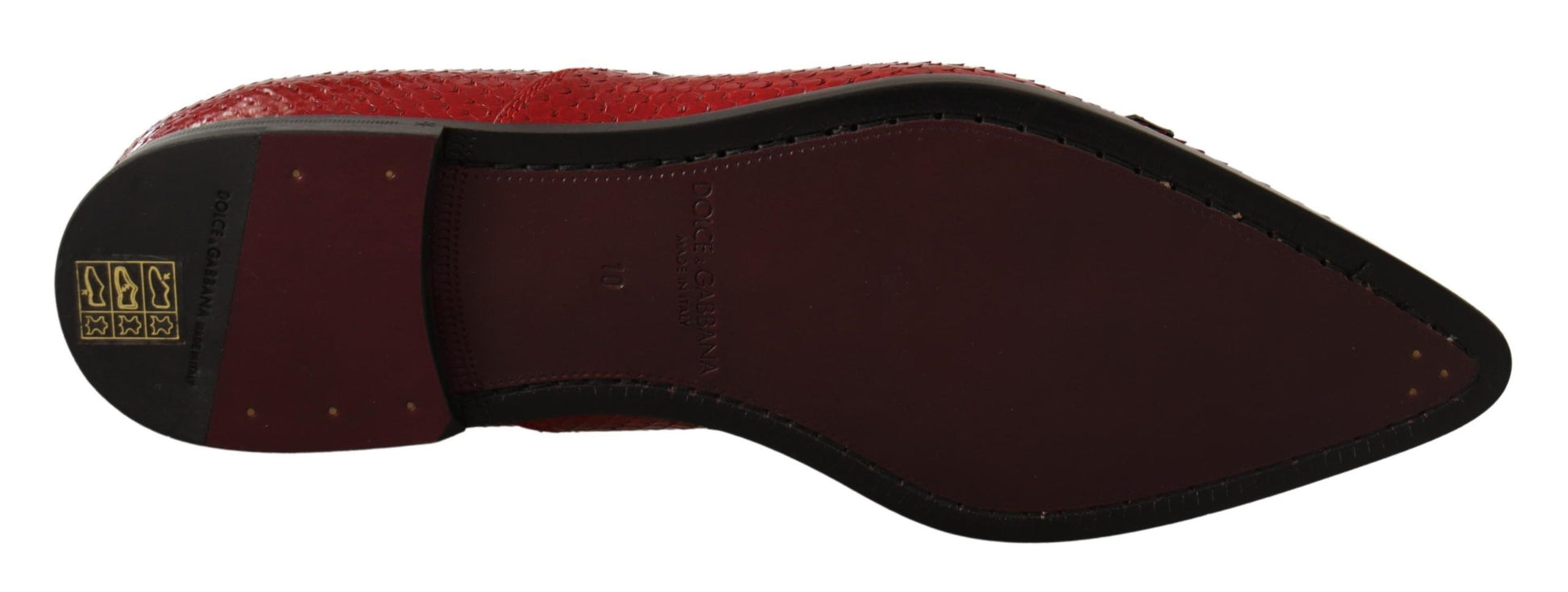 Indulge in the opulence of high craftsmanship with these striking formal slide shoes, presented by the prestigious Dolce & Gabbana. These brand new, tagged masterpieces shine in a vibrant red and are crafted from the finest exotic leather, perfect for those who appreciate luxury and style. Designed in Italy, they boast a classic yet bold look, complete with the iconic logo detail and a sleek leather outer sole that promises elegance with every step.