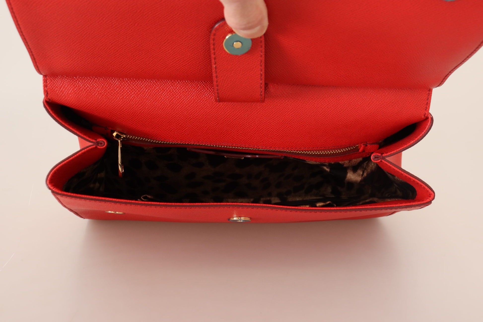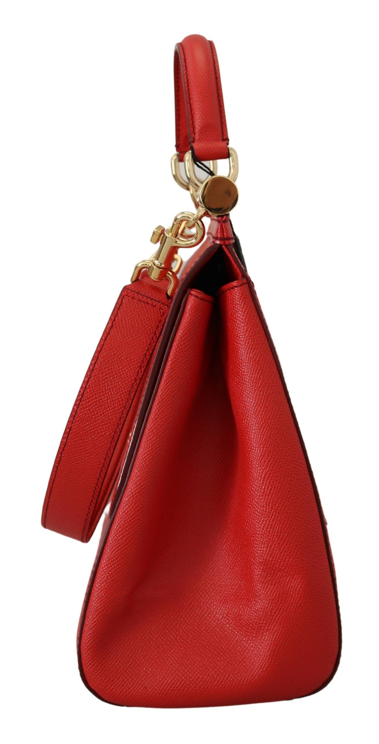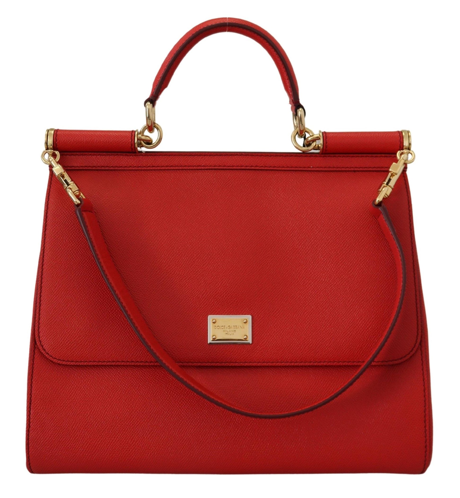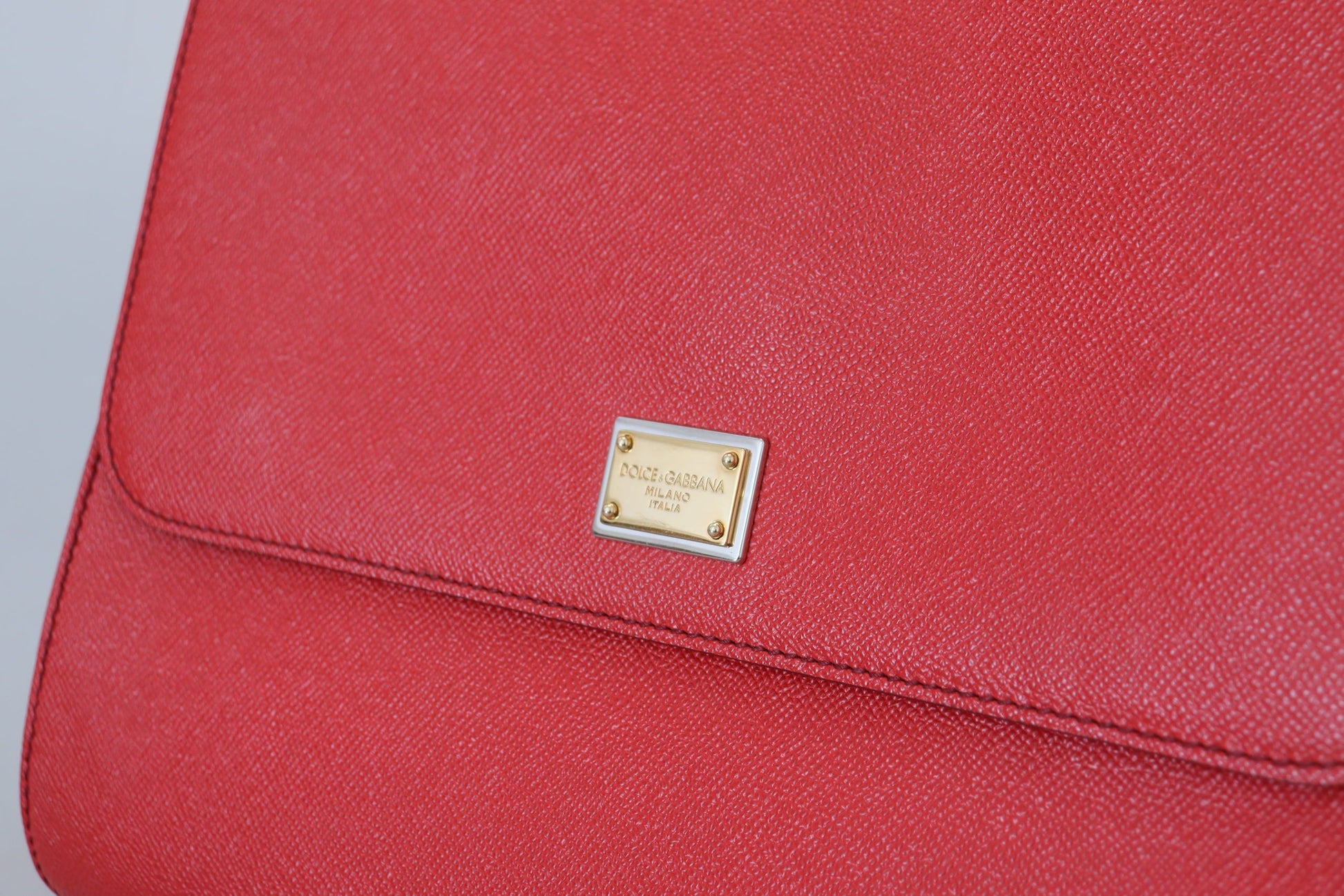 Indulge in the epitome of Italian luxury with the Dolce & Gabbana Sicily Bag. Crafted from the finest leather in a ravishing red hue and accentuated with opulent gold metal detailing, this bag is a true testament to impeccable craftsmanship and timeless style.