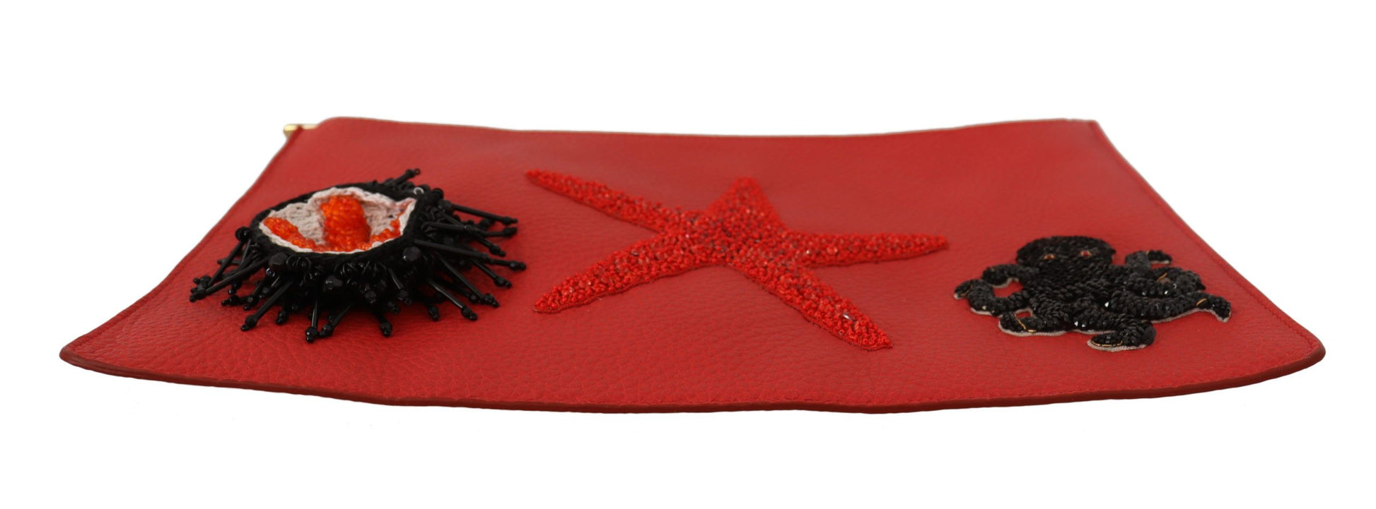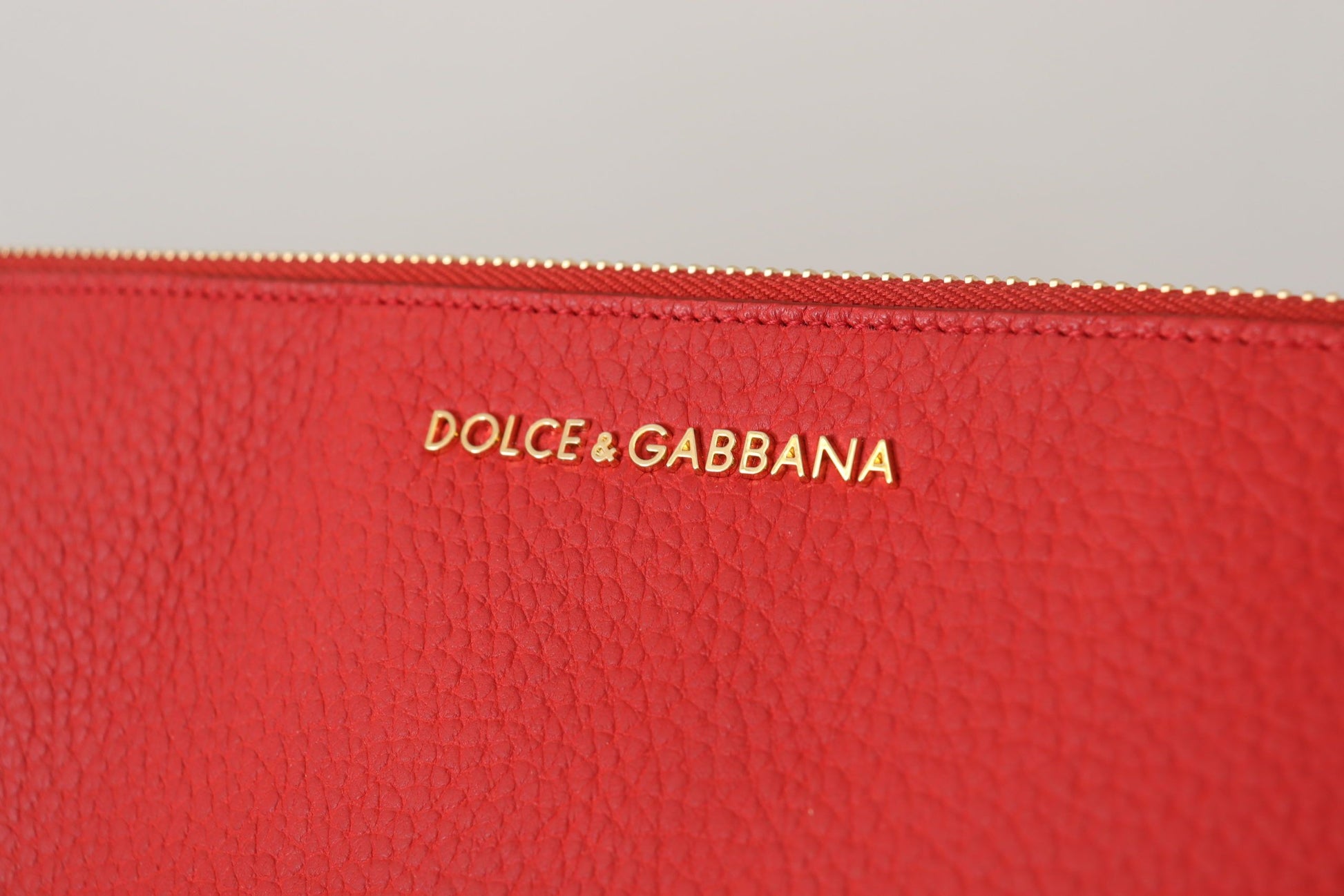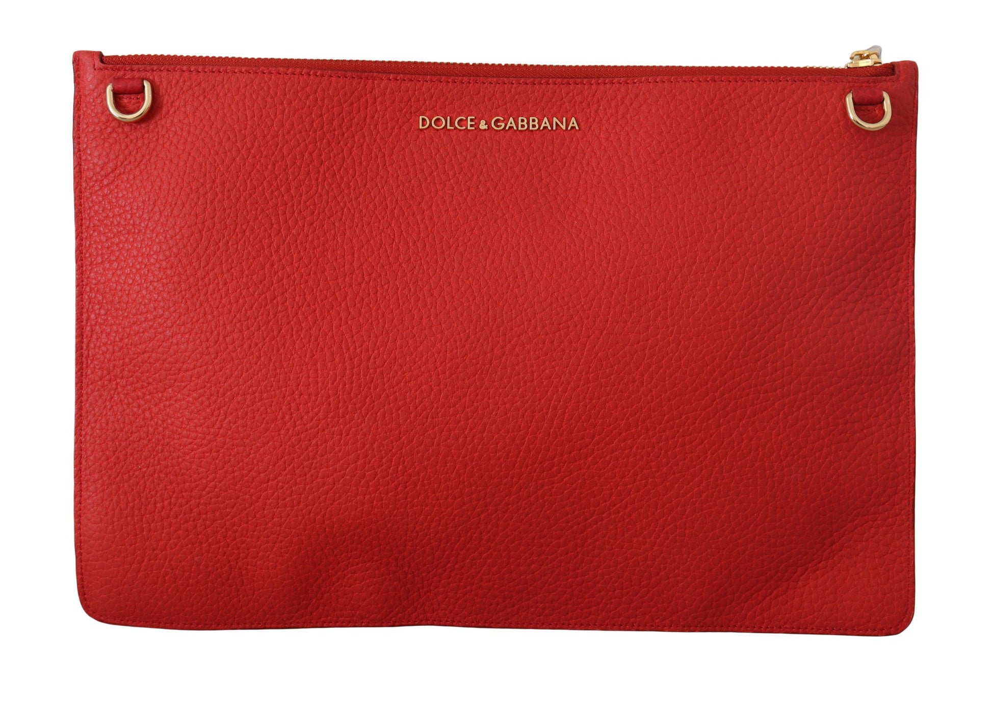 Indulge in the epitome of glamour with this Dolce & Gabbana clutch, a stunning accessory that’s bound to turn heads. Perfect for both evening affairs and upscale casual outings, this red leather clutch features dazzling gold metal detailing. The secure zipper closure protects your essentials, while the luxurious logo details radiate high-end allure. Crafted with passion in Italy, this clutch’s ideal size of 30cm x 20cm makes it a versatile statement piece for your collection.