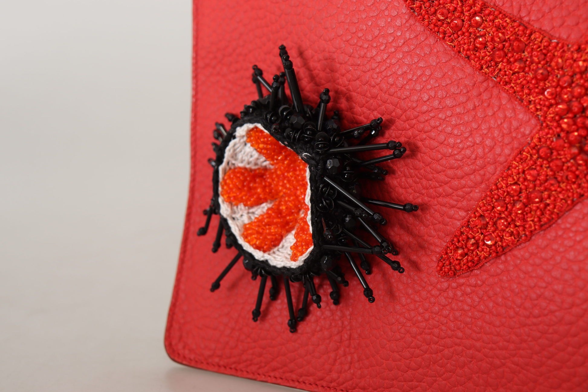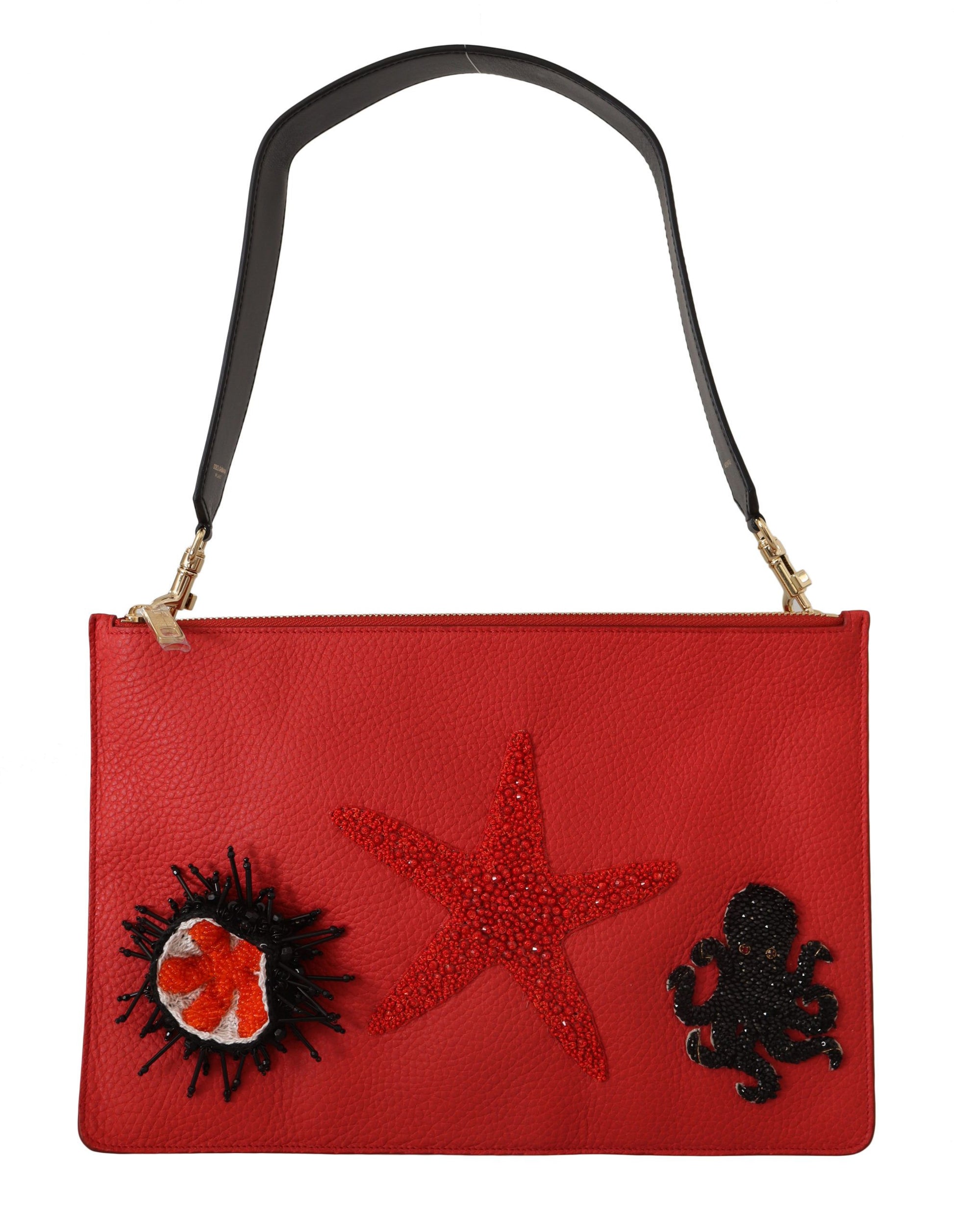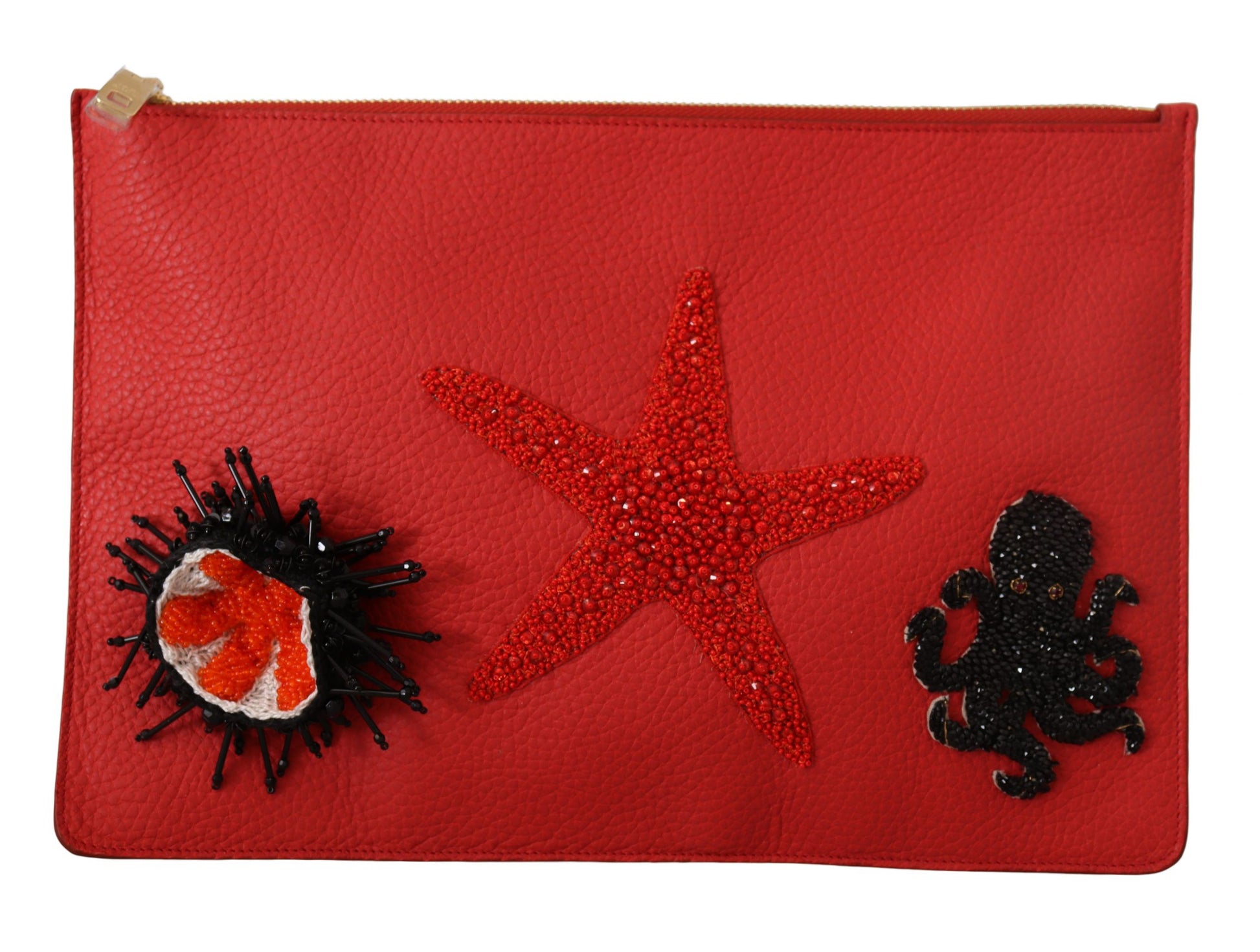 Indulge in the epitome of glamour with this Dolce & Gabbana clutch, a stunning accessory that’s bound to turn heads. Perfect for both evening affairs and upscale casual outings, this red leather clutch features dazzling gold metal detailing. The secure zipper closure protects your essentials, while the luxurious logo details radiate high-end allure. Crafted with passion in Italy, this clutch’s ideal size of 30cm x 20cm makes it a versatile statement piece for your collection.