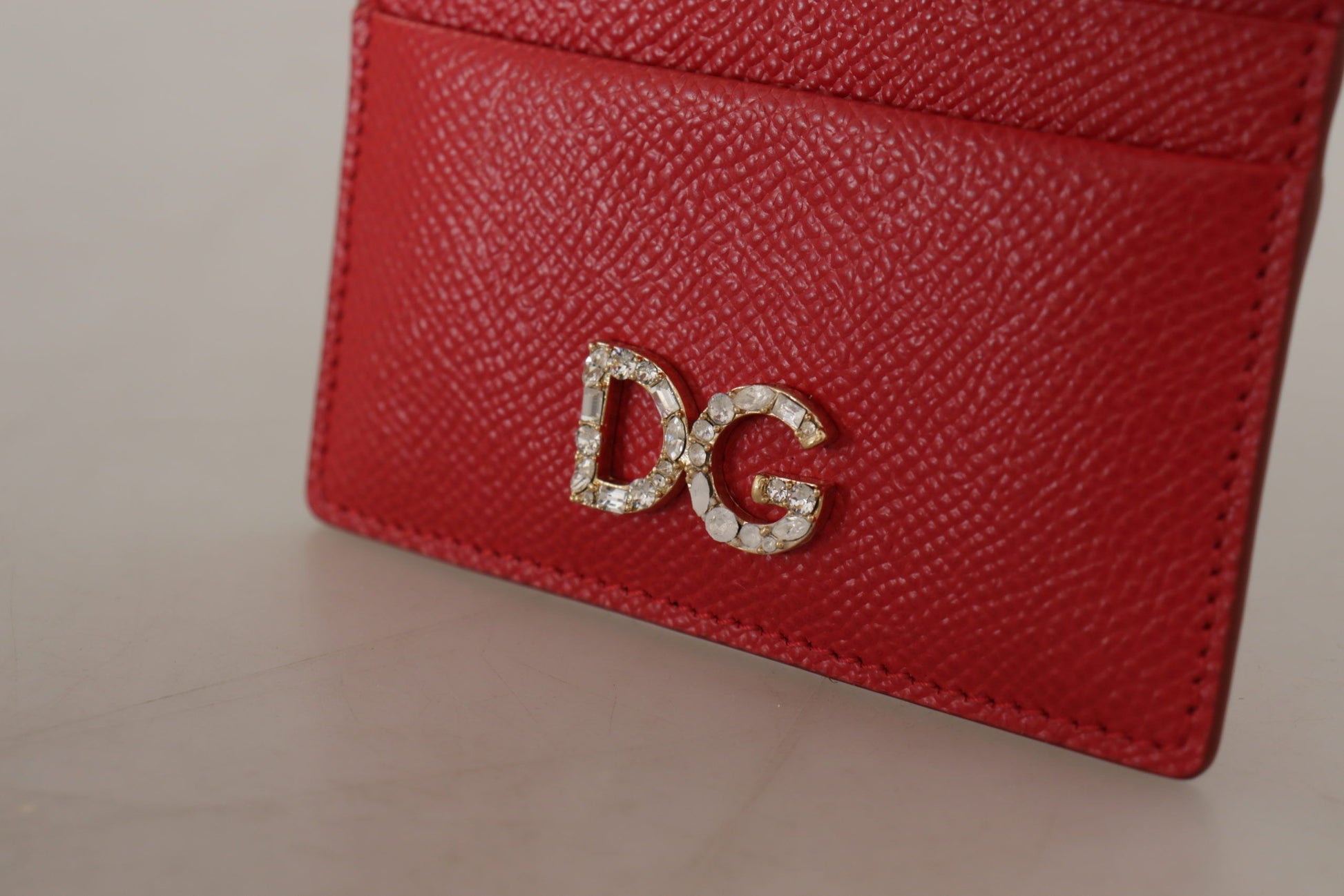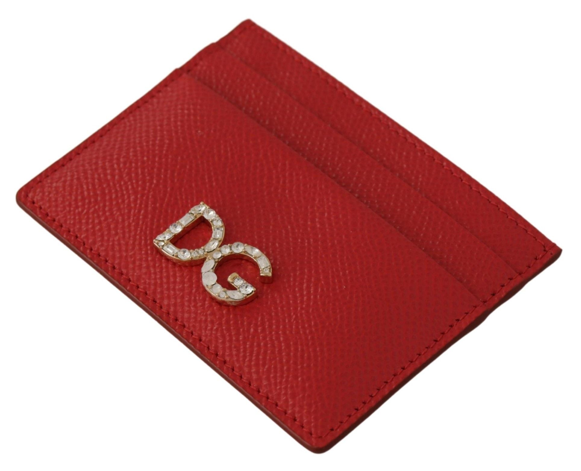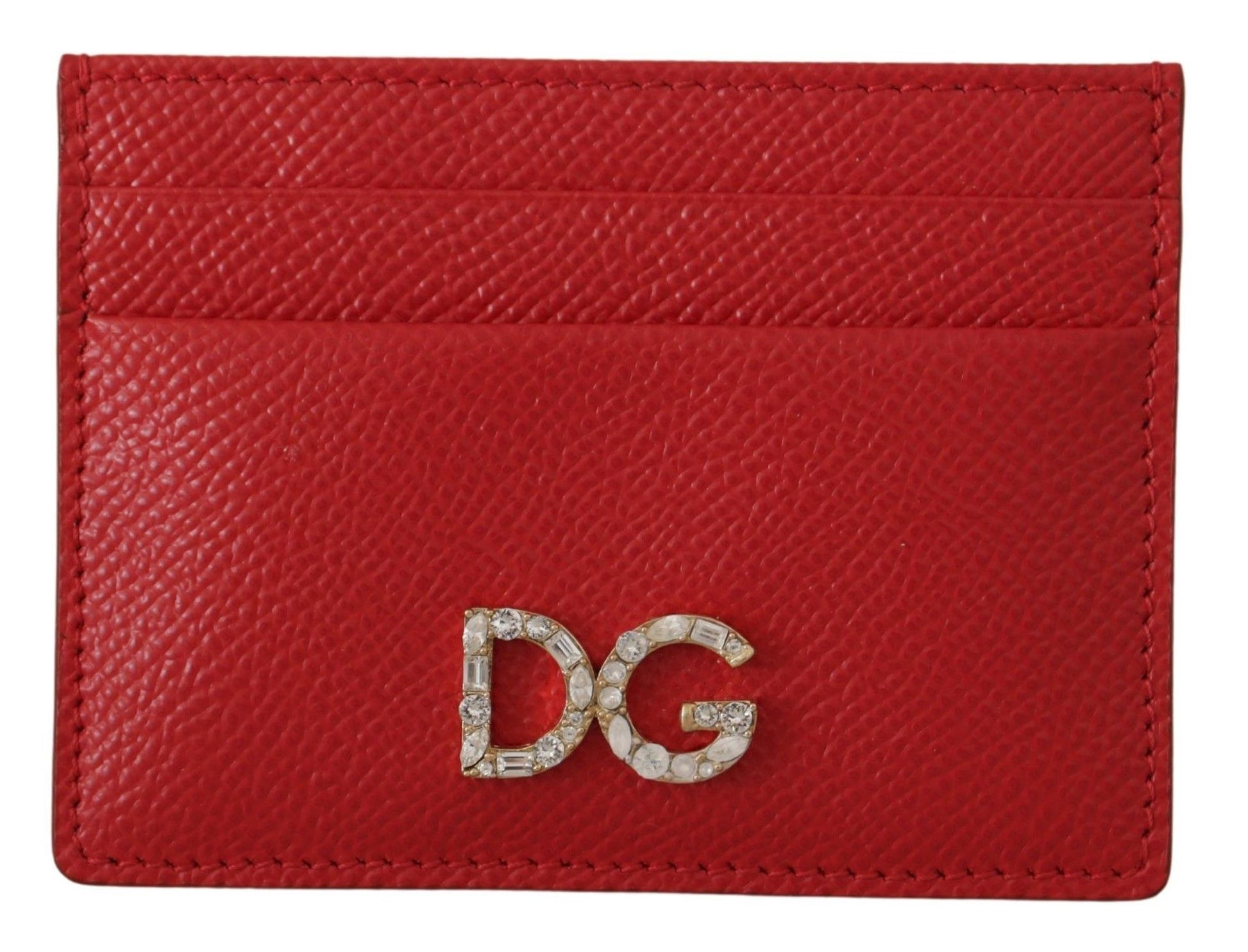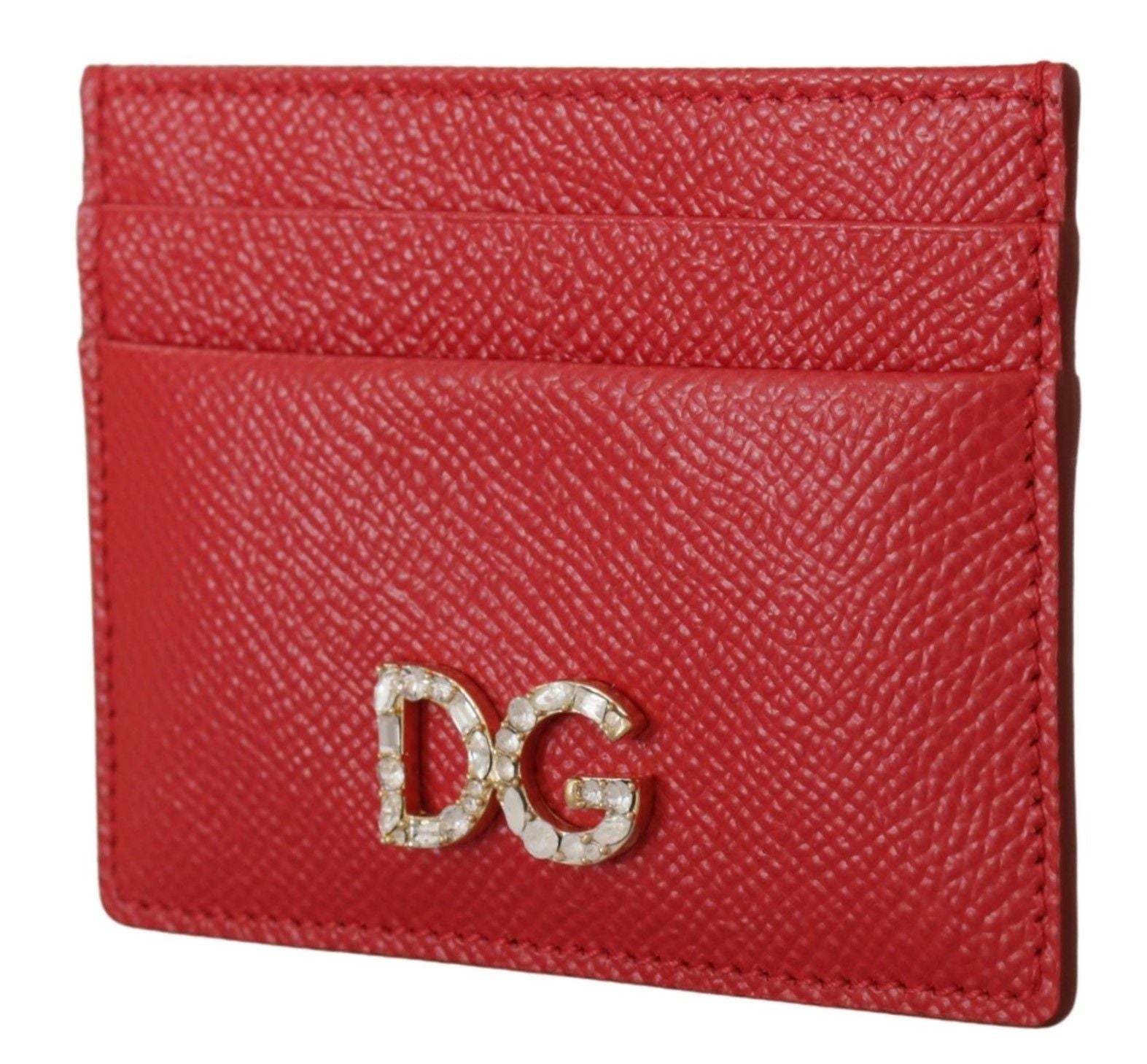 Indulge in the luxurious elegance of a stunning cardholder wallet by Dolce & Gabbana. Made from the finest 100% leather in a rich red hue, this accessory is not just a practical necessity, but also a statement of style. Adorned with a clear DG crystal logo, it brings a touch of glamour to your everyday essentials. Crafted in Italy, this wallet promises both sophistication and quality. Its compact size, measuring 10cm x 7.5cm, makes it perfect to slip into any bag or pocket, keeping your cards organized in the most fashionable way.