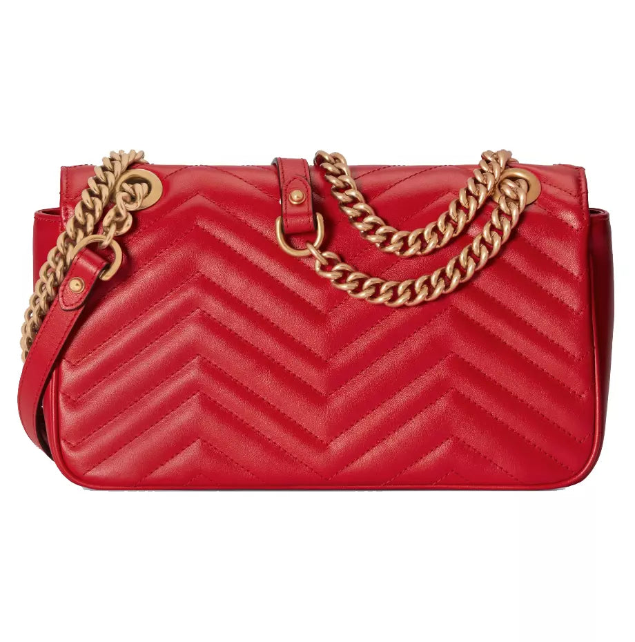 Discover the epitome of elegance with our matelassé leather shoulder bag, an exquisite accessory that promises to elevate your style. The luxurious red calfskin leather is crafted into a refined chevron motif, complete with a charming heart detail on the back. This small shoulder bag features a sophisticated chain with a flap closure, culminating in the iconic Double G emblem. Experience versatility with the adaptable sliding chain strap, offering the freedom to wear it as a chic shoulder bag or as a classic handbag. A statement piece made in Italy, it boasts dimensions of L 26 cm x H 15 cm x W 7 cm, perfect for your essential items.