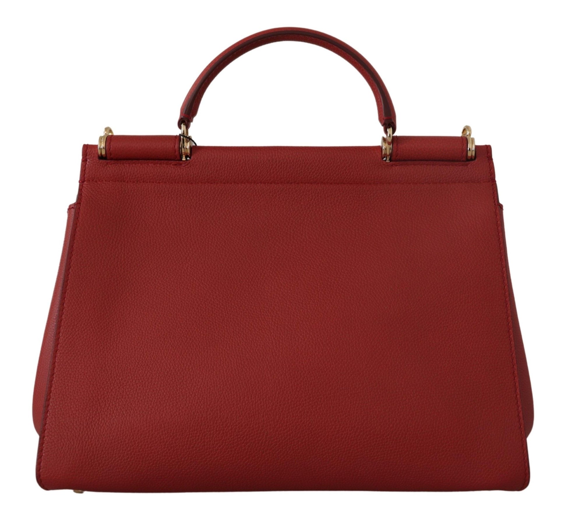 Indulge in Italian luxury with this stunning Dolce & Gabbana Sicily shoulder bag. Crafted from the finest leather in a vibrant red hue, complemented by eye-catching gold metal details, it’s an exquisite piece that adds a touch of glamour to any outfit. This large-sized bag boasts a convenient magnetic flap closure, an elegant purple leather lining, and comes with both a handle and a detachable shoulder strap for versatile styling options. It’s more than just an accessory; it’s a statement of elegance and class, perfect for the fashion-forward woman.