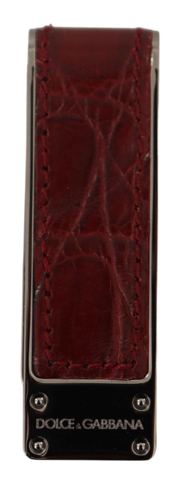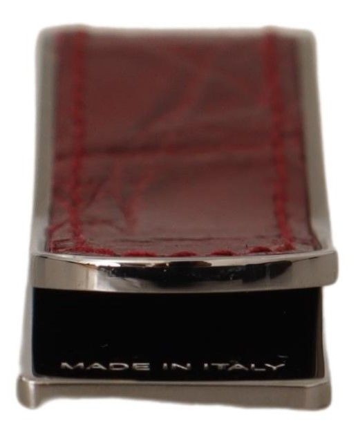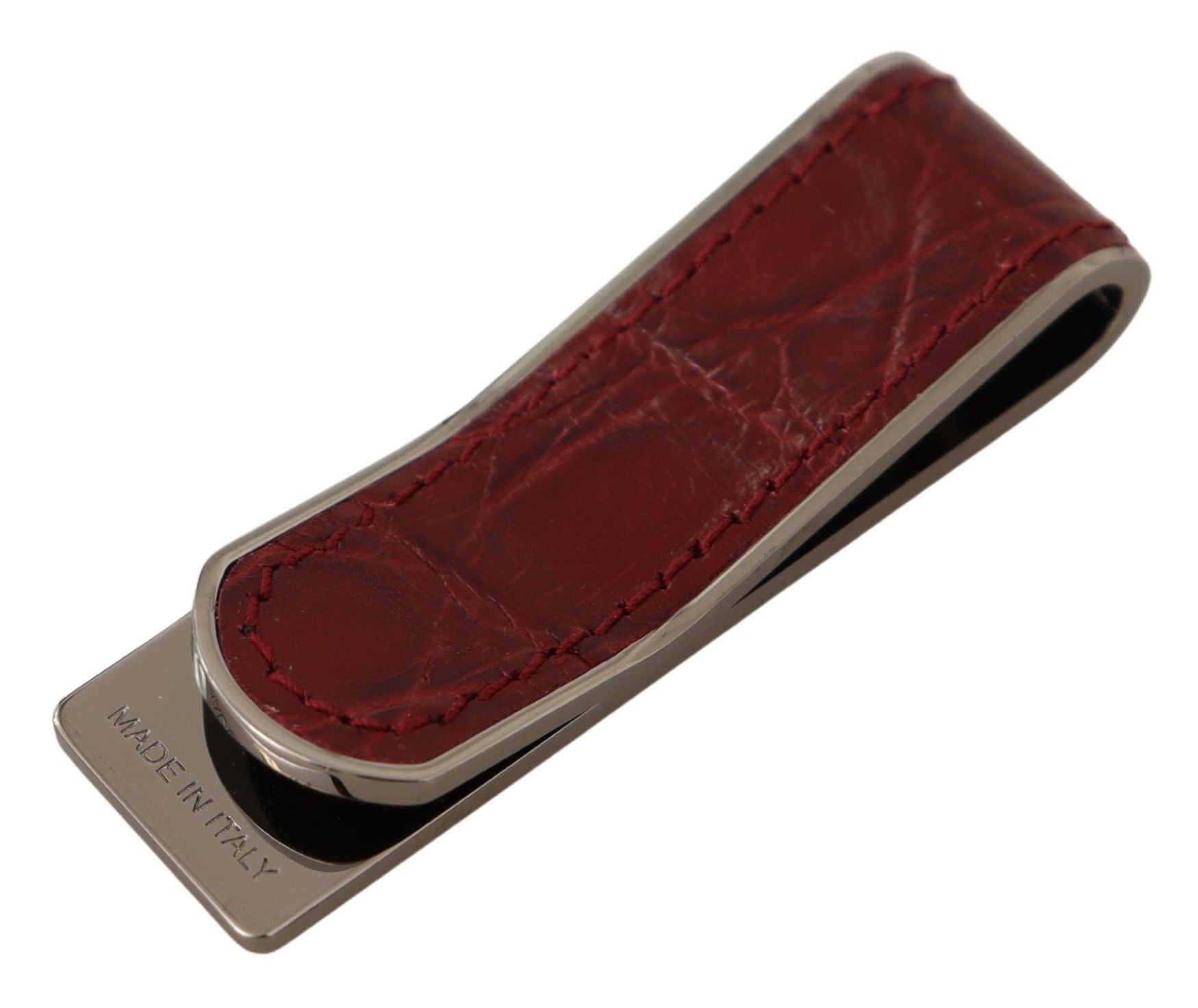 Indulge in the epitome of sophistication with this striking money clip from Dolce & Gabbana . Crafted with the perfect blend of brass and caiman skin leather, this exquisite accessory is not only a statement of luxury but also a functional piece to secure your banknotes in style. Presented in a vibrant red color, accompanied by subtle logo details, this money clip is a testament to Italian craftsmanship and is a must-have for the discerning gentleman.