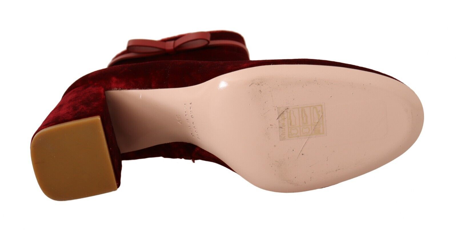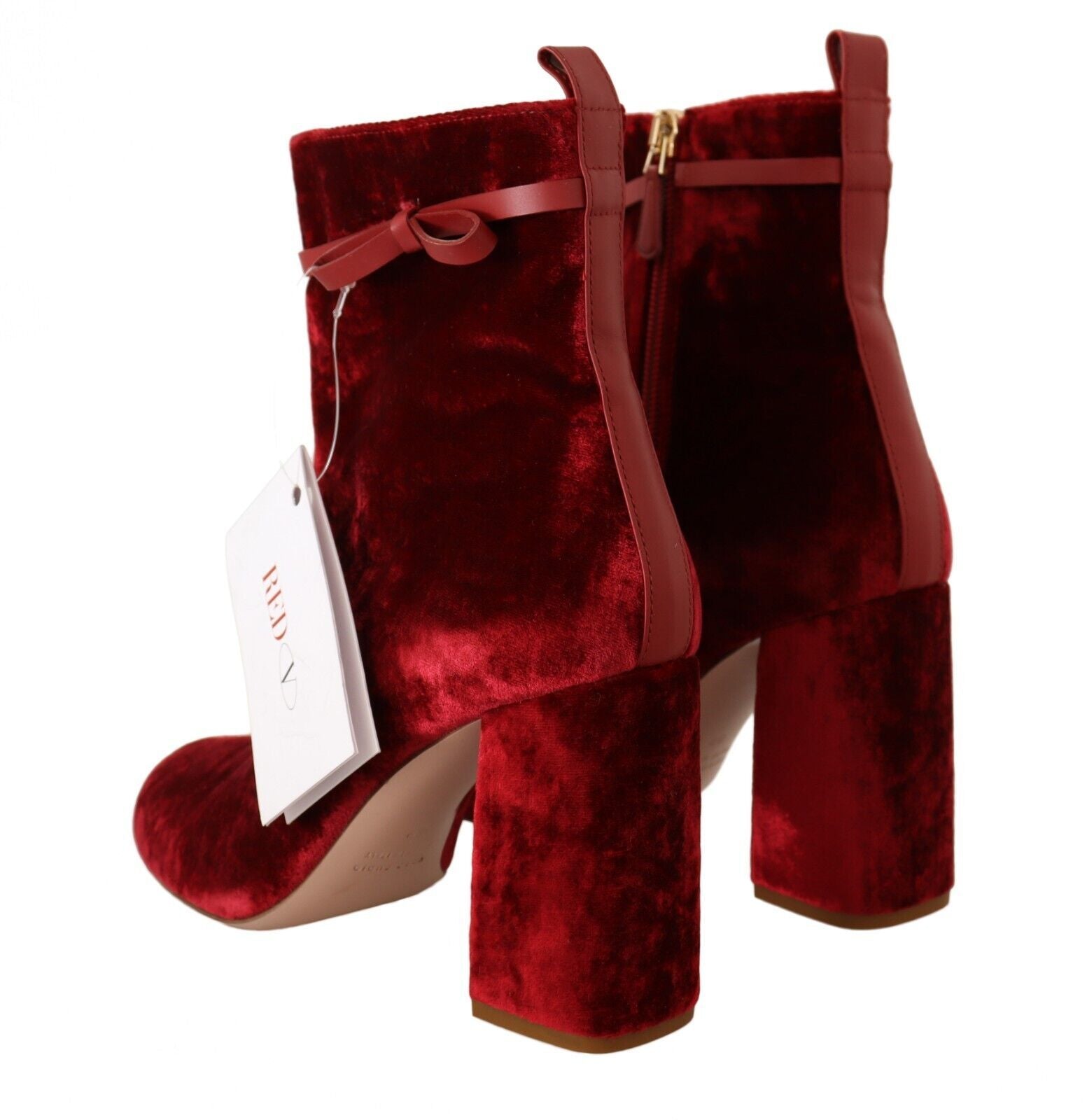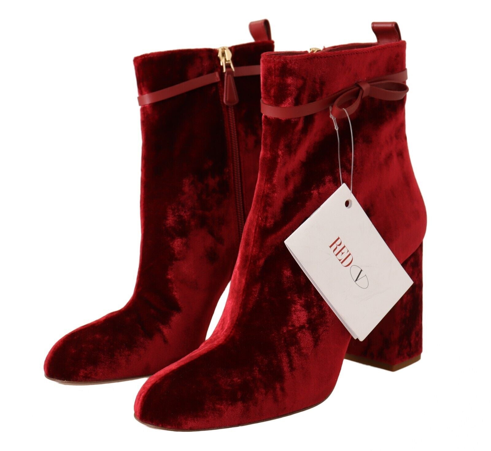 Step out in style with these stunning, brand new RED Valentino ankle boots. An exquisite addition to any wardrobe, these boots emanate elegance with their luxurious red suede leather and refined sole. Complete with the Valentino logo details, these boots are a true statement of fashion and craftsmanship.