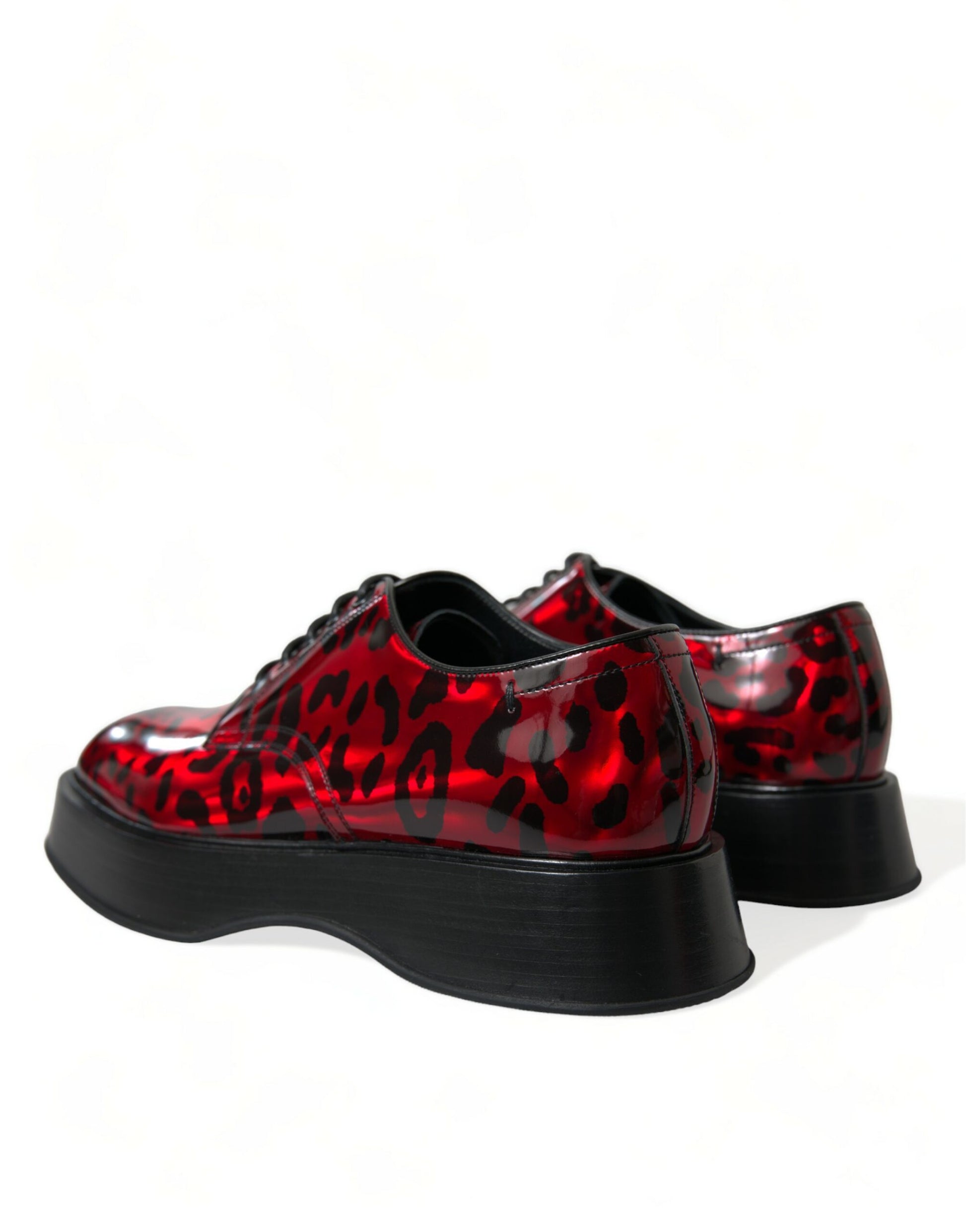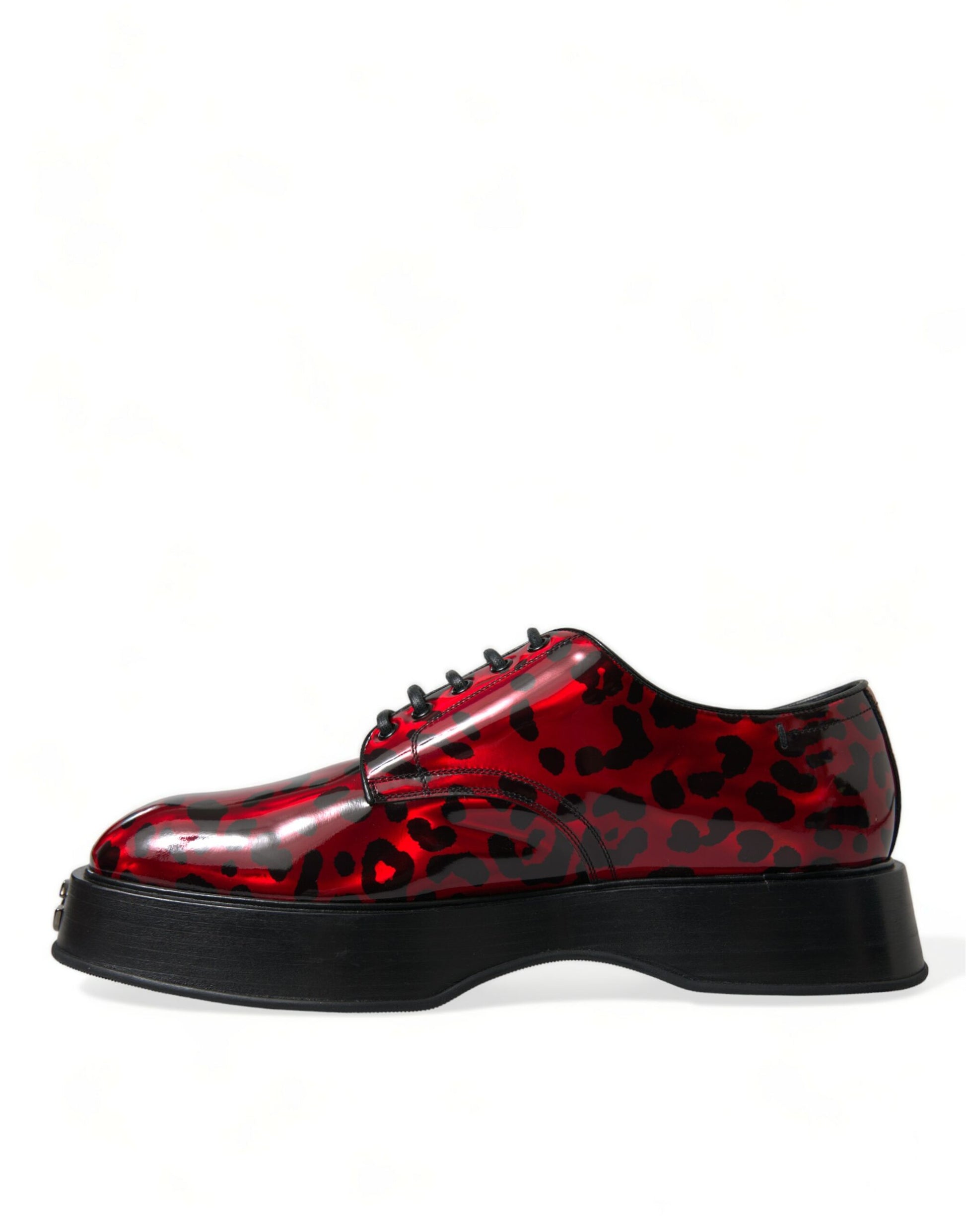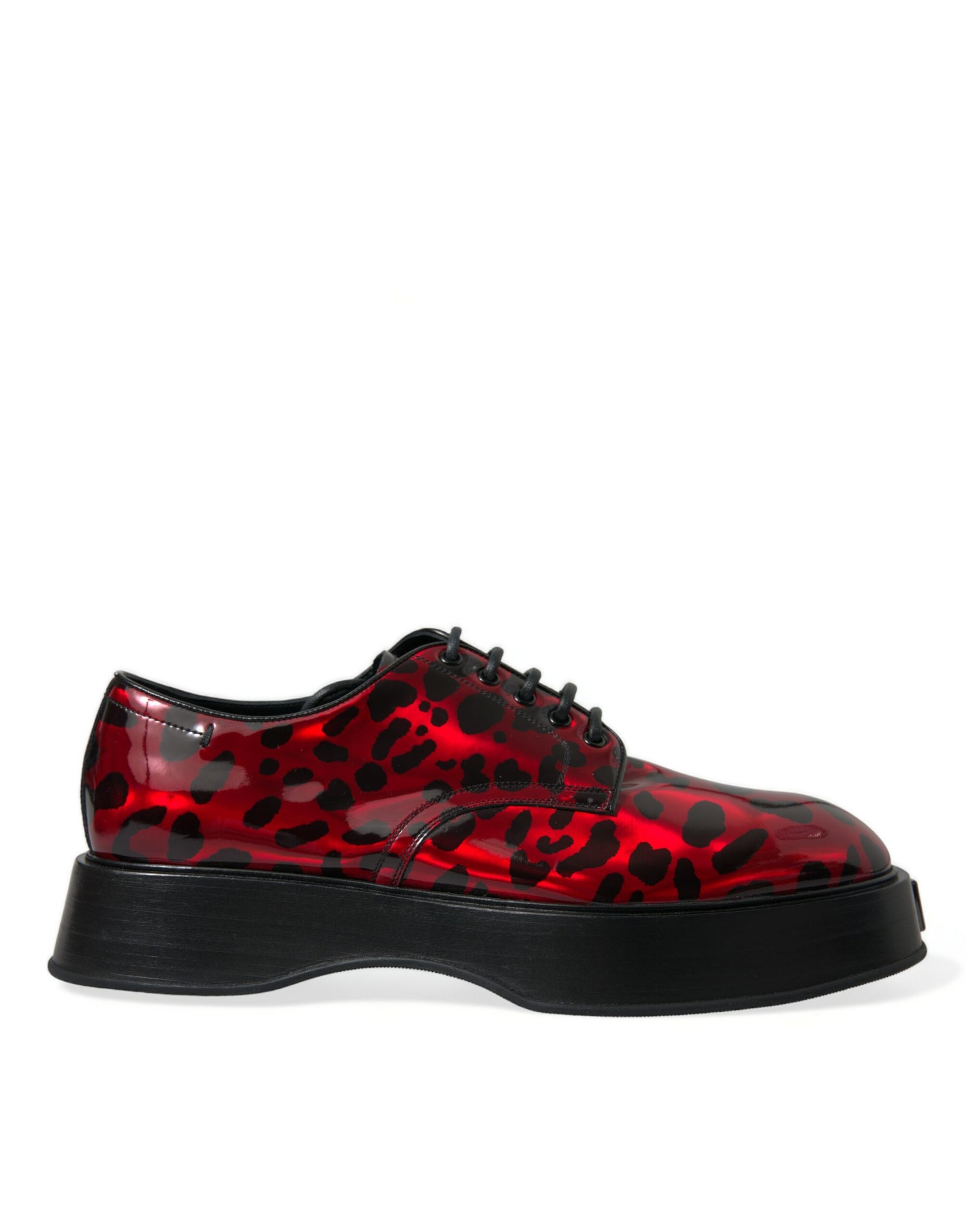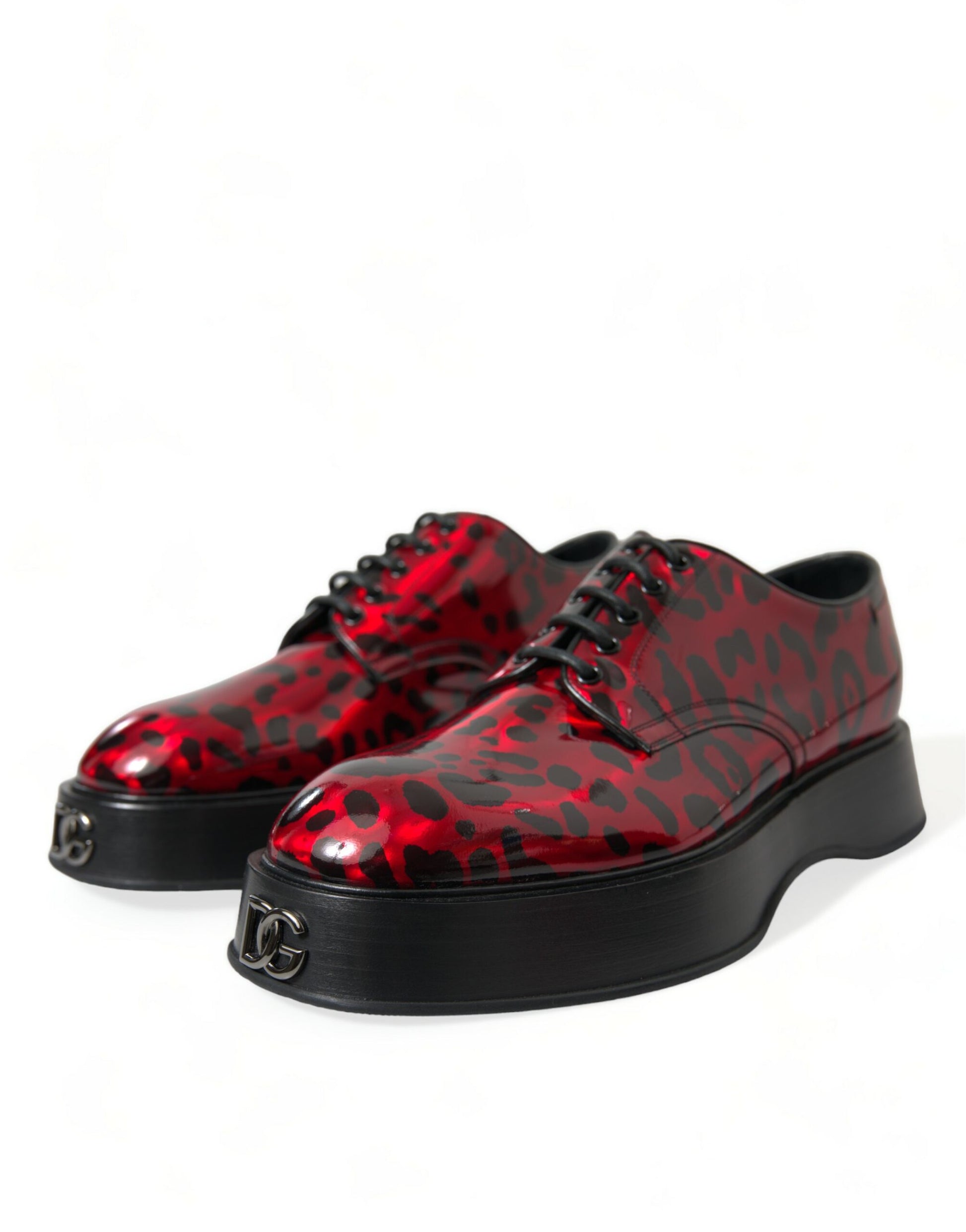 Step out in style with these exquisite Derby dress shoes by Dolce & Gabbana, a must-have for the discerning gentleman. Crafted from premium 100% calfskin leather in a rich red hue, these shoes boast exceptional quality and Italian craftsmanship. The sleek design is completed with a durable rubber sole, lace-up closure, and subtle logo details for a touch of luxury. Ideal for formal occasions or adding a splash of color to your business attire.
