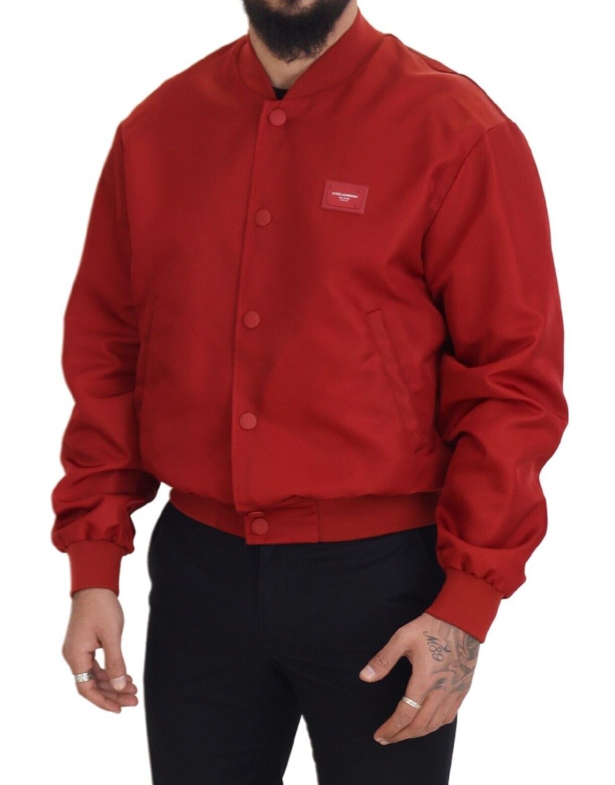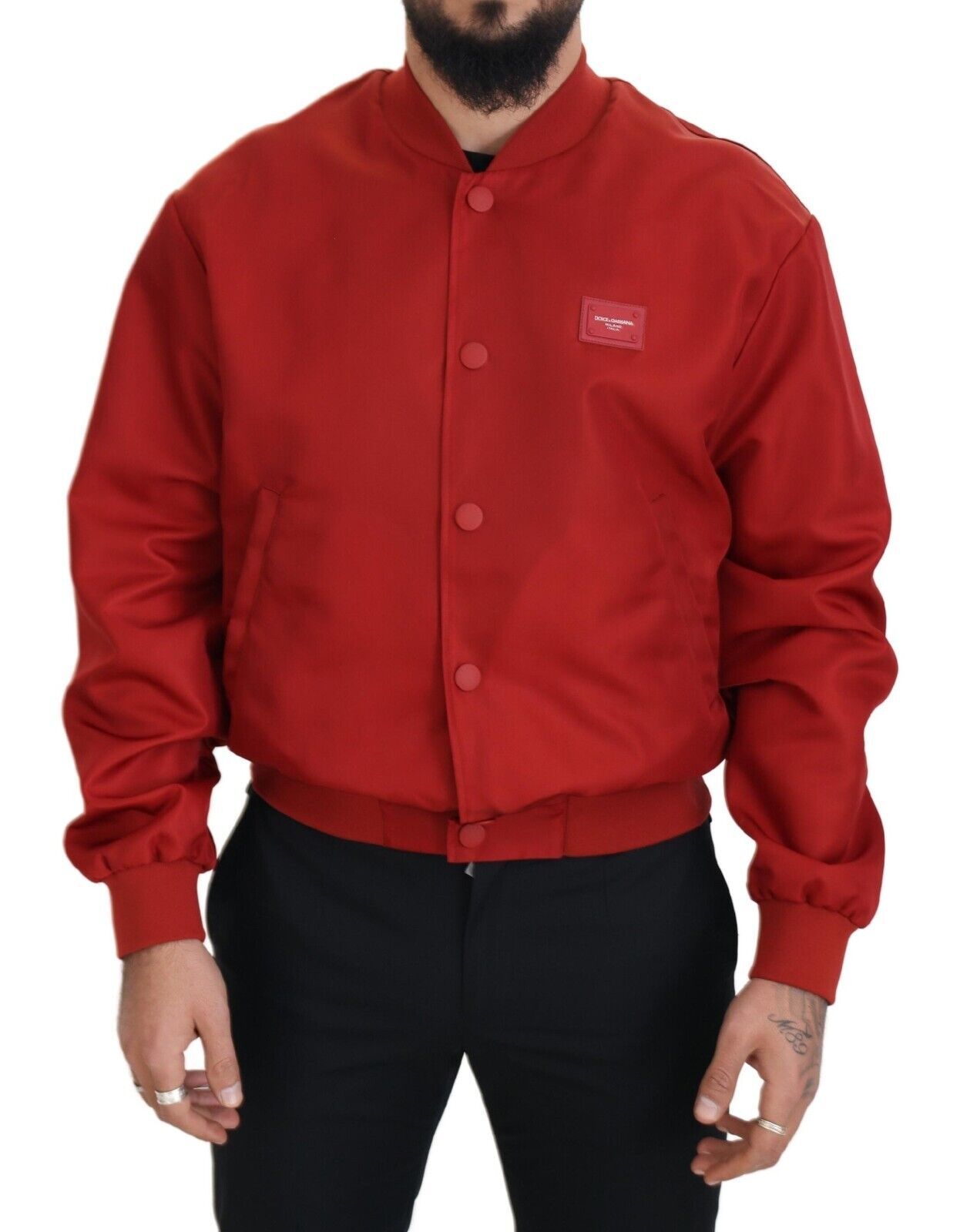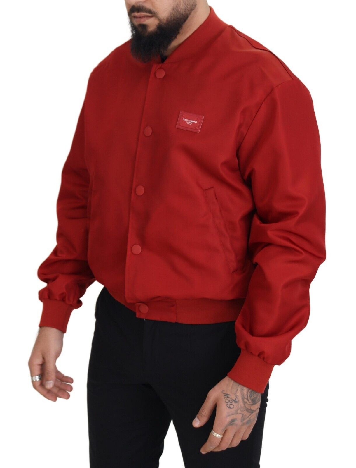 Exude confidence and style with this absolutely stunning, 100% Authentic Dolce & Gabbana bomber jacket. A standout piece with vibrant red color that is sure to catch eyes whether you’re out on the town or attending a special event. It features a sleek full button front fastening and is beautifully adorned with a logo plaque on the chest. The jacket is finished with cozy long sleeves and ribbed edges for a comfortable, yet chic fit. Crafted in Italy with meticulous attention to detail, it’s an epitome of luxury and craftsmanship.