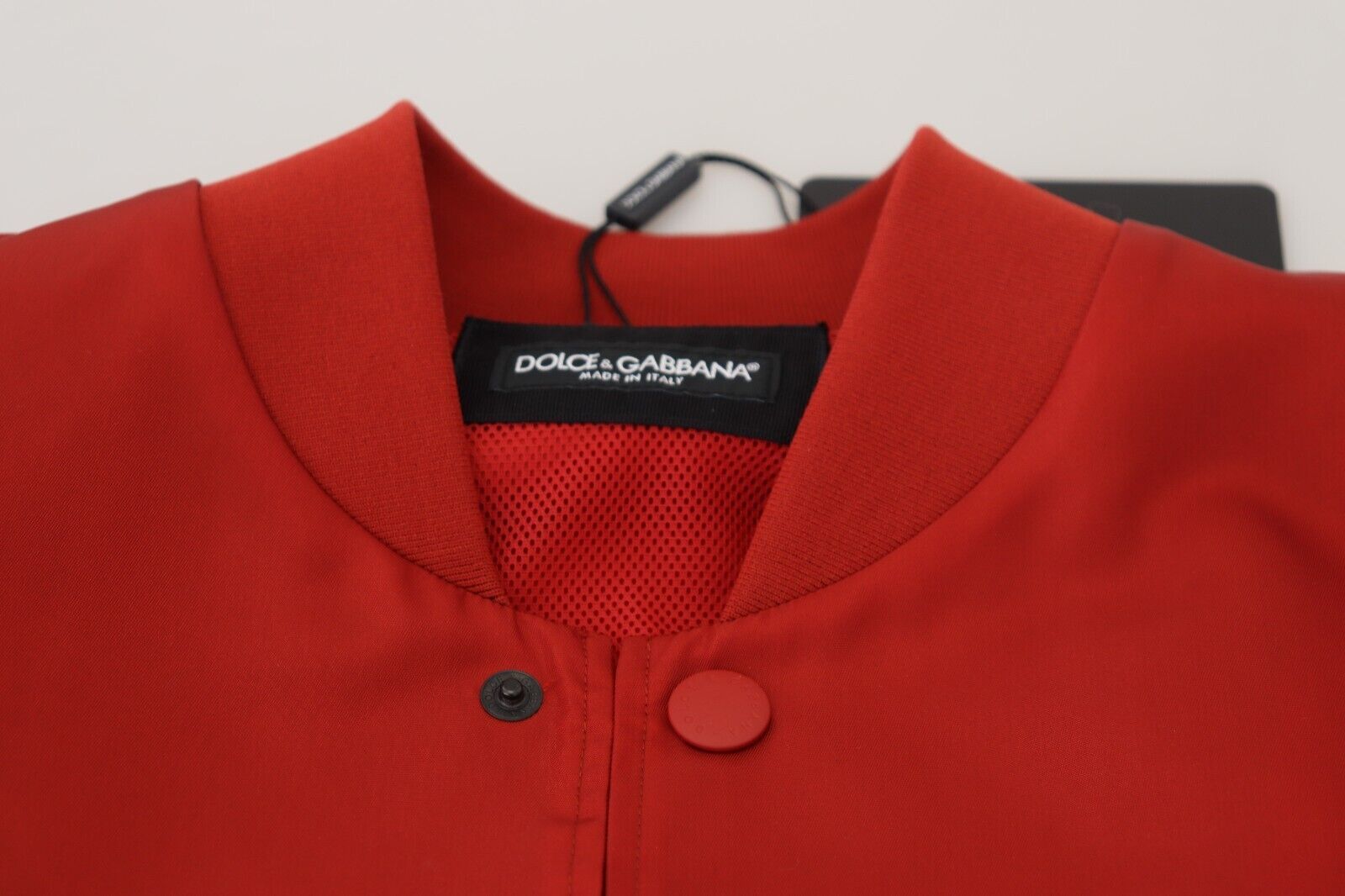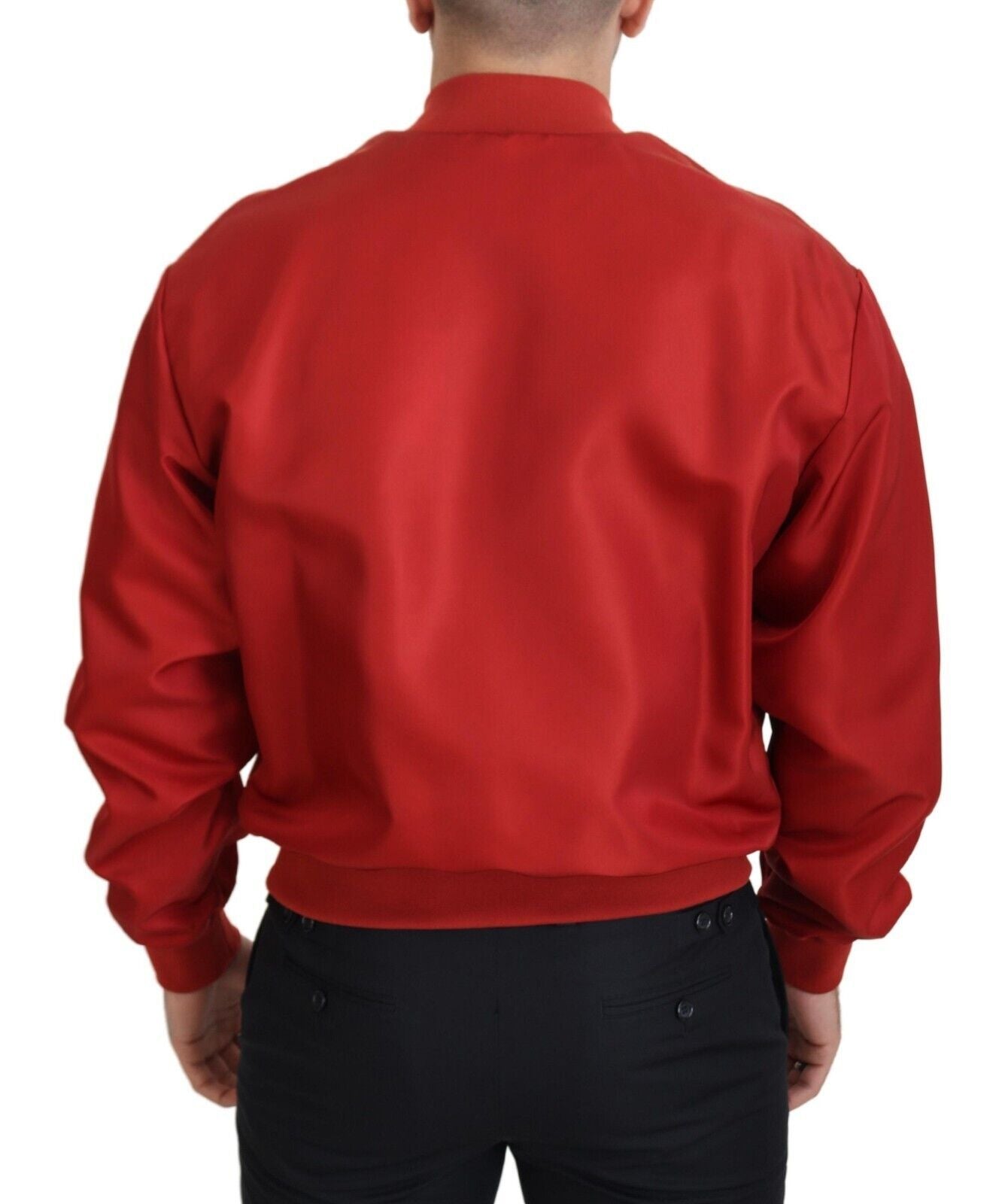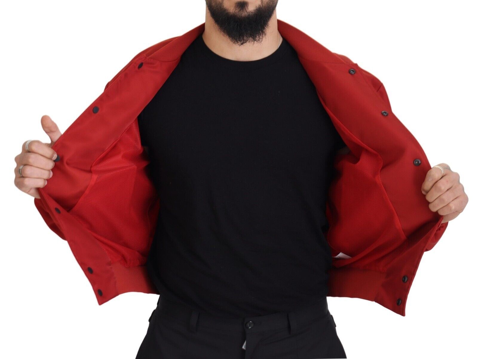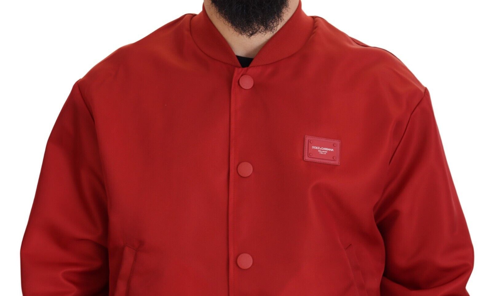 Exude confidence and style with this absolutely stunning, 100% Authentic Dolce & Gabbana bomber jacket. A standout piece with vibrant red color that is sure to catch eyes whether you’re out on the town or attending a special event. It features a sleek full button front fastening and is beautifully adorned with a logo plaque on the chest. The jacket is finished with cozy long sleeves and ribbed edges for a comfortable, yet chic fit. Crafted in Italy with meticulous attention to detail, it’s an epitome of luxury and craftsmanship.