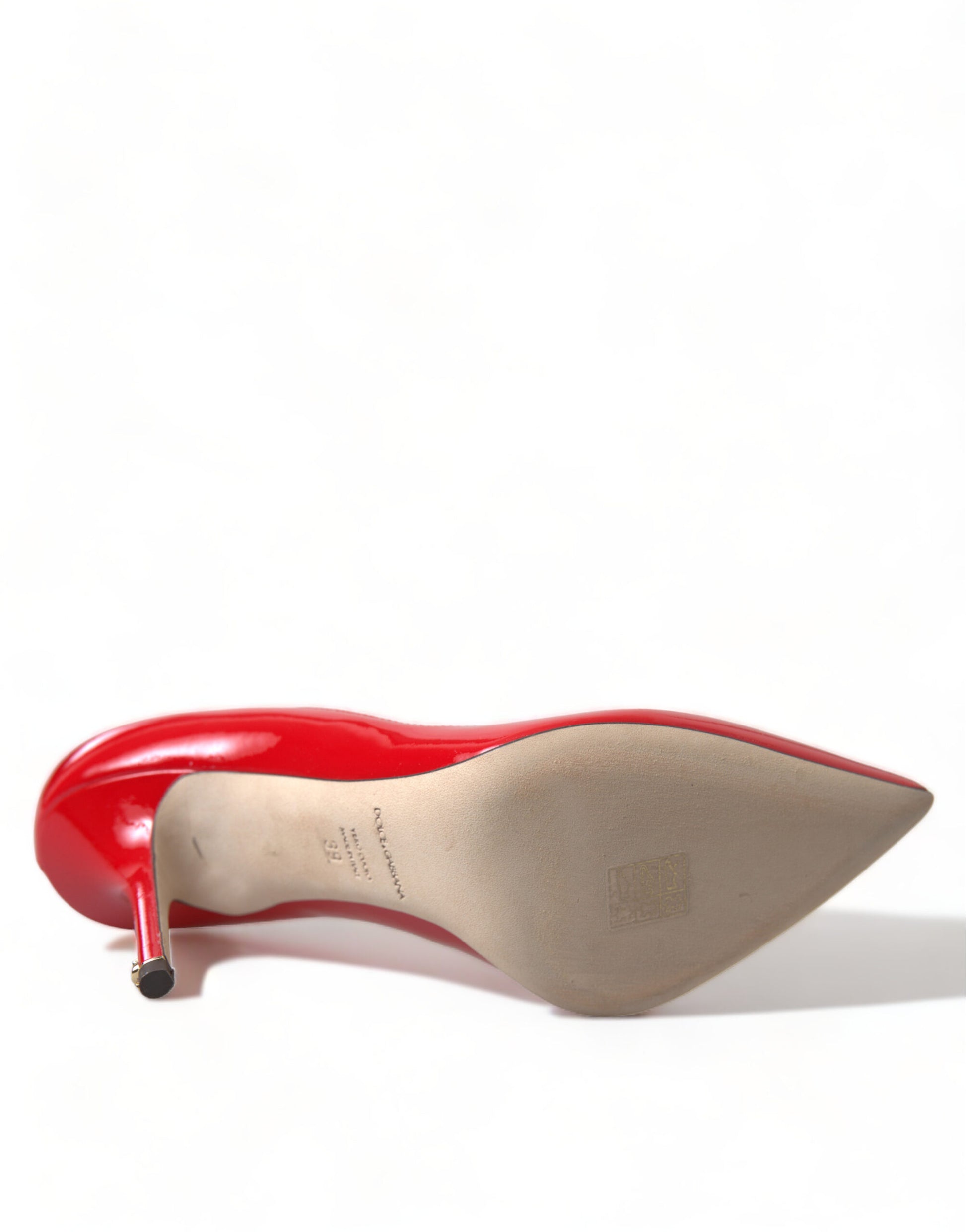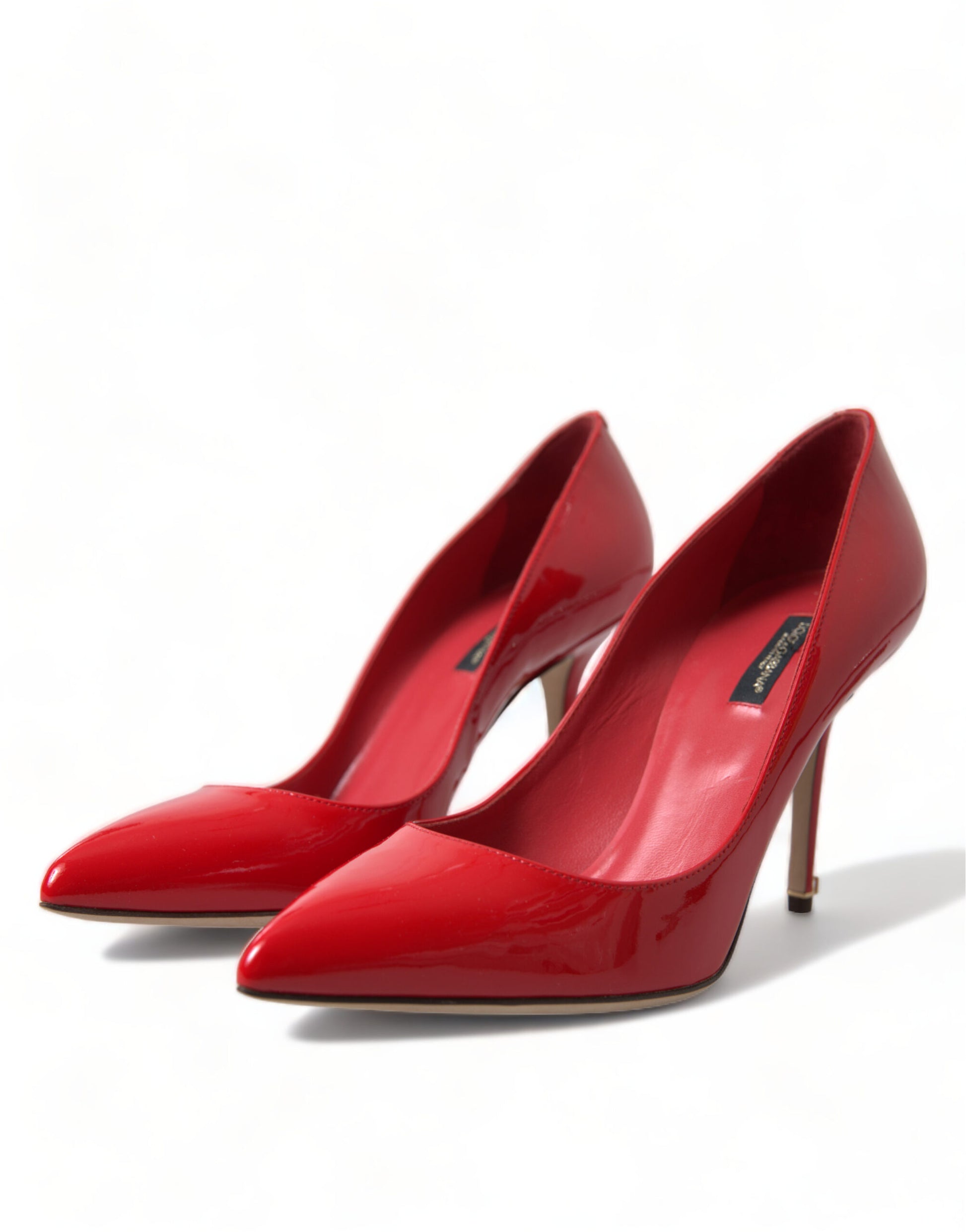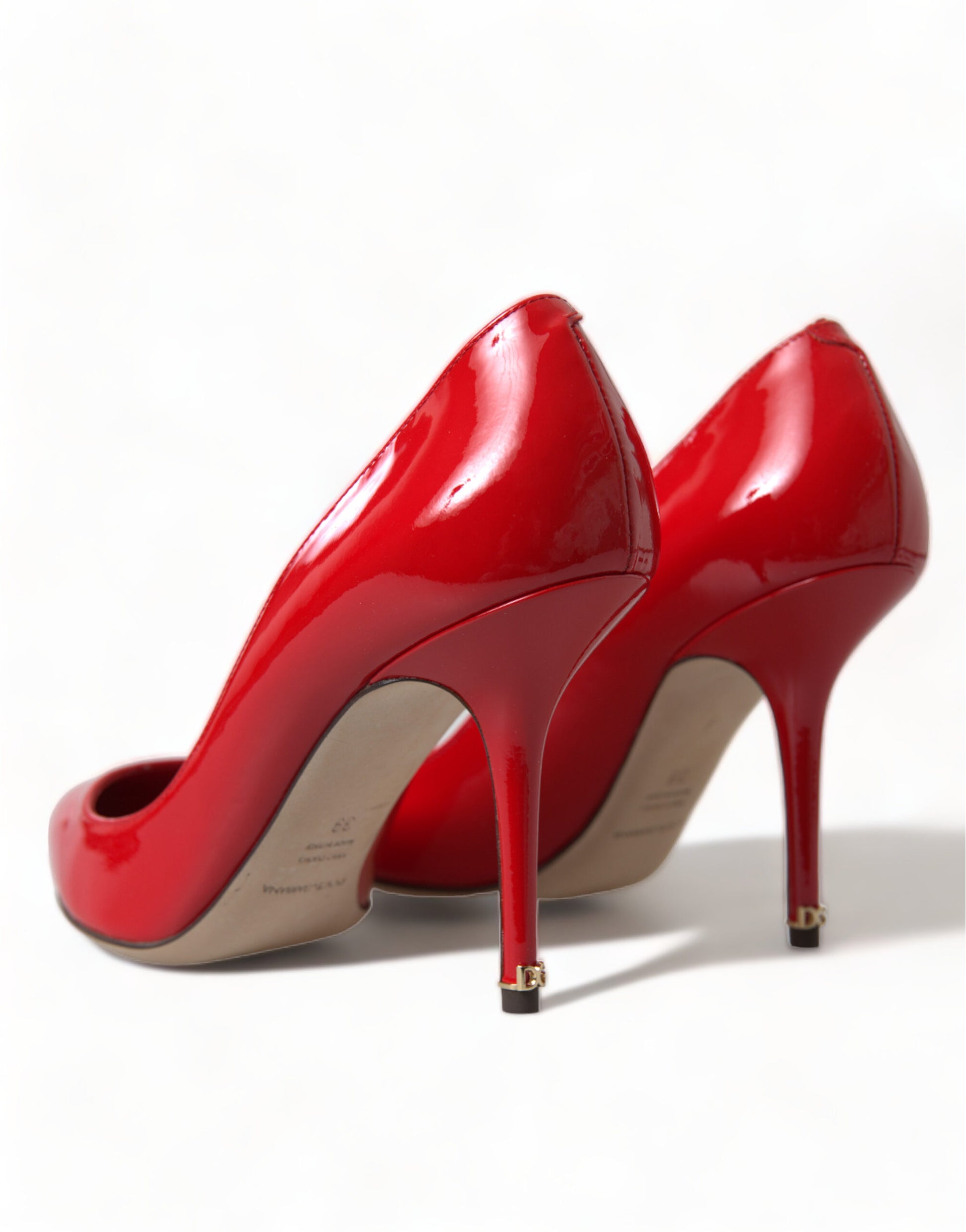 Step into luxury with these stunning, 100% authentic Dolce & Gabbana patent leather heels. Exquisitely crafted in Italy, these pumps epitomize elegance with their vibrant red hue and impeccable leather construction. Designed for the sophisticated woman, these heels feature a leather sole and show-stopping logo details. The comfort and high quality of these heels make them a must-have for any fashion connoisseur.