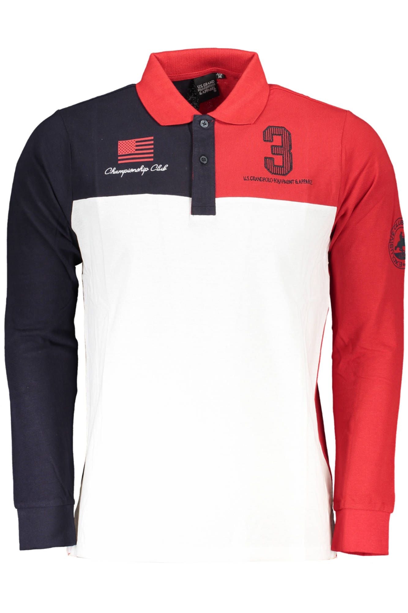 Elevate your wardrobe with the unmistakable class of U.S. Grand Polo. This long-sleeved polo shirt deftly combines style and comfort with its bold red hue, accented by chic contrasting details. The classic two-button placket, vibrant print, and elegant embroidery all culminate in the signature U.S. Grand Polo logo—a mark of true sartorial excellence. Crafted from the finest cotton, this piece promises not just a striking appearance, but an indulgence in luxury meant to last.