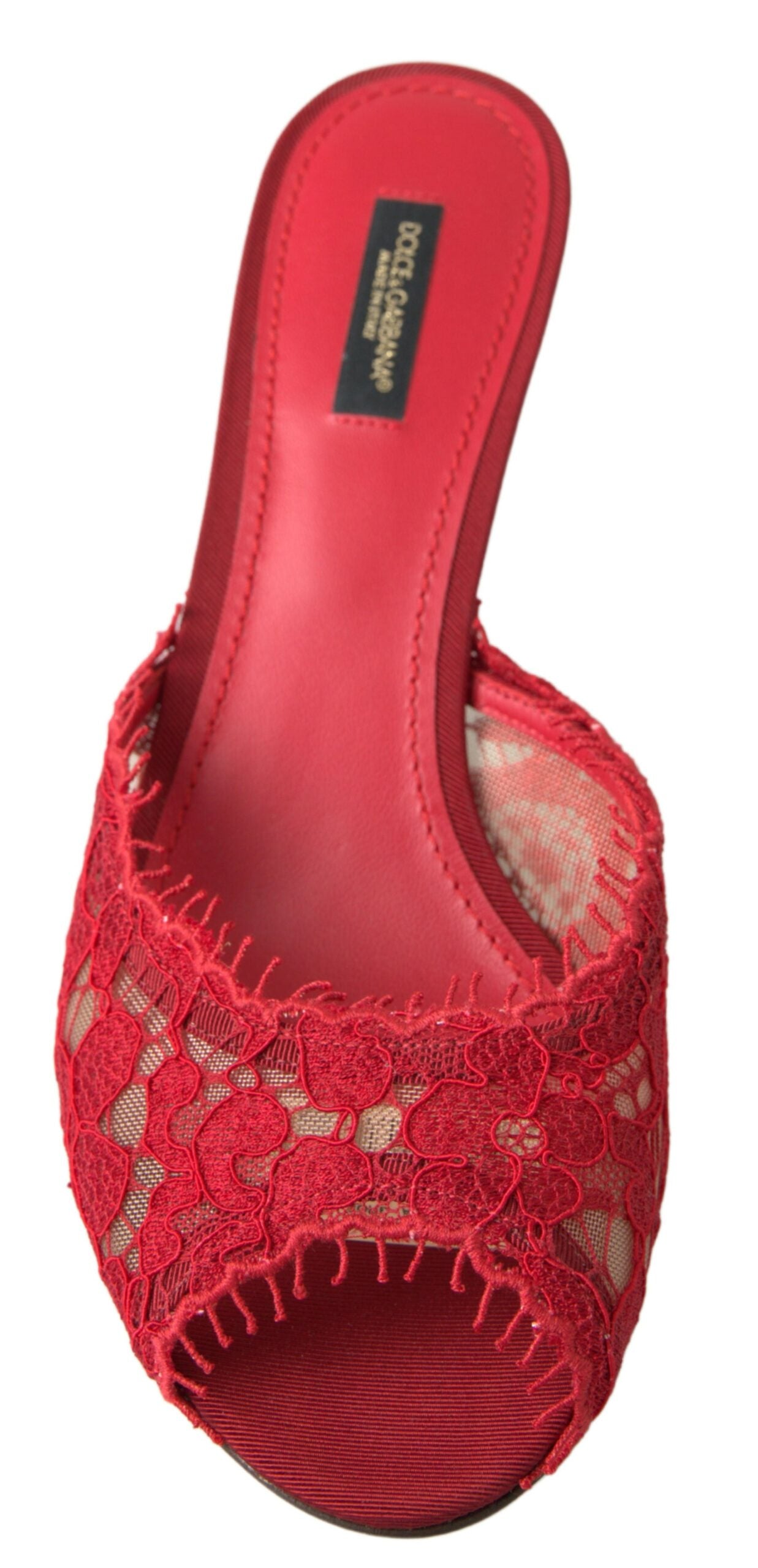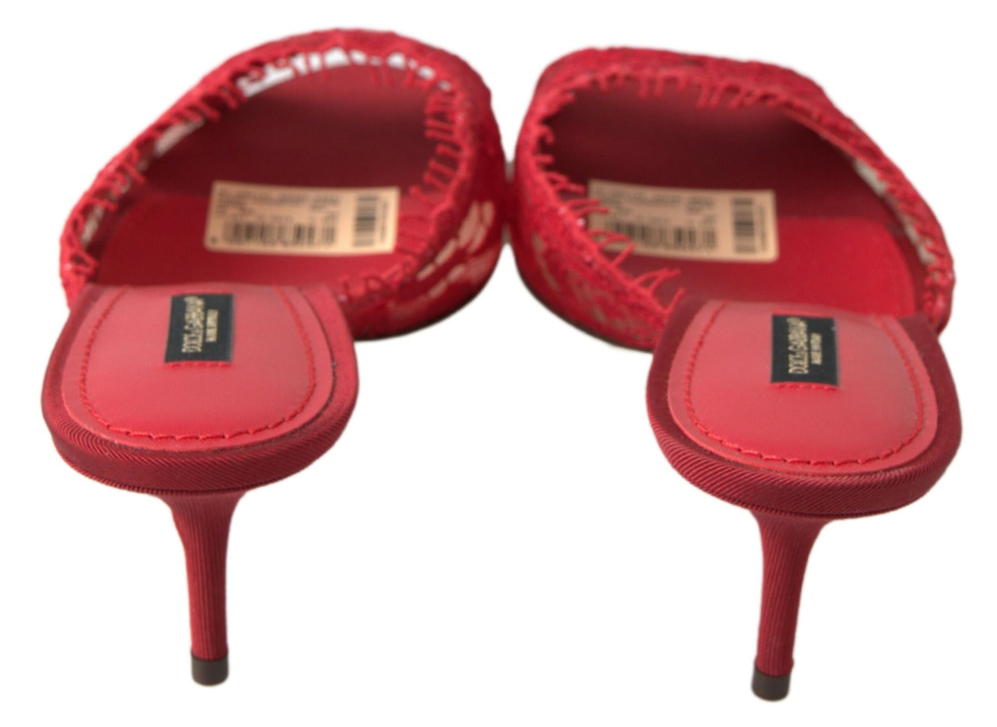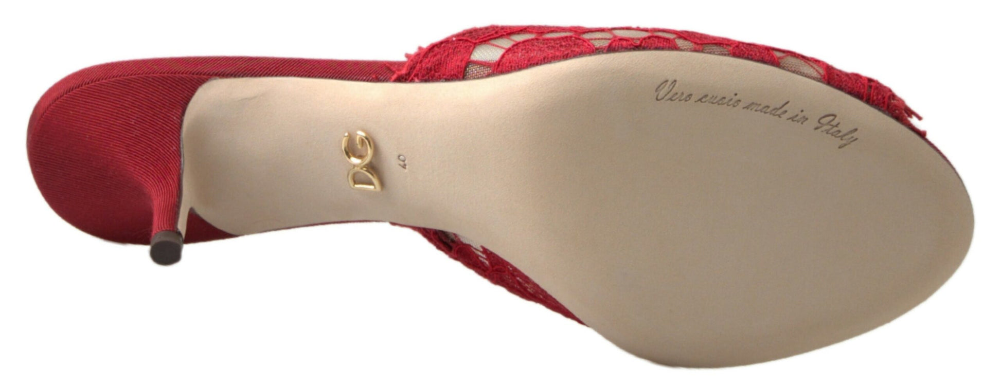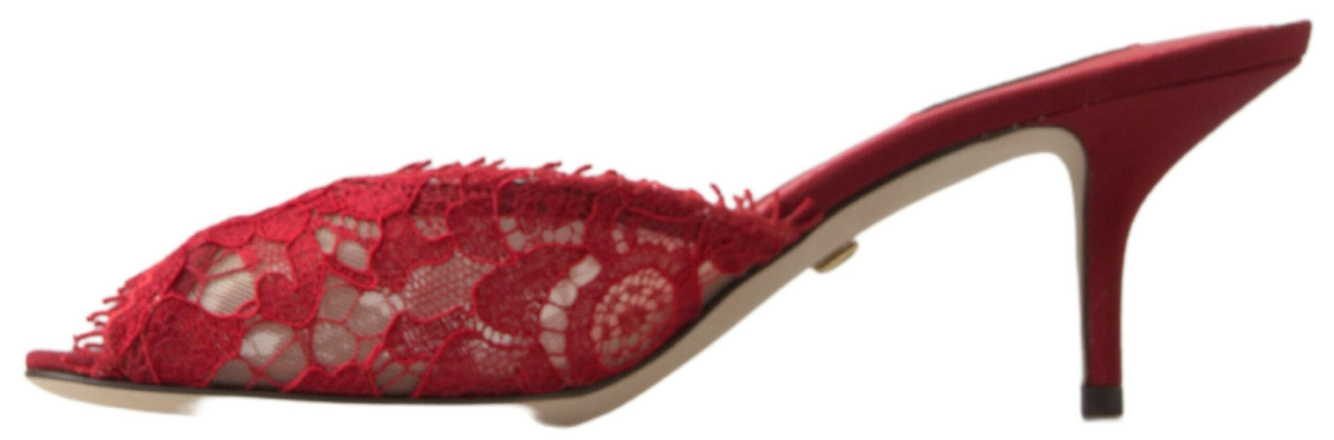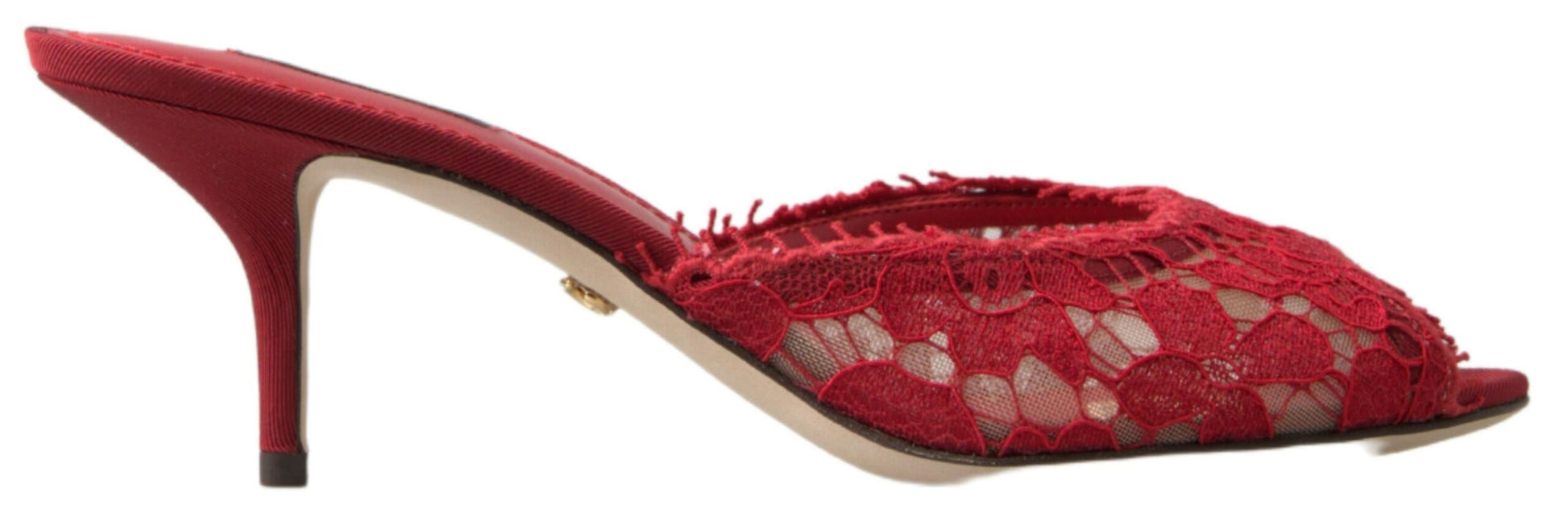 Indulge in the opulent elegance of Dolce & Gabbana with these stunning red Taormina lace heels sandals. Perfectly crafted in Italy, these heels showcase an alluring peep toe design, branded leather insole, and a luxurious leather sole for ultimate comfort. A true testament to high-quality Italian craftsmanship, these sandals promise to elevate your ensemble with their striking logo details and vibrant color, delivering both style and comfort.