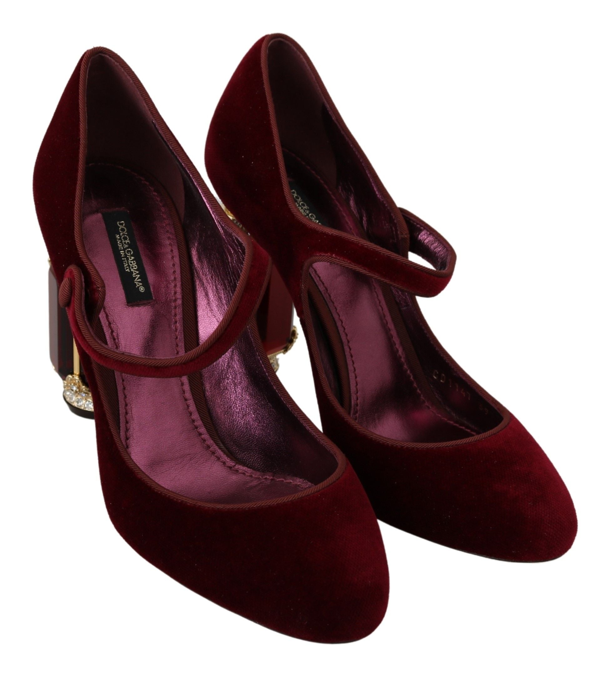 Red Velvet Crystal-Embellished Mary Janes Heels