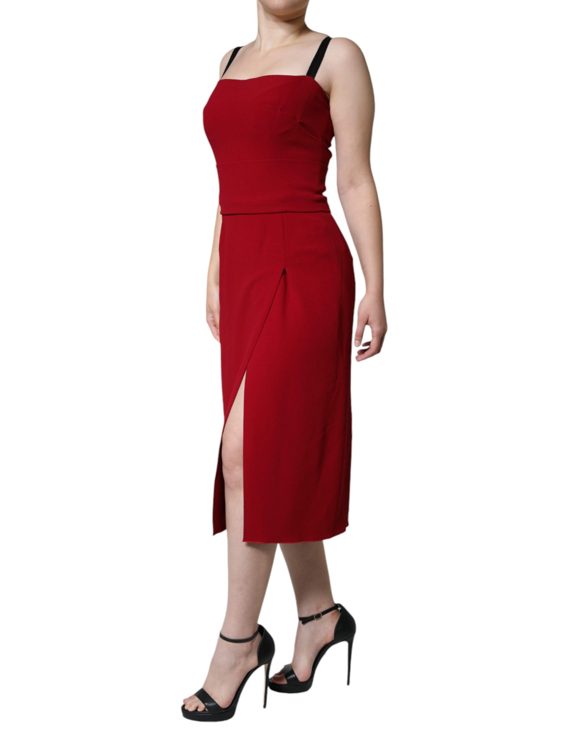 Red Viscose Stretch Side Slit Sheath Midi Dress