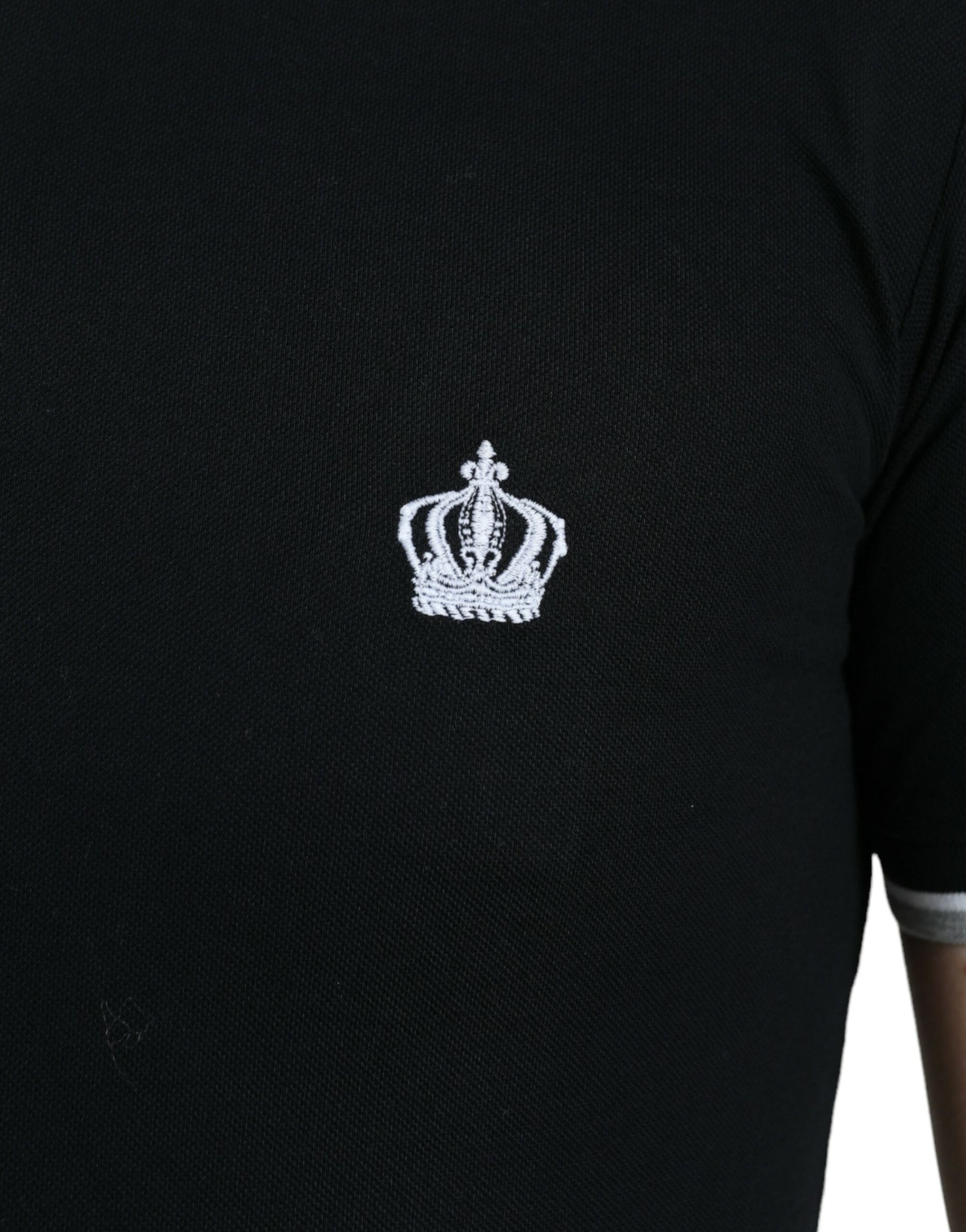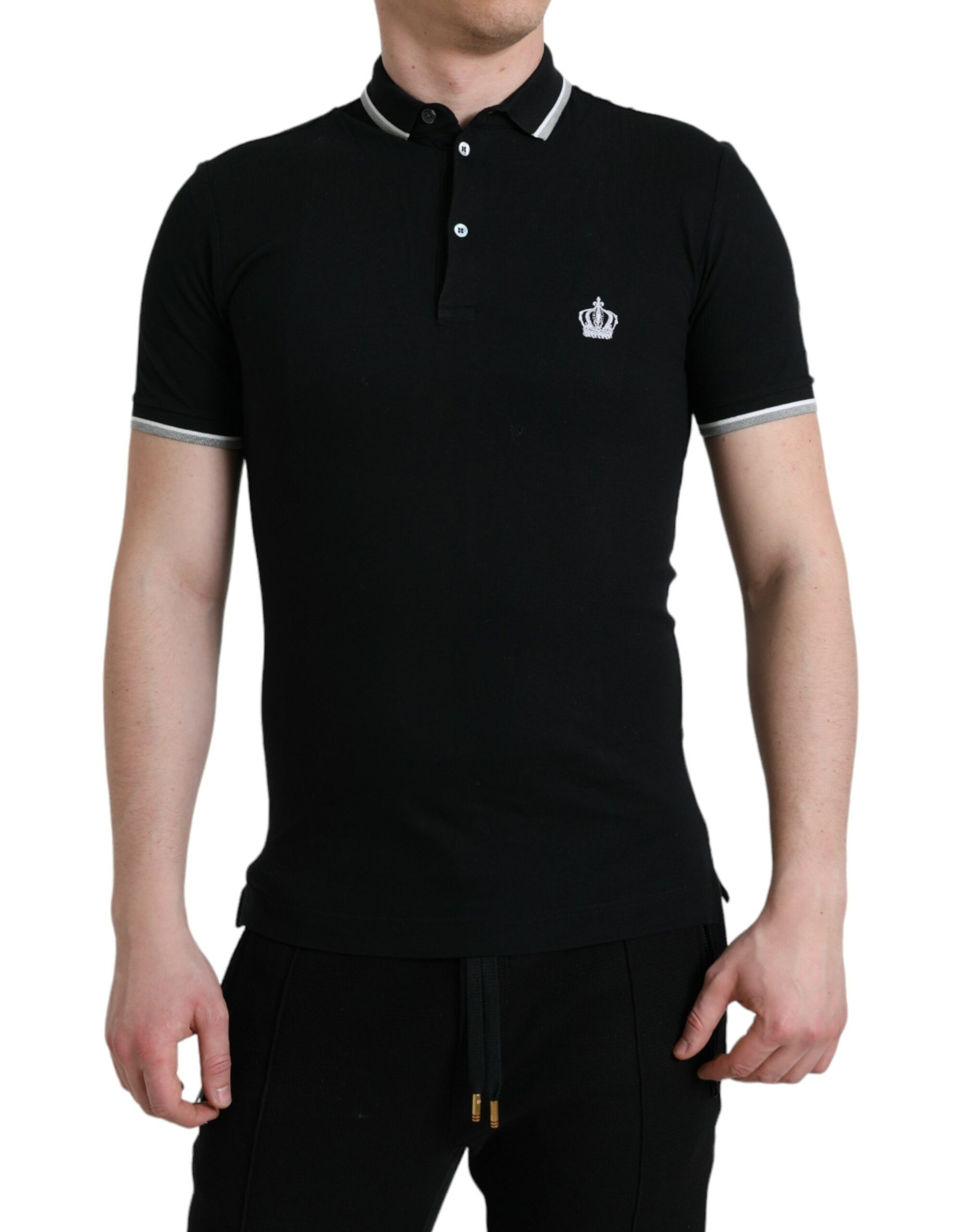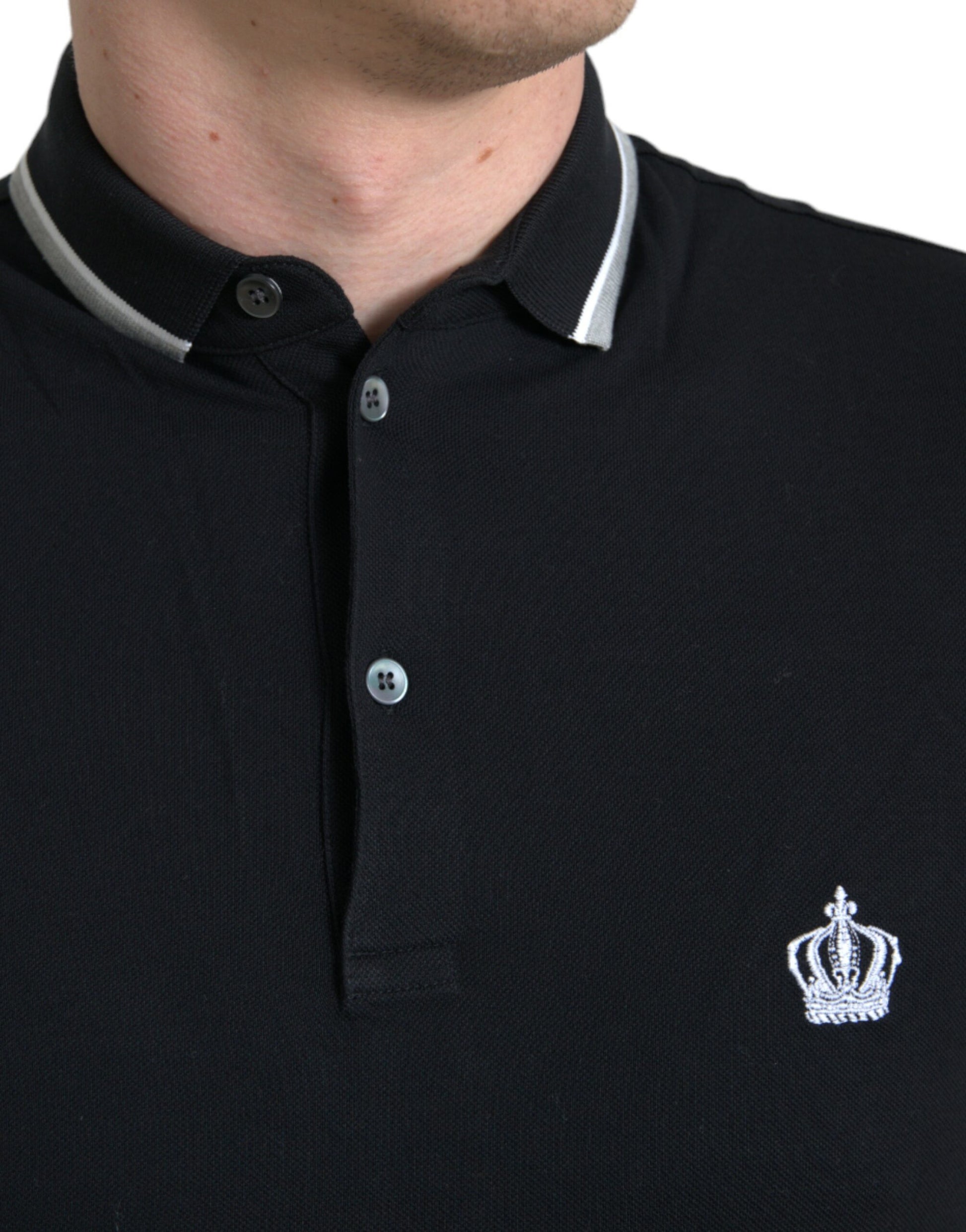 Step out in style with this Dolce & Gabbana cotton polo t-shirt, featuring an elegant crown embroidery. Perfect for adding a touch of luxury to any outfit, this shirt is designed with comfort and class in mind. Crafted in Italy, it sports a sharp black color and a regular fit, ensuring a sleek silhouette. Complete with a button closure and discrete logo details, it’s an impeccable choice for the discerning gentleman.